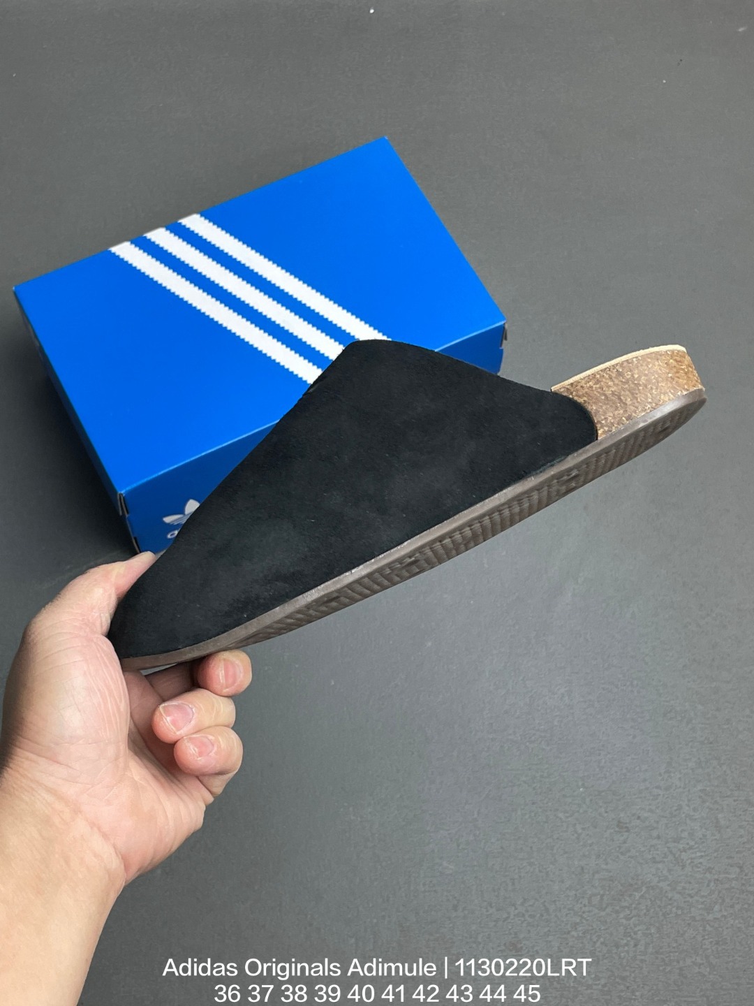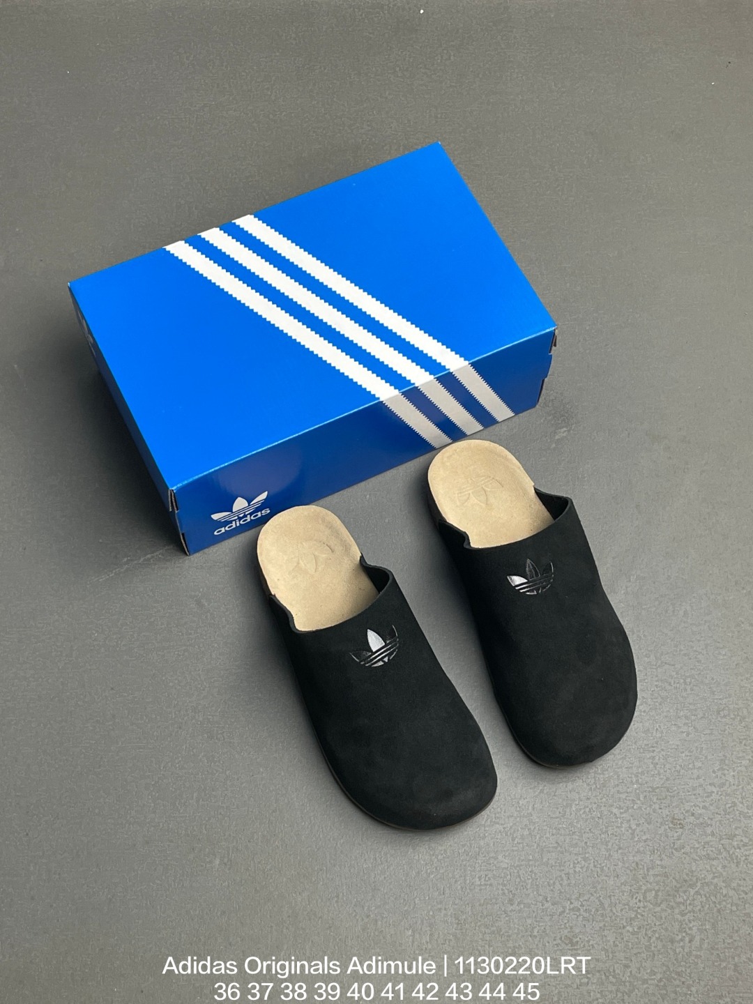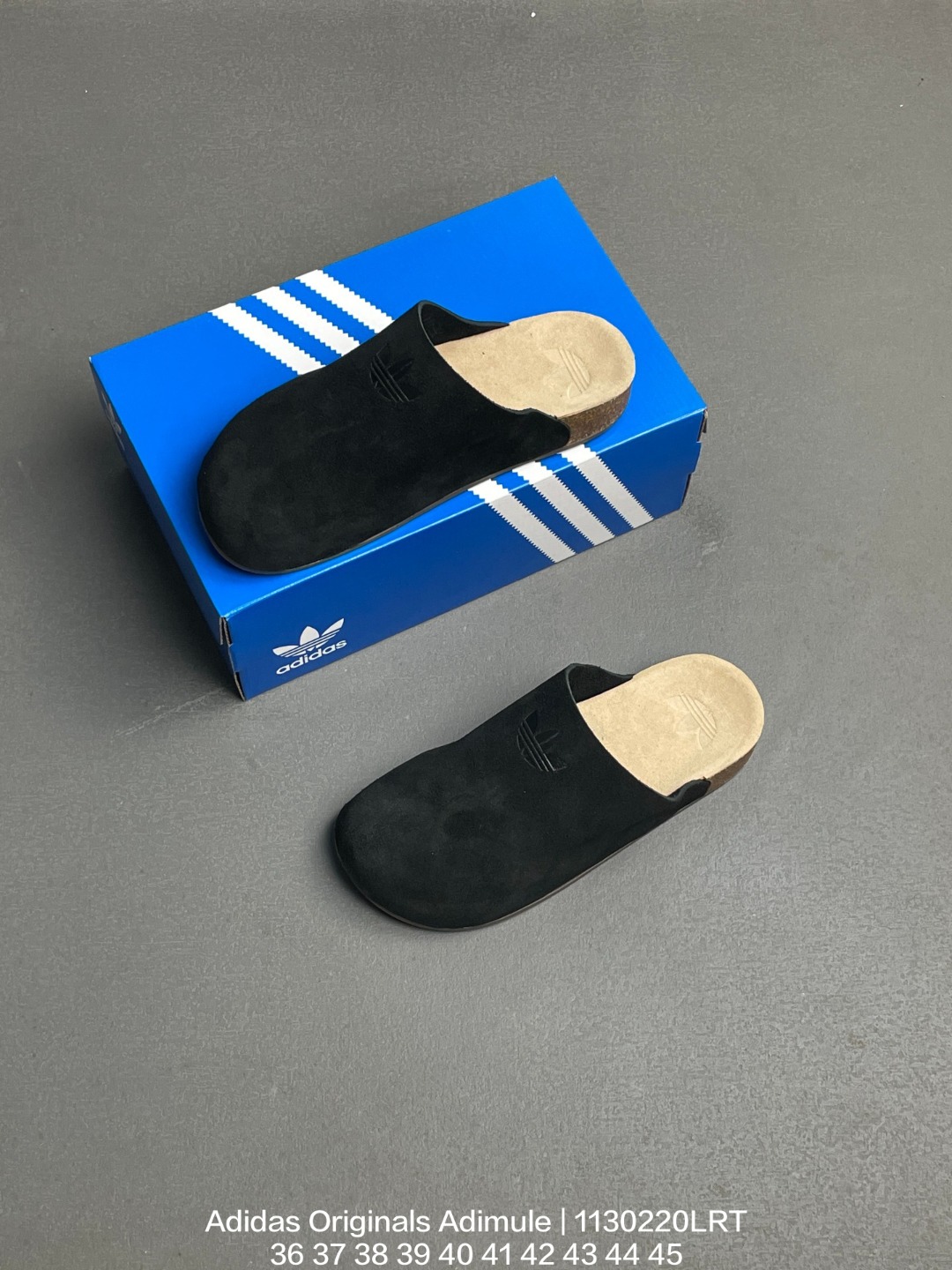 Adidas 阿迪达斯 搭载adiFOM发泡材质 一体成型设计 软木鞋床组合外置轻量防滑橡胶外底 复古舒适 百搭之选 全新阿迪达斯adidas Originals Adimule 阿迪穆勒系列穆勒风牛皮绒面革复古软木底包头露跟休闲鞋