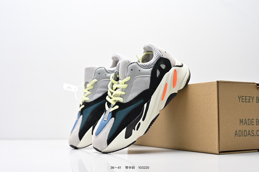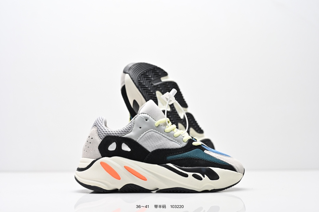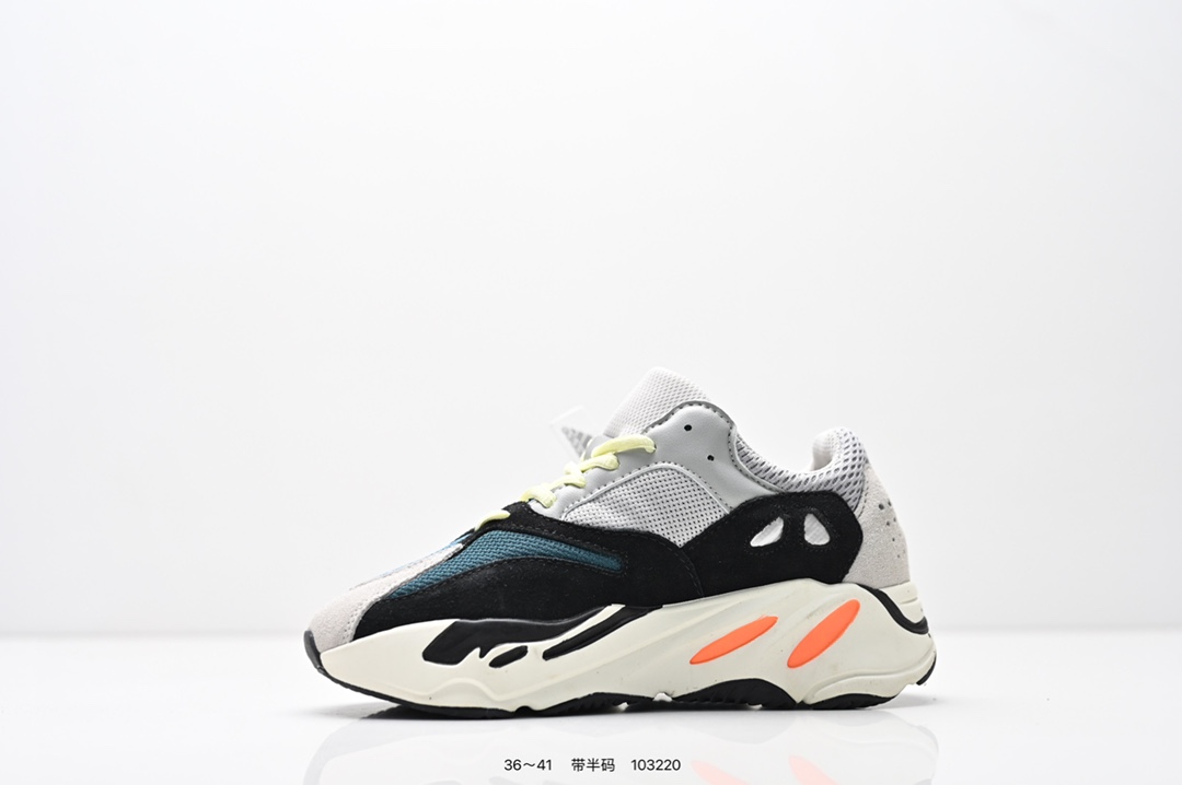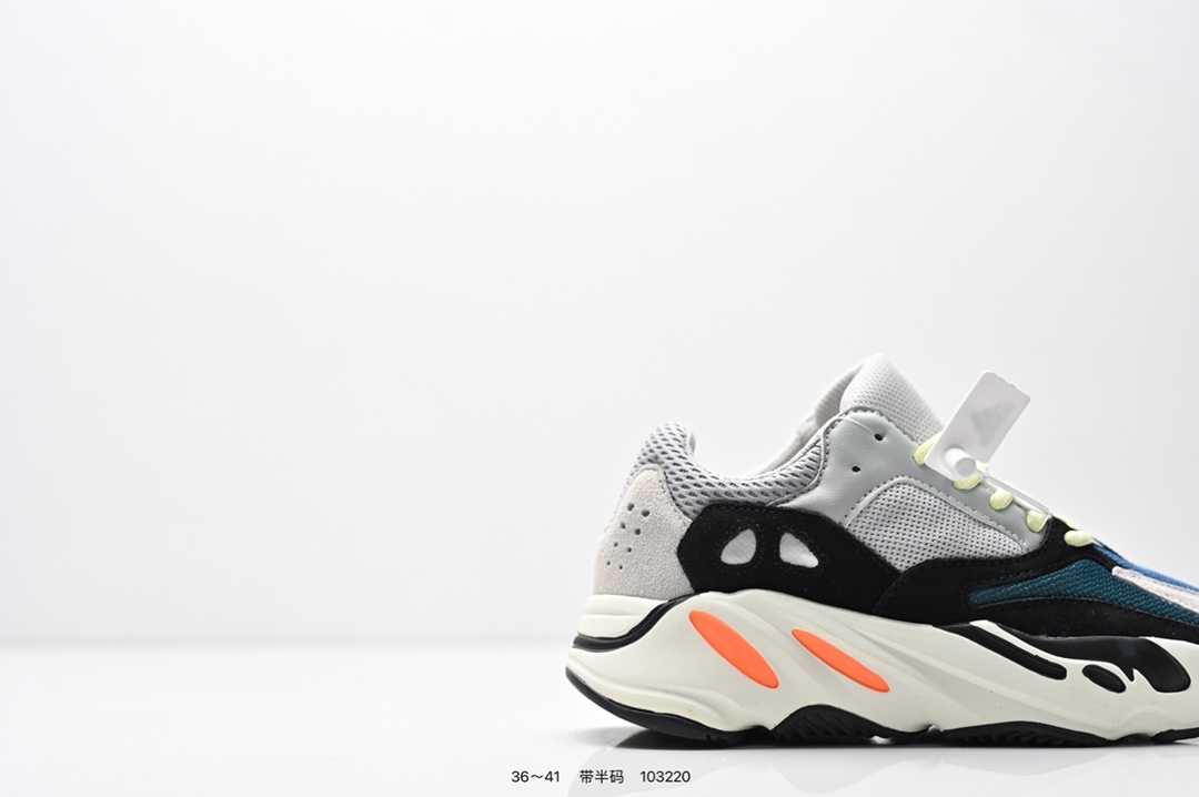 采用麂皮 皮革 网布三种材质组成 鞋面置有反光元素 鞋身非常纯粹 轮廓十分复古优雅 YEEZY BOOST 700的鞋底厚度提升了不少 因为中底藏有全掌Boost科技加持 提供了舒适的脚感