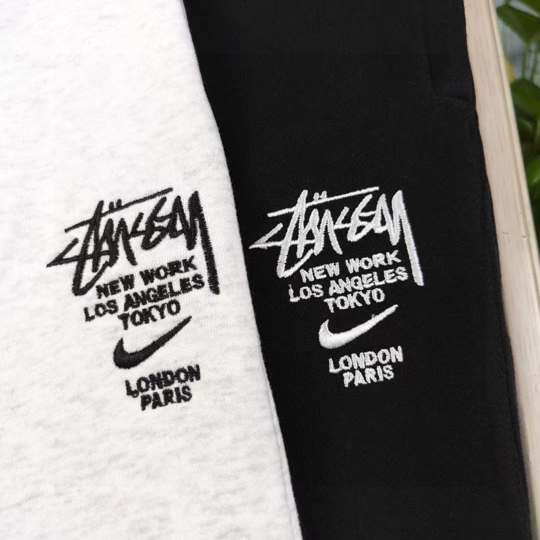 2025新款StussyNike斯图西联名耐克刺绣钩子logo字母图案绣花休闲情侣加绒卫裤 经典永远不会过时 人手必备款 360g纯棉加绒面料 不起球不起毛 上手质感绝对可对比 环保进口印花浆料 质量保证 原厂面料 定制定染 包浆印刷环保不开裂 欢迎对比质量 男女同款