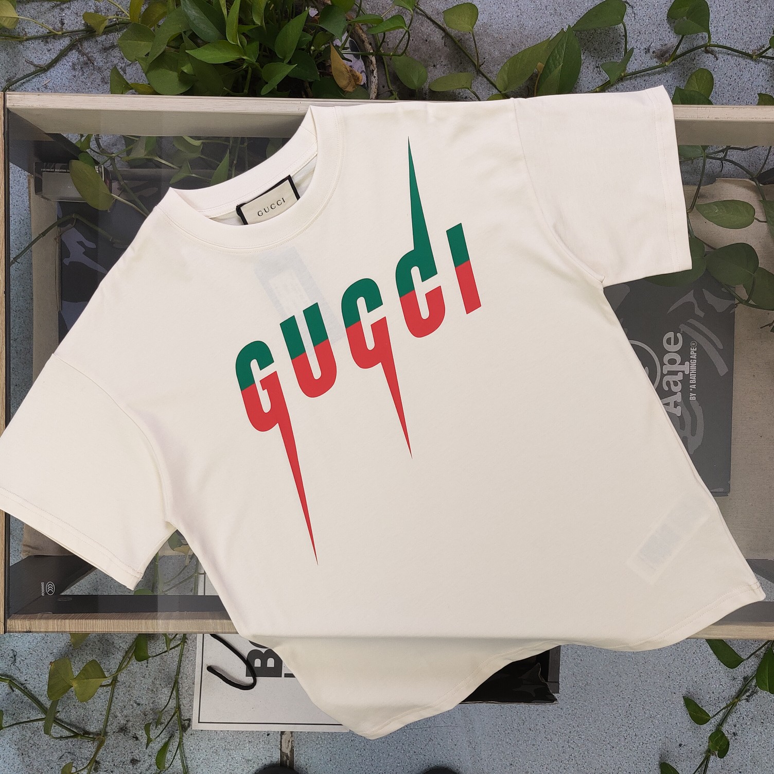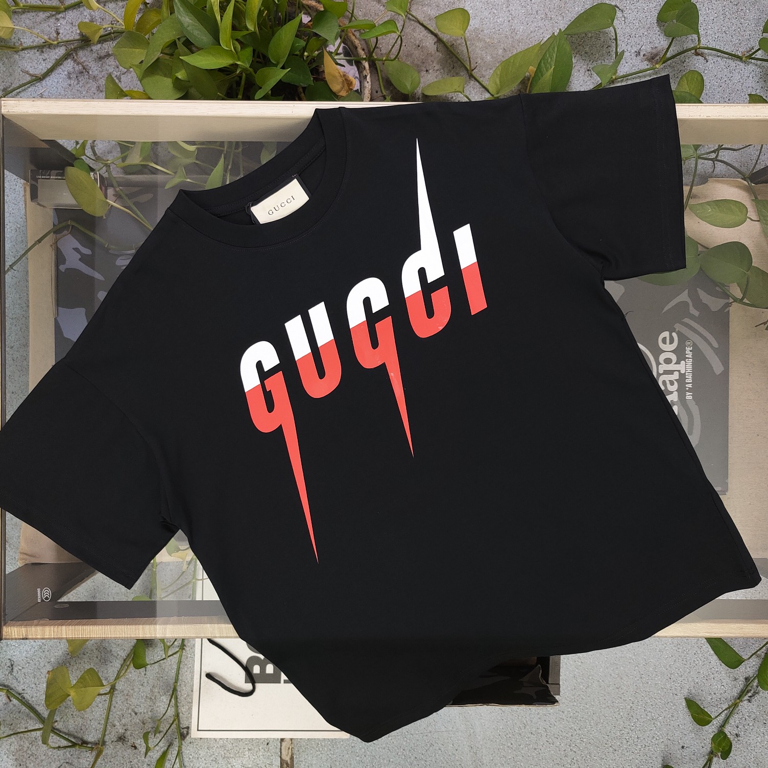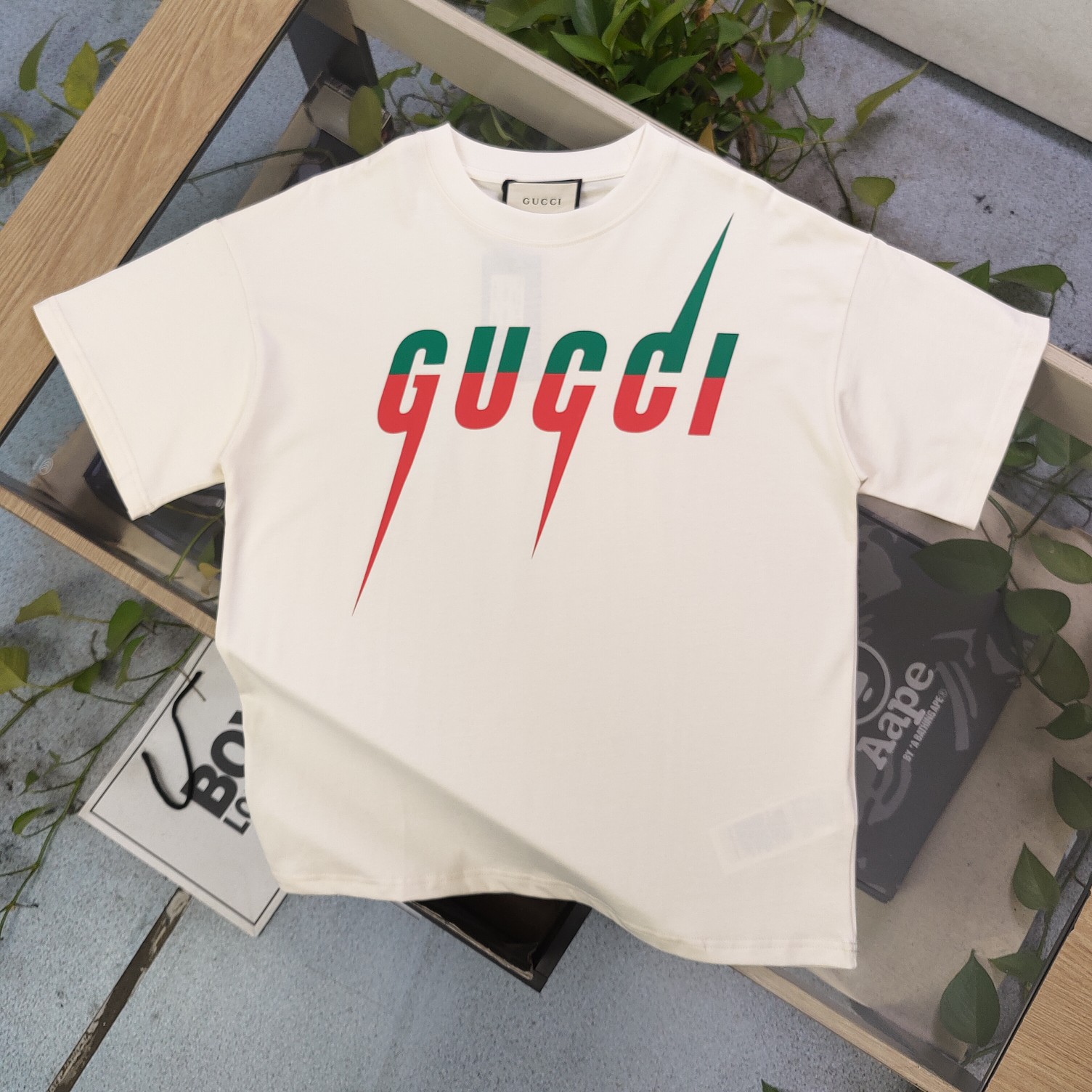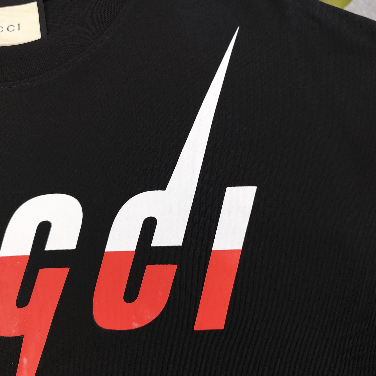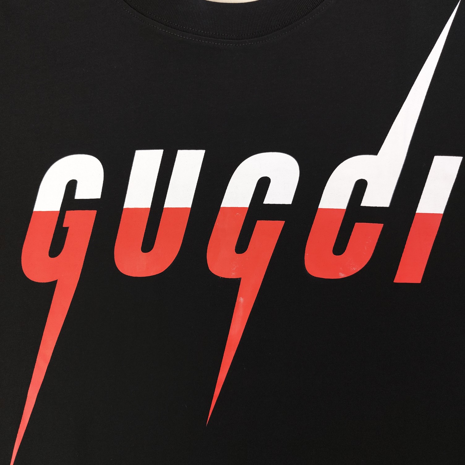 2025春季新款Gucci古驰经典胸口闪电字母logo图案印花休闲情侣宽松短袖T恤 独一无二的活性环保面料染色 32支双纱精梳纯棉爽滑手感 纯棉不起球不起毛 面料采用270克重的纯棉双纱爽滑面料 质量保证 定制面料 定制定染 欢迎对比质量 男女同款