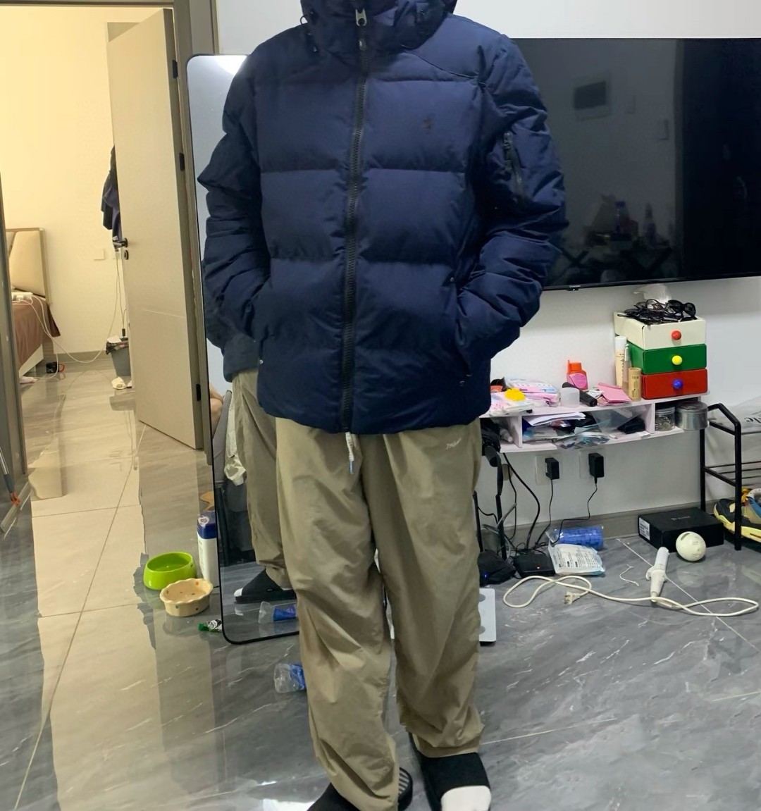 3内里采用尼龙nylon双重双层封禁设计 不会出现任何跑绒现象 内置抽拉绳扣的可调节下摆 防风袖口设计 可防风防寒