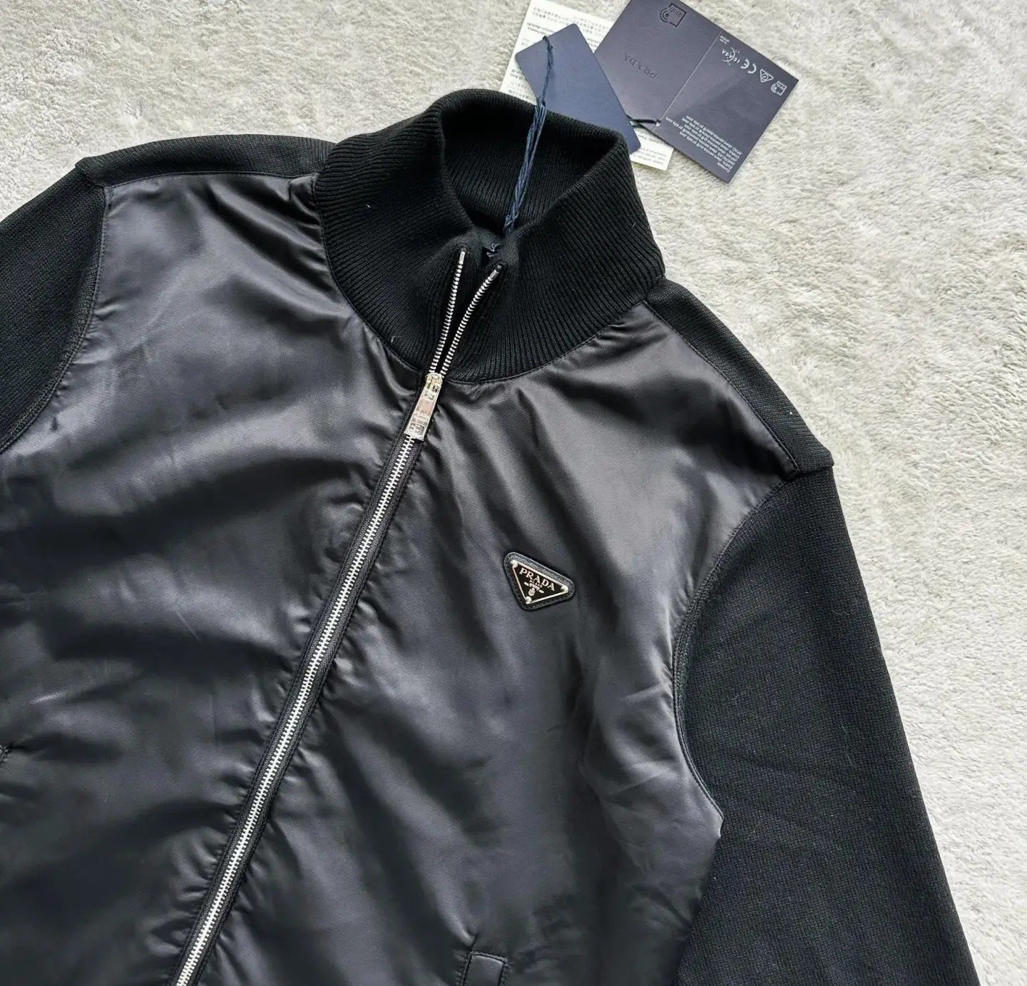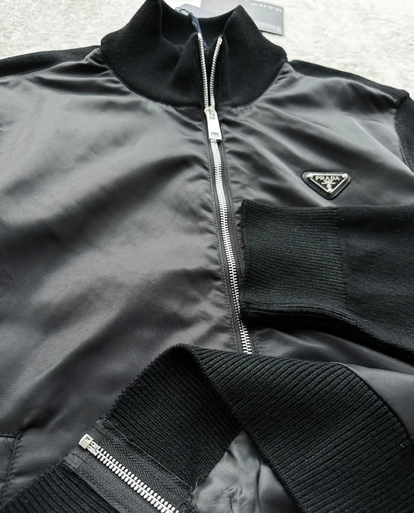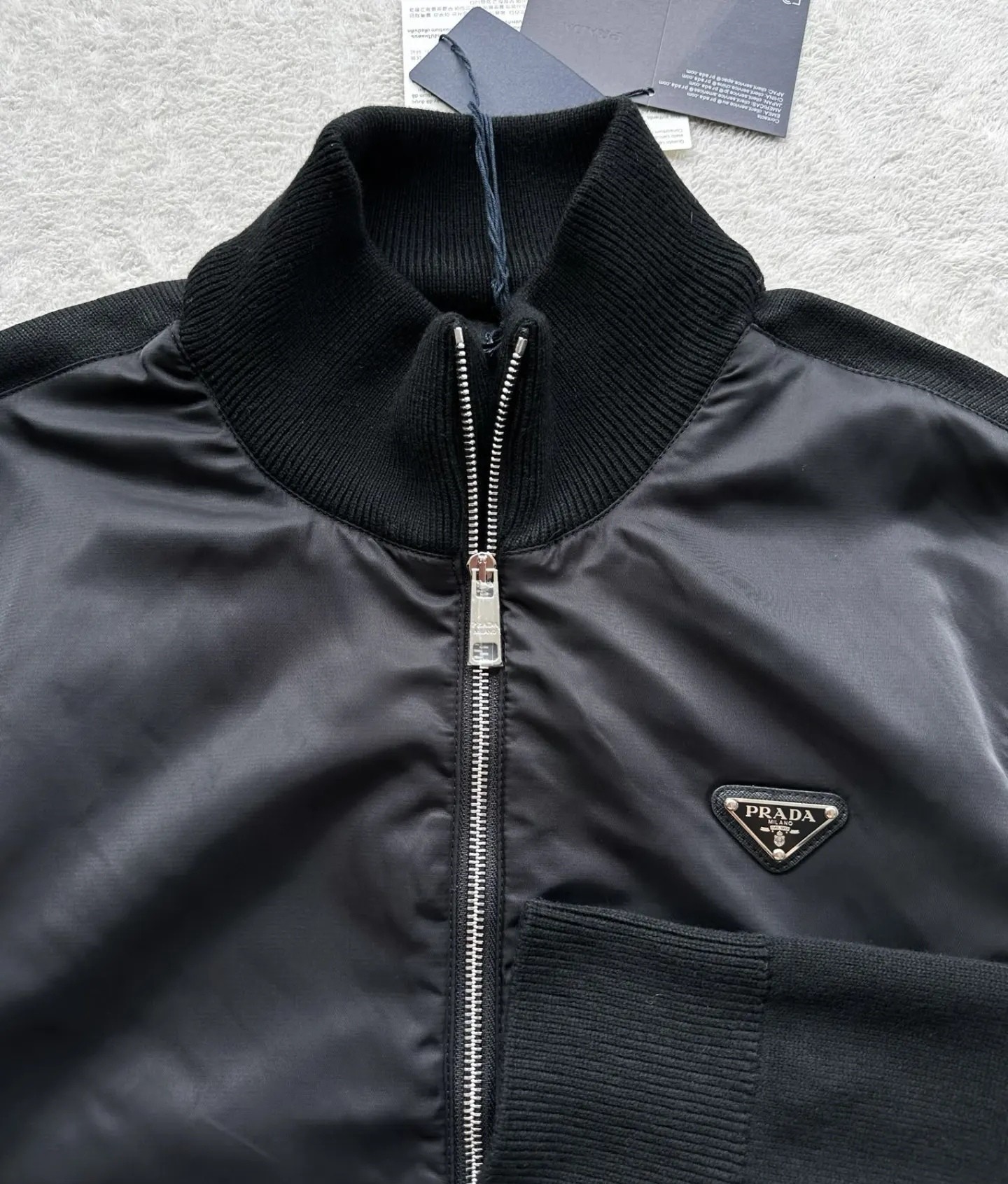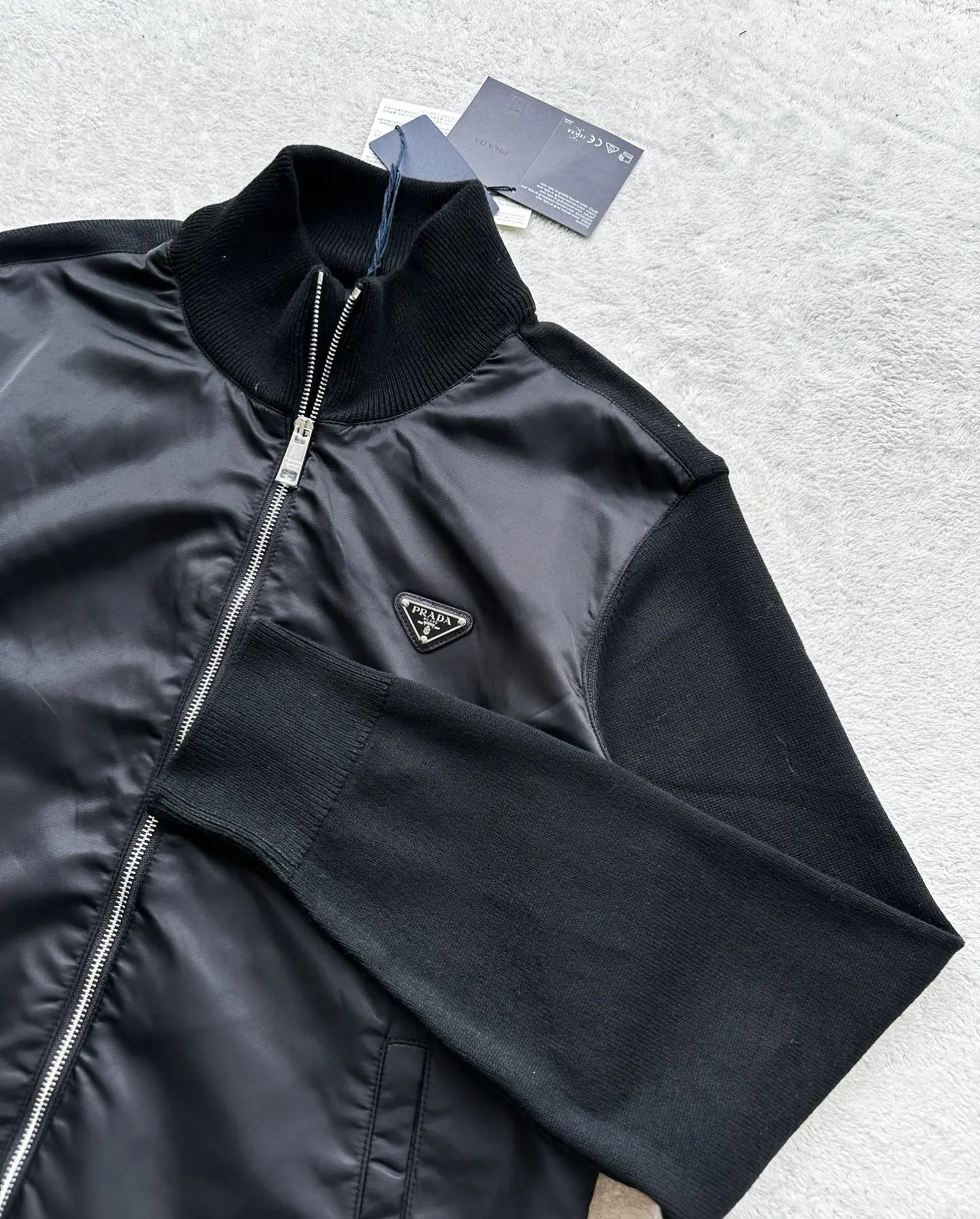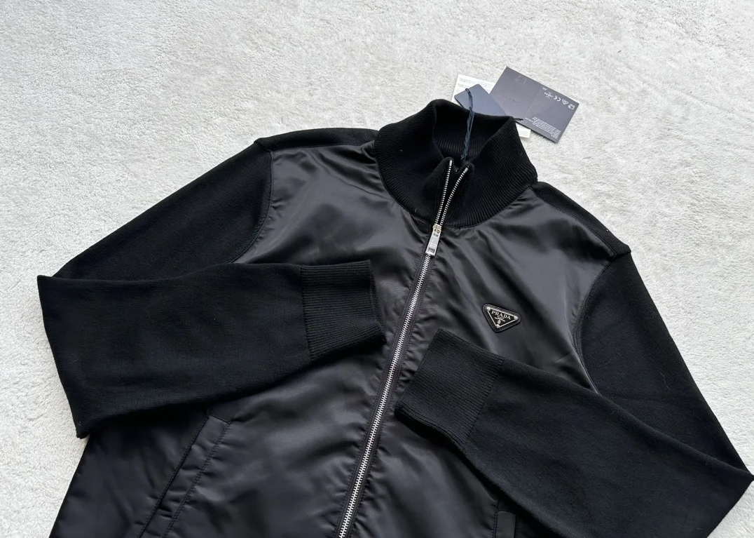 PRADA 普拉达25ss提花针织拼接毛衣外套 新款市面1 1最高版本复刻 原版开发 定智针织面料工艺处理 绝非市场羊毛成分通过水洗做出来的手感效果厚实感十足 质感区别市场货 高度还原 每一个颜色起订量需要500KG选定一线毛纺工厂代工