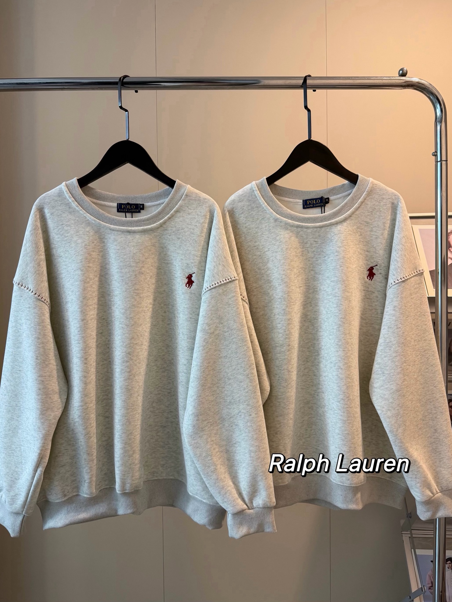 𝗥𝗮𝗹𝗽𝗵 𝗟𝗮𝘂𝗿𝗲𝗻拉夫劳伦新款刺绣logo燕麦灰圆领加绒卫衣