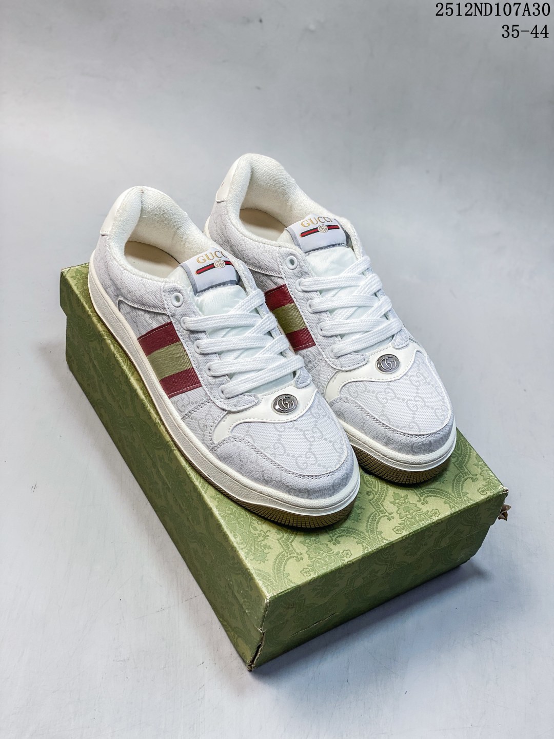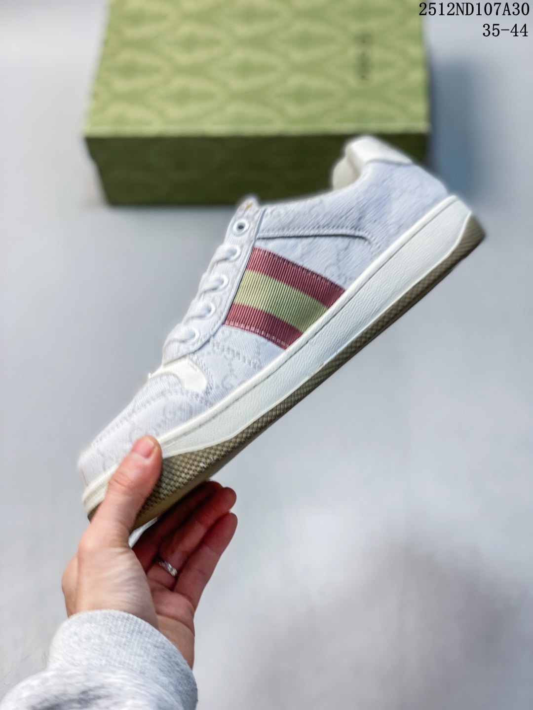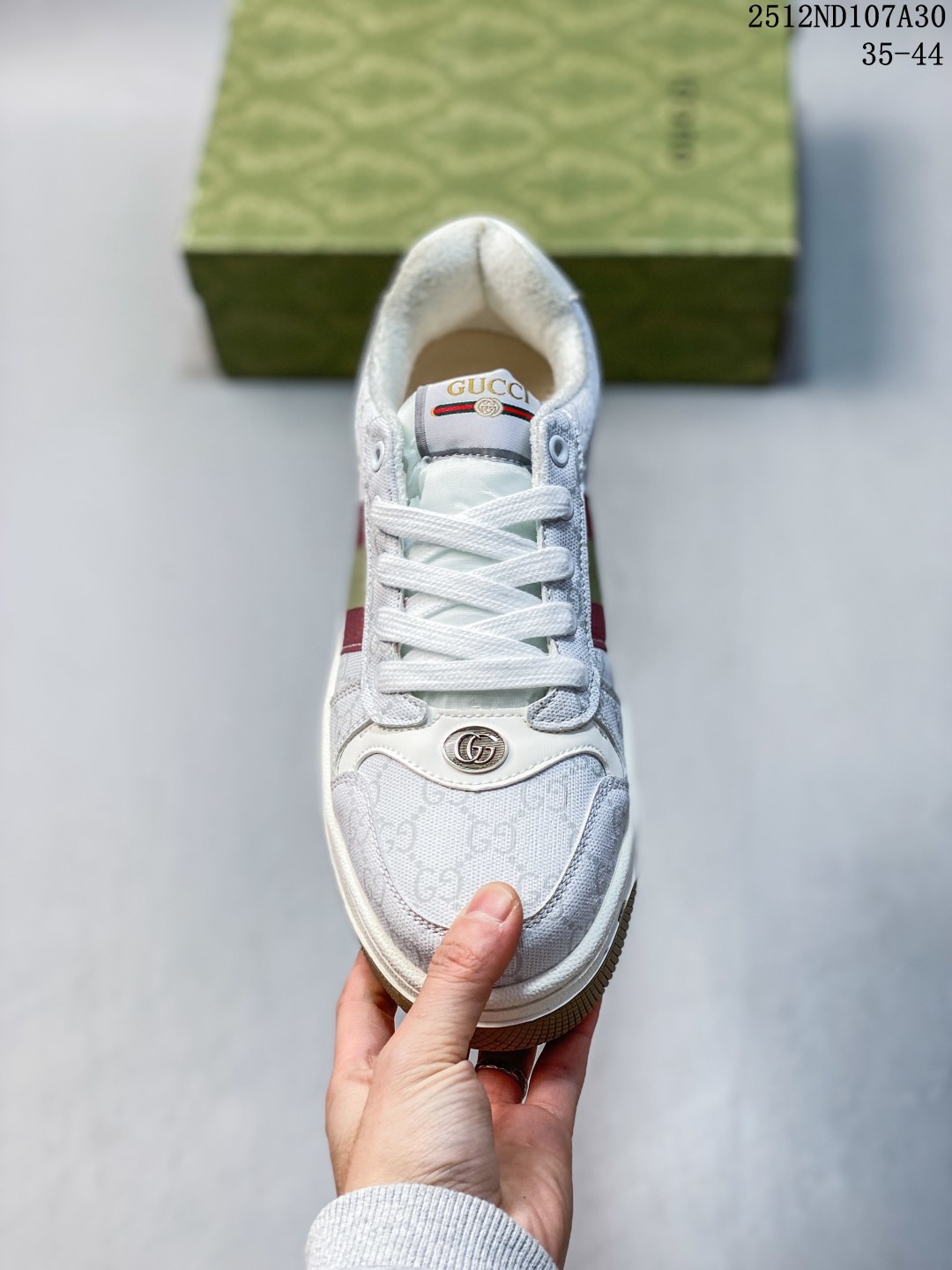 GUCCI 古驰 缓震乳胶贴合皮革鞋垫 饰金属双G椭圆形珐琅细节 正确无缝隔色TPR双层组合鞋底模贵族学院风意大利时装奢饰品牌 古驰Gucci Screener GG sneaker经典原型复古百搭板鞋 12ND107A30