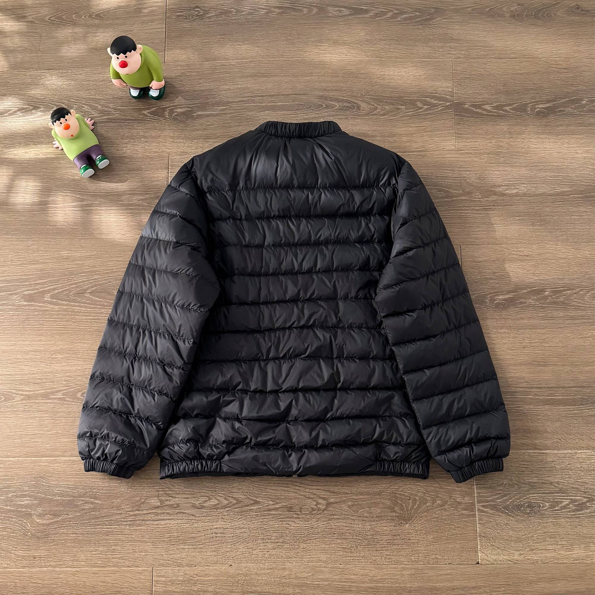 简约立领设计 正面拉链开合 轻薄面料 高蓬松度鹅绒填充 保暖又轻便 黑色主色 胸前三角徽标 低调有辨识度 袖口和下摆弹性收口 防风效果好 适合秋冬通勤或轻户外活动 轻便易携 搭配休闲裤或商务裤都很OK 实用又时髦