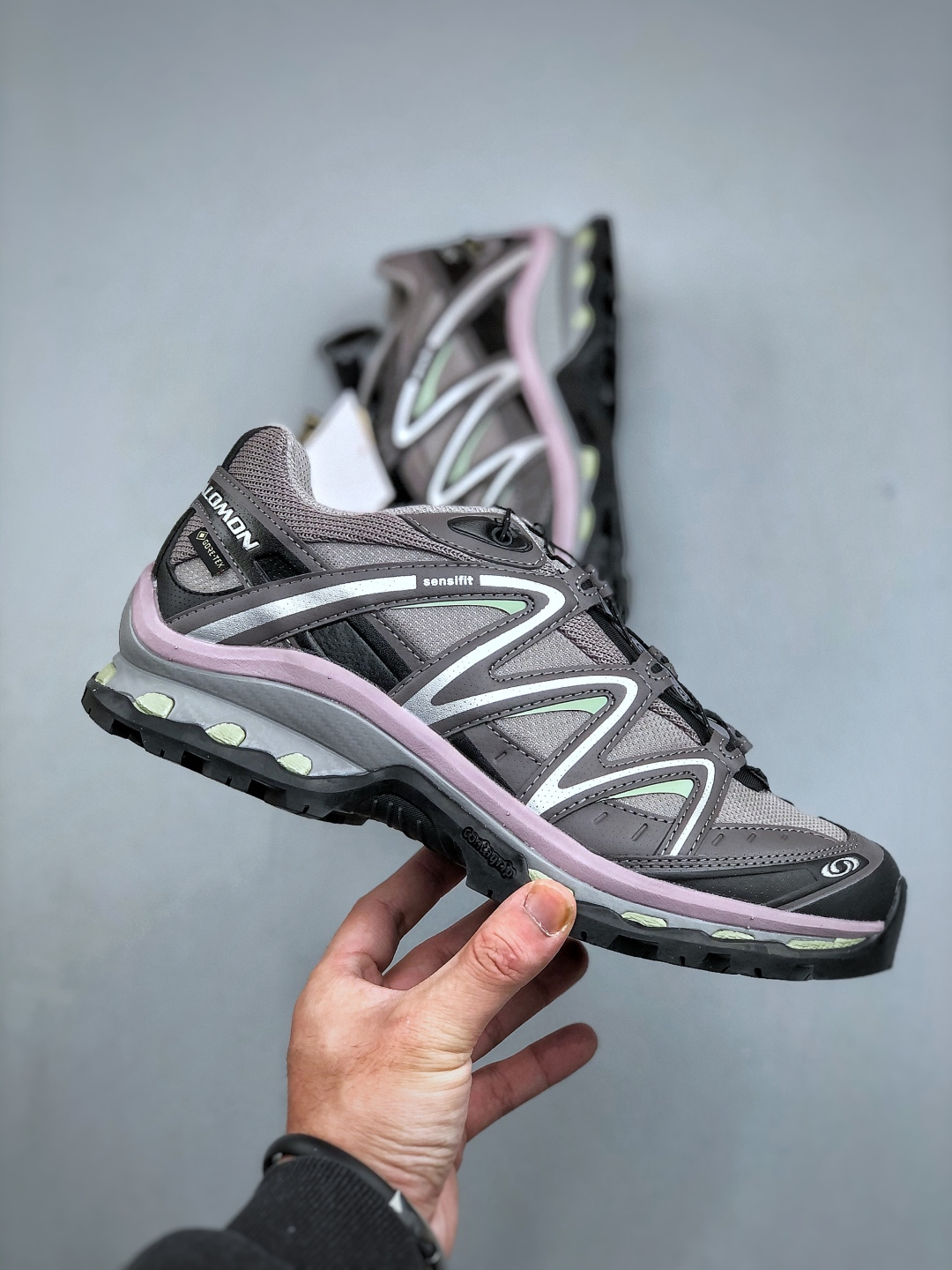 纯原Salomon XT QUEST GTX 萨洛蒙 探索者系列户外越野跑鞋鞋面采用SENSIFIT贴合技术 全方位贴合包裹脚型 鞋跟部鞋底牵引设计 提供强大的抓地性能 更适应野外崎岖不平的道路 其3D ADVANCED CHASSIS底盘 材料轻量大化 钉齿设计更具稳定性 防护性 鞋底易磨损区运用CONTAGRIP高耐磨材料 应对城市硬质路面长距离跑考验 货号 491277 26 尺码 36 45 半