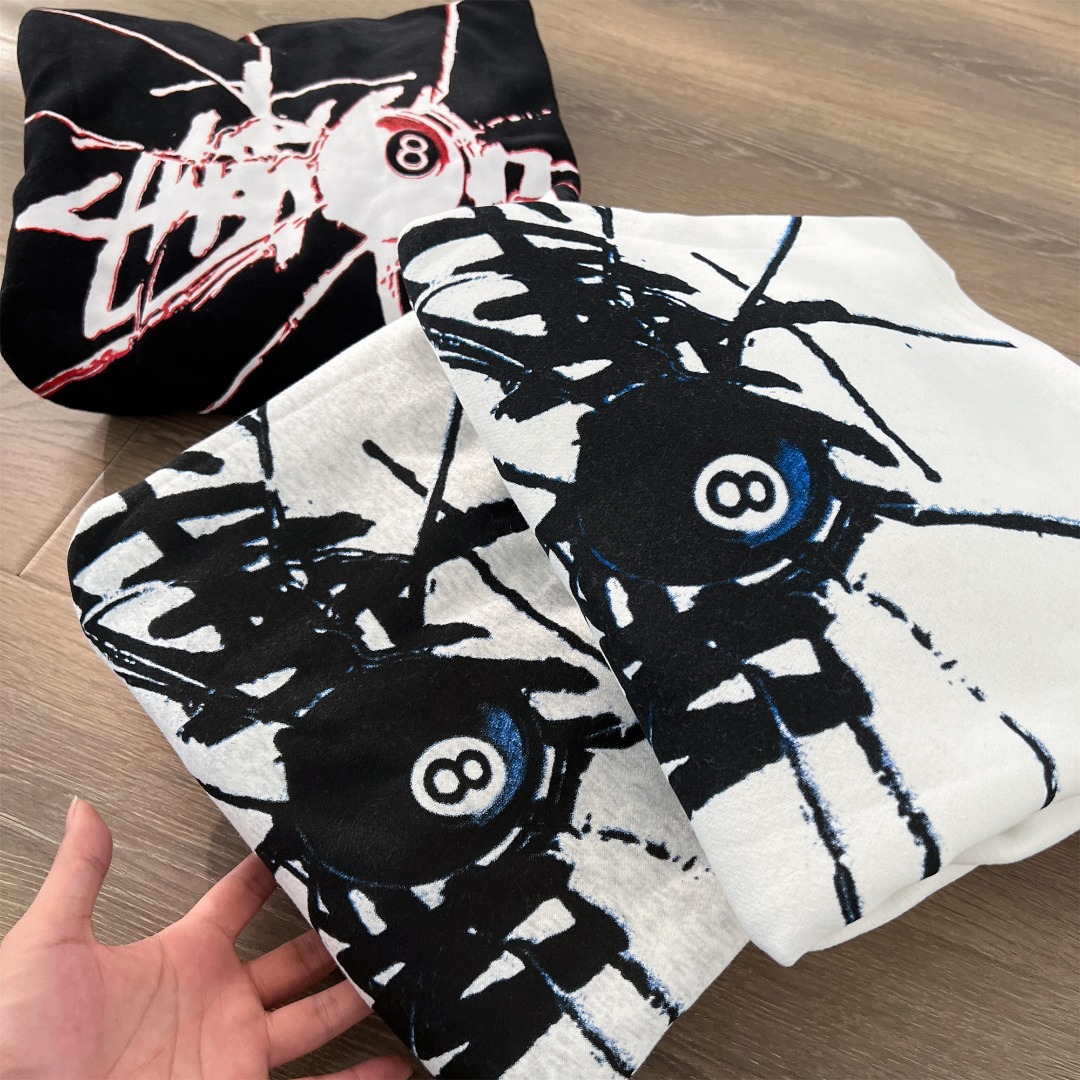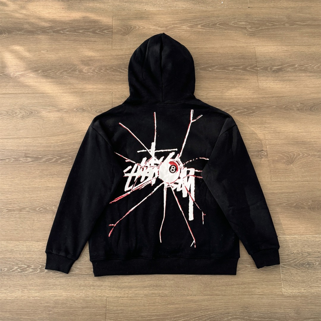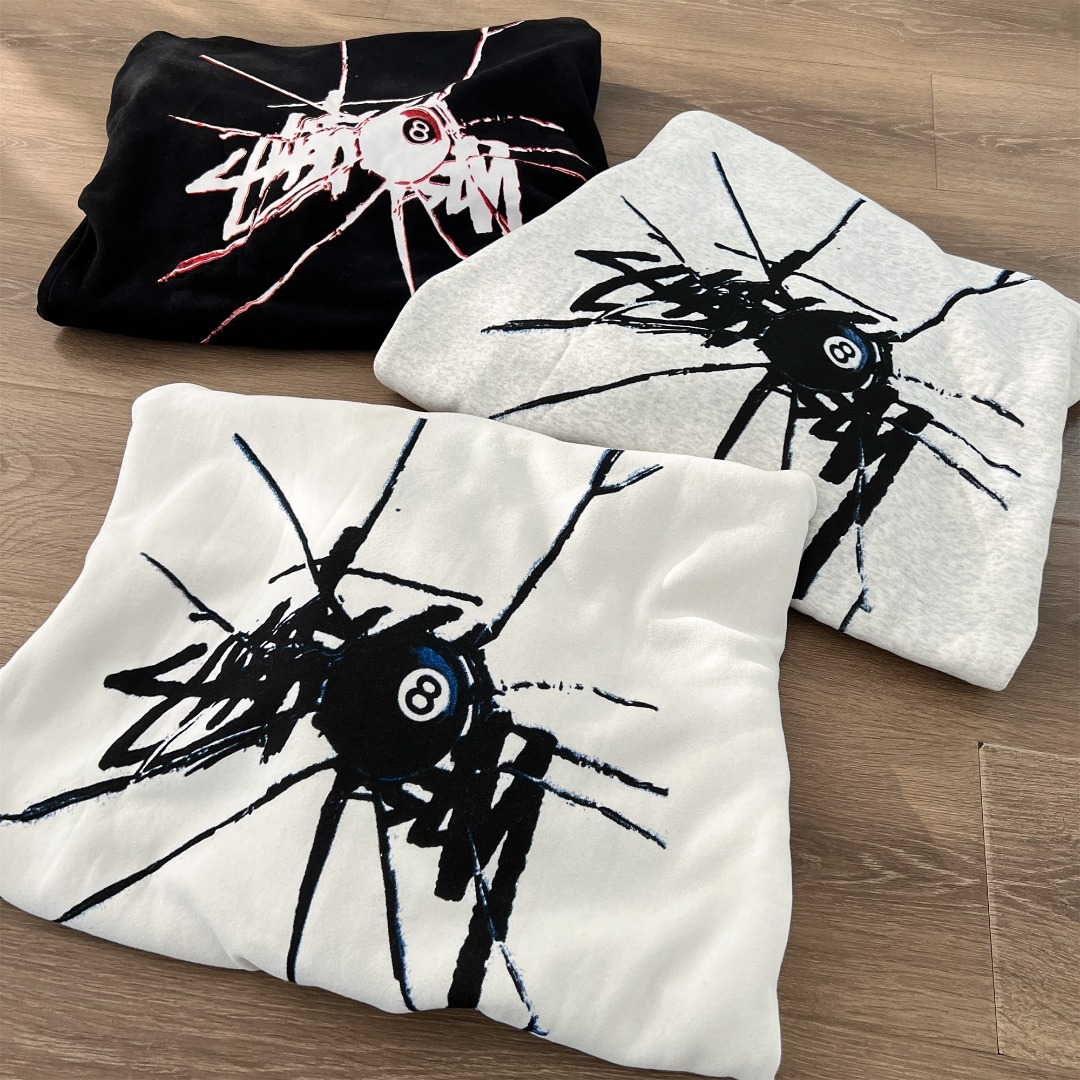 Stussy 斯图西秋冬款8球系列 黑8破碎图案字母logo印花连帽卫衣WY066 男女同款