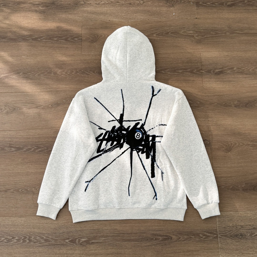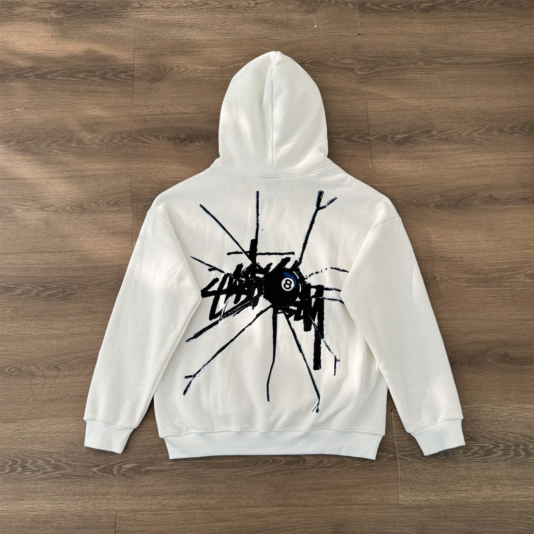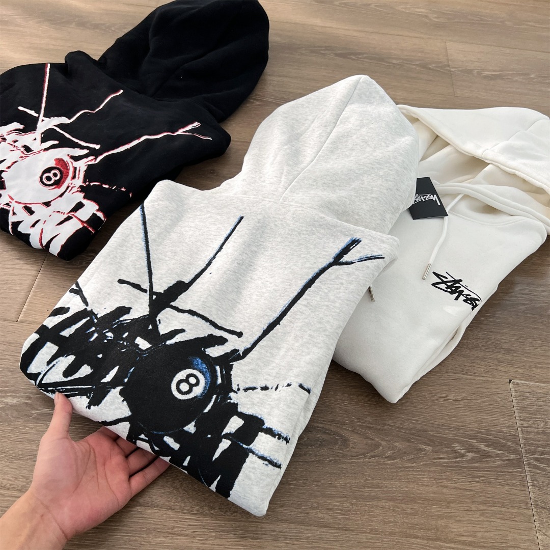 Stussy 斯图西秋冬款8球系列 黑8破碎图案字母logo印花连帽卫衣WY066 男女同款