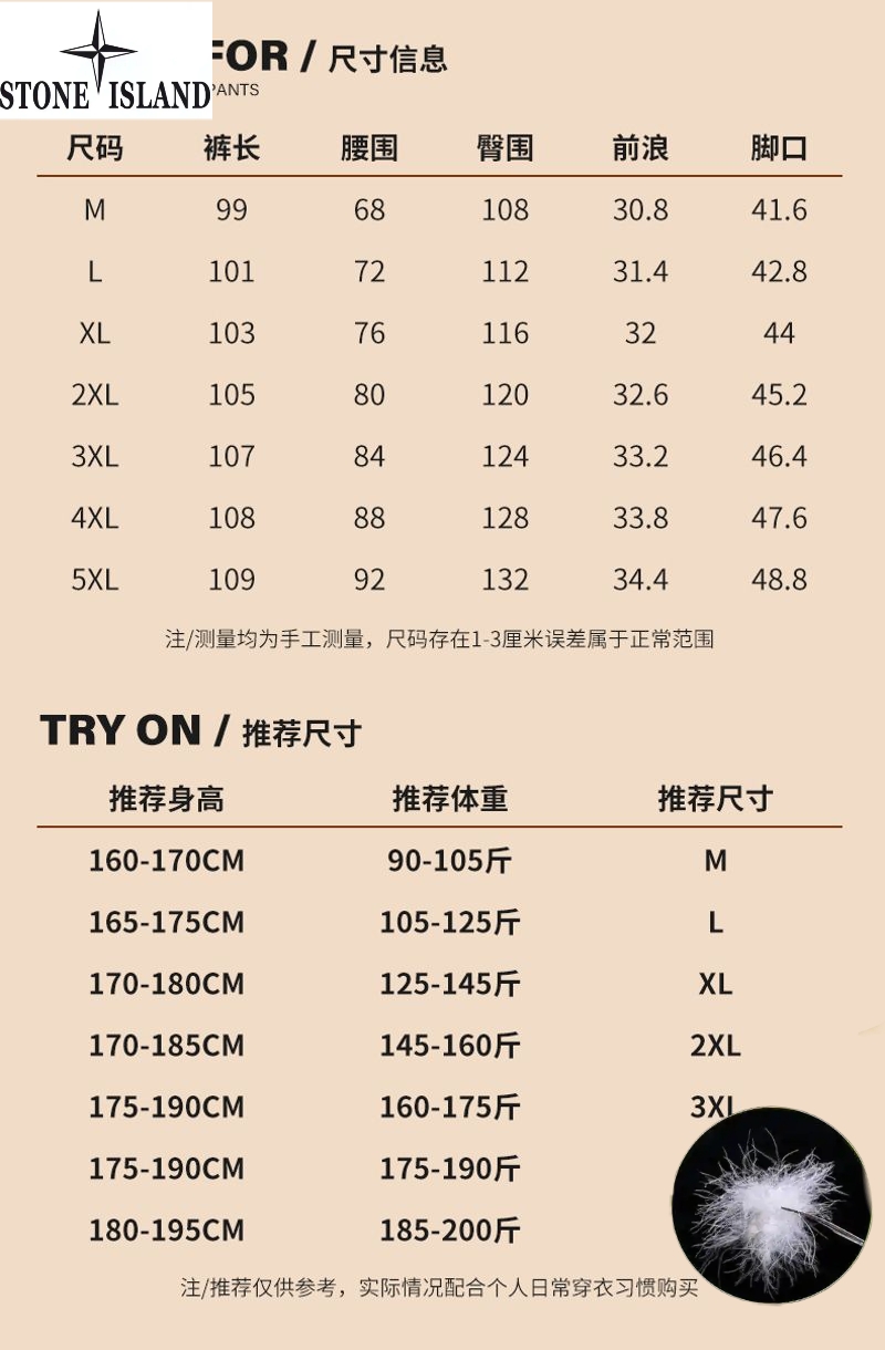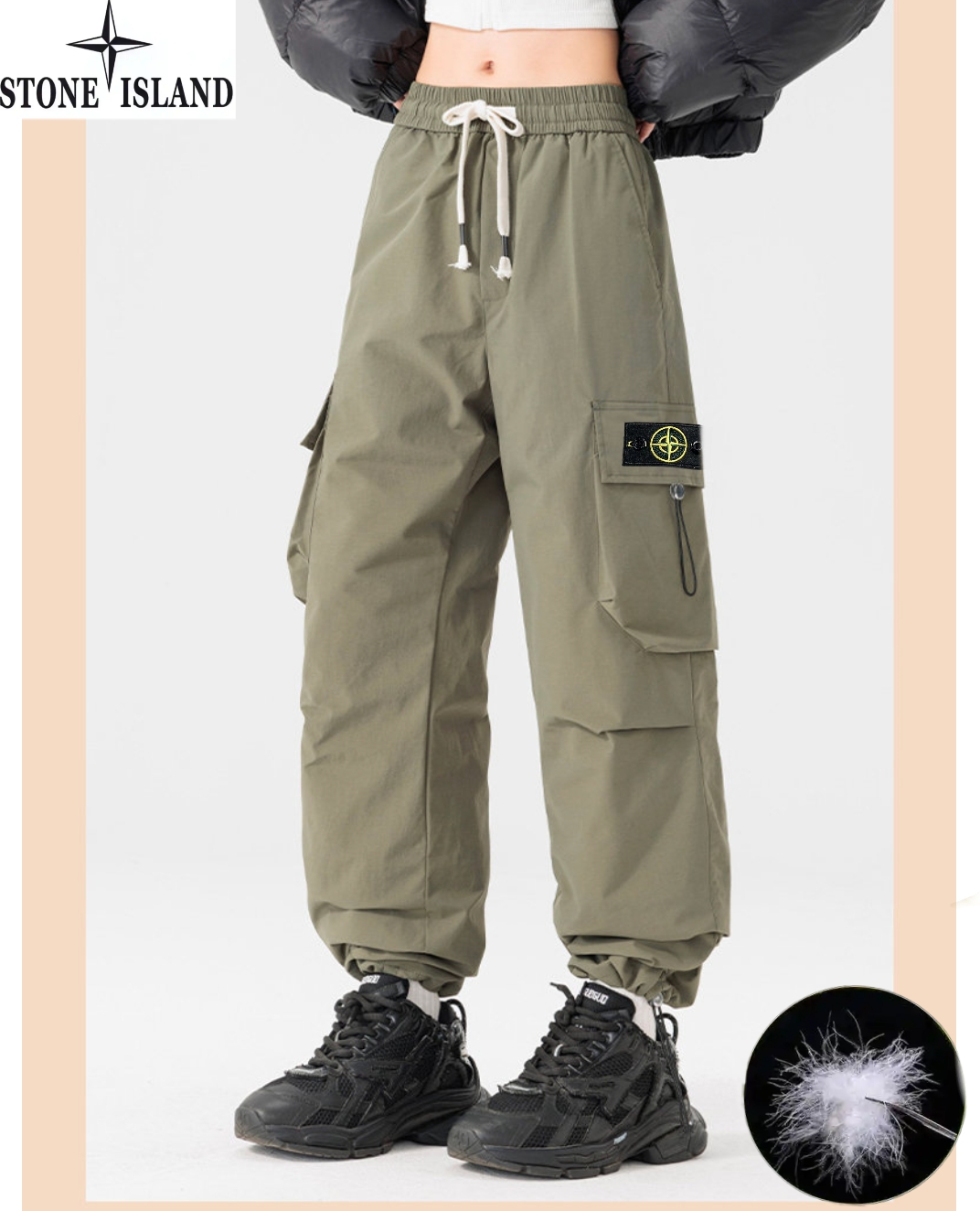 羽绒裤工装裤 石头岛Stone island冬季新款 男女同款松紧腰三防90绒休闲工装裤 男士羽绒服 休闲裤加厚长裤