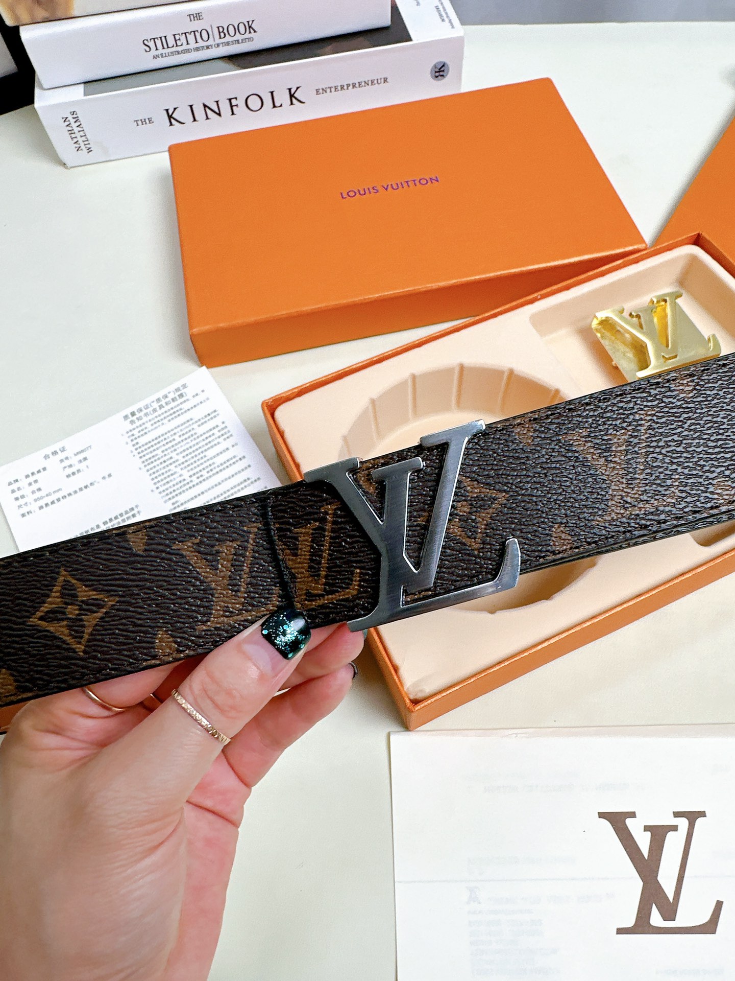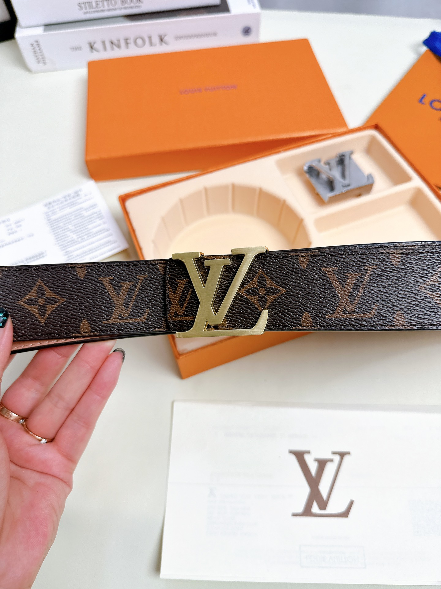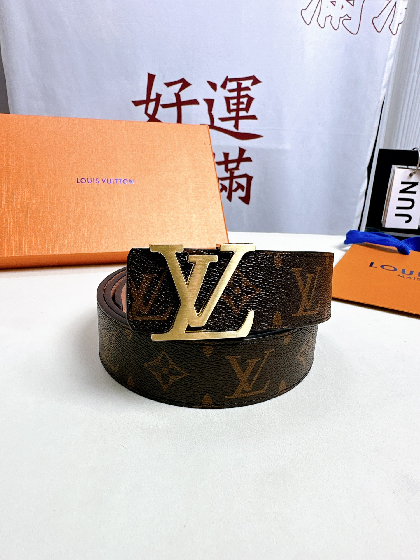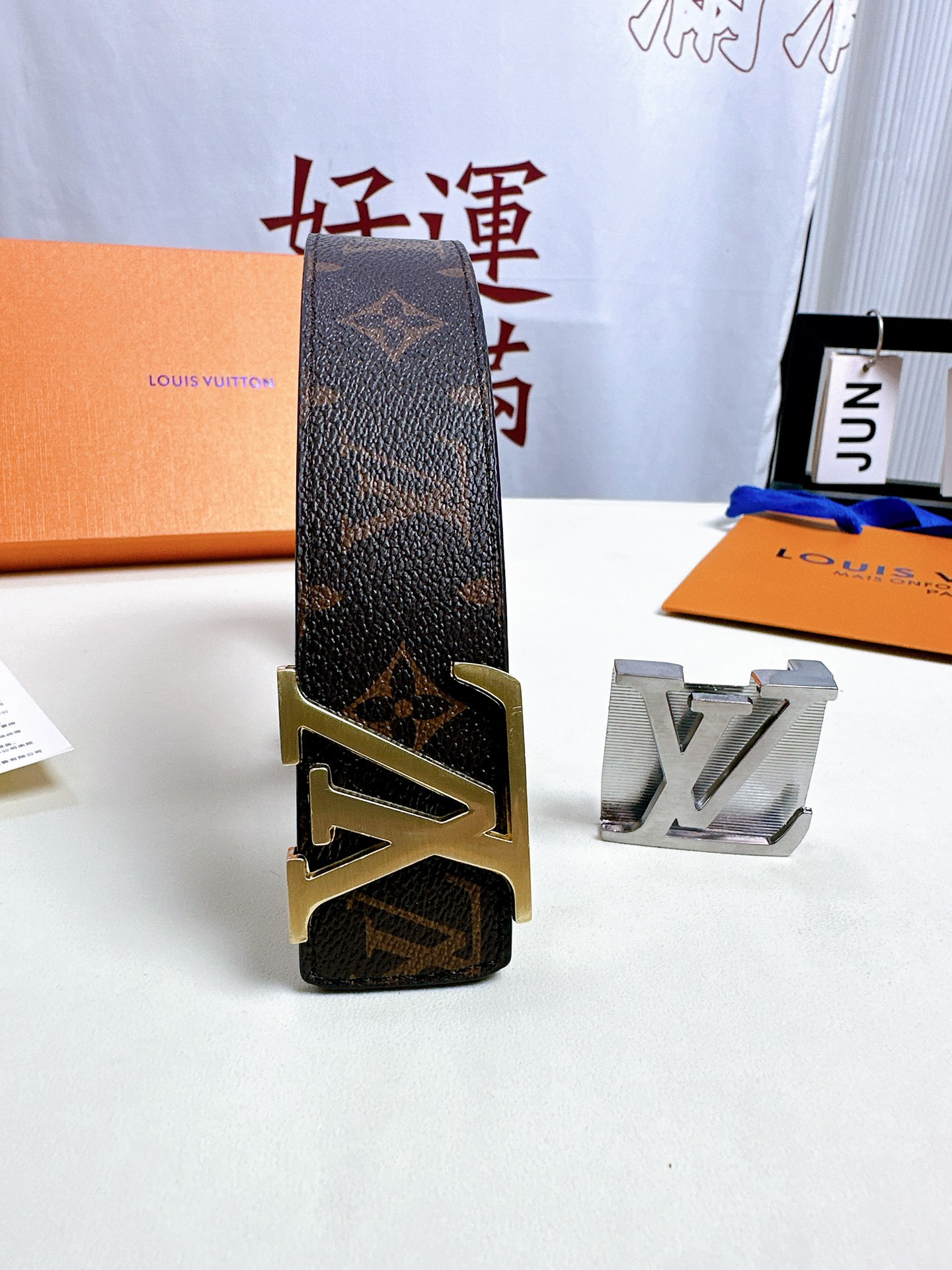 尖叫 上新 高品质 LOUIS VUITTON路易威登 LV 双扣男士皮带腰带礼盒 色号打孔器螺丝刀手提袋发票 二层牛皮真皮带身搭配经典老花图案 一个金扣一个银扣 两个不同风格的铜扣扣头 一个套盒两条皮带 送人自留都OK 尺寸 120cm带身