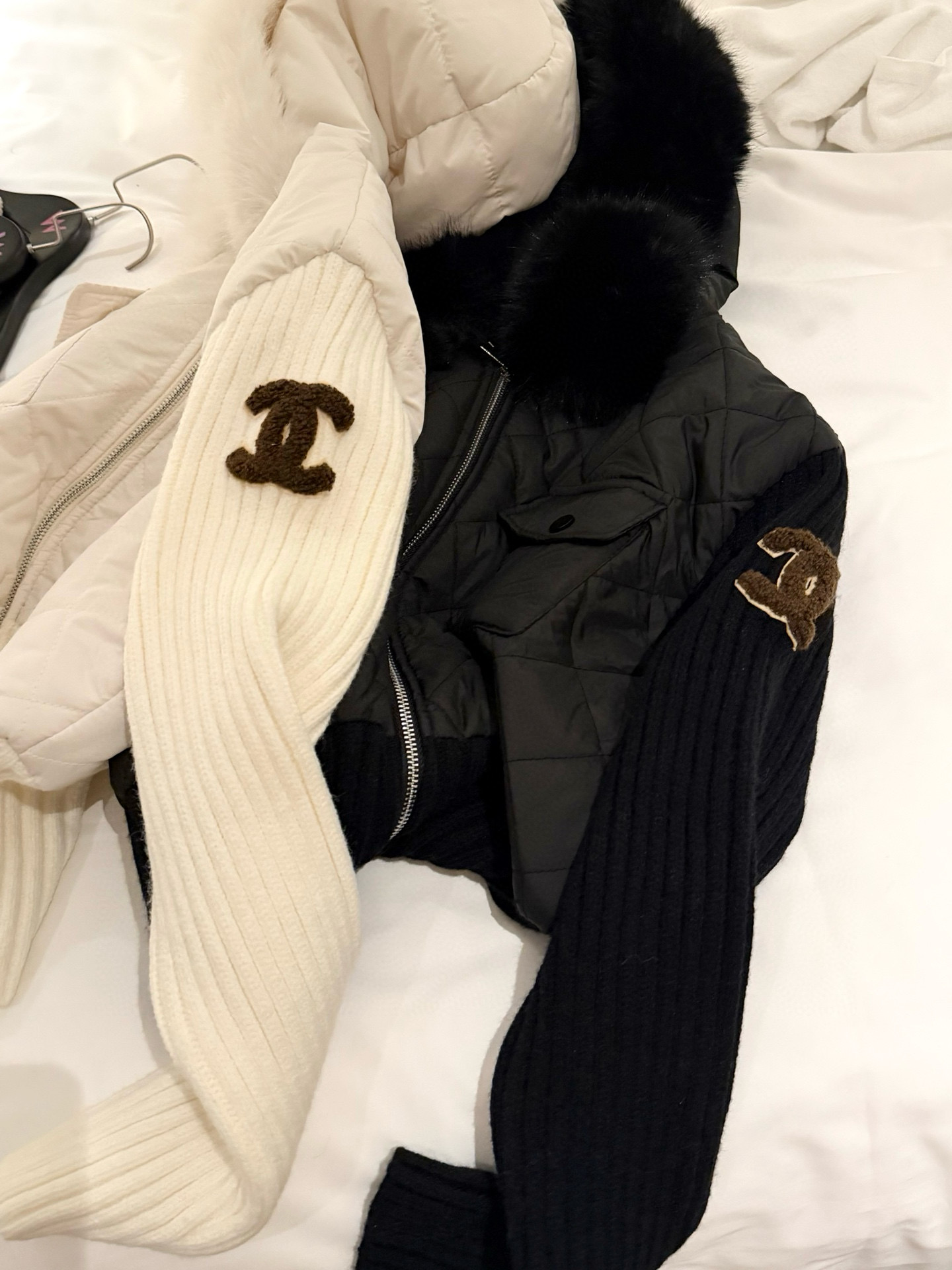 Chanel香奈儿小香双C立体毛巾绣花针织毛衣拼接双头拉链可 383654
