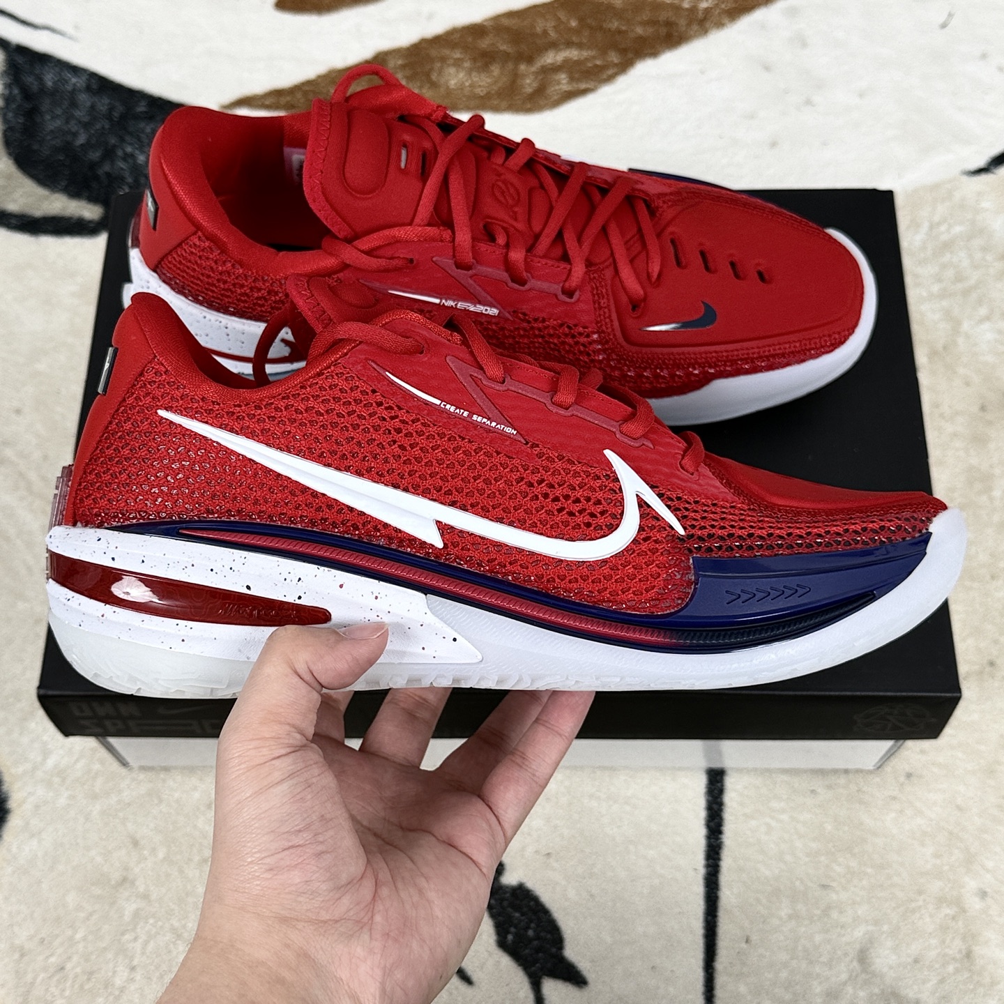 Nike Air Zoom G T Cut 1篮球鞋外观设计时尚且富有运动感 鞋面采用Hyperfuse混合材质 轻量且透气 同时通过TPU丝线编织增强鞋面刚性 既保证了鞋子的美观性 又提升了鞋子的耐用性和支撑性 GT Cut 1采用全掌React鞋垫 全掌切槽Zoom气垫 后掌马蹄形Zoom的 三明治 中底配置 这种配置提供了卓越的缓震性能和回弹效果 React鞋垫提供稳定缓震 Zoom气垫则通过物理切割降低重心 提升贴地感 后掌的马蹄形Zoom进一步强化冲击吸收 鞋面材质柔软舒适 包裹感超强 前掌外侧的双层TPU弯折引导槽既贴合脚部发力点 又避免过度形变导致的支撑不足 同时 鞋楦设计偏向欧洲脚型 前掌略宽 但通过太空棉内衬和动态飞线实现 瘦脚不空 宽脚不挤 的舒适穿着体验 GT Cut 1的缓震配置堪称前无古人后无来者 穿上它 能在任何场地上都能感受到充足的回弹 而且不衰减 无论是突破还是起跳落地 都能得到充分的缓震保护 鞋子整体把控能力非常强 包裹性到位 且随着穿着时间的推移 鞋子逐渐适应脚型 低帮设计搭配动态飞线 使得鞋子在保持包裹性的同时 也具备了出色的灵活性 鞋底的抓地力超强 无论是室内木地板还是室外橡胶场地 都能提供稳定的表现 防侧翻稳定结构有效减少崴脚风险 让球员在激烈对抗中也能保持稳健