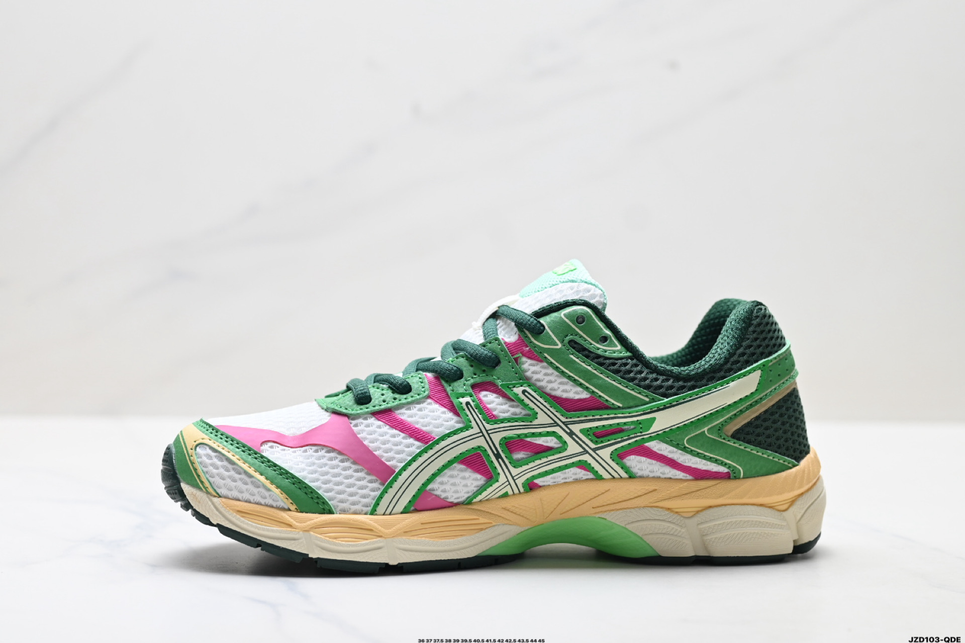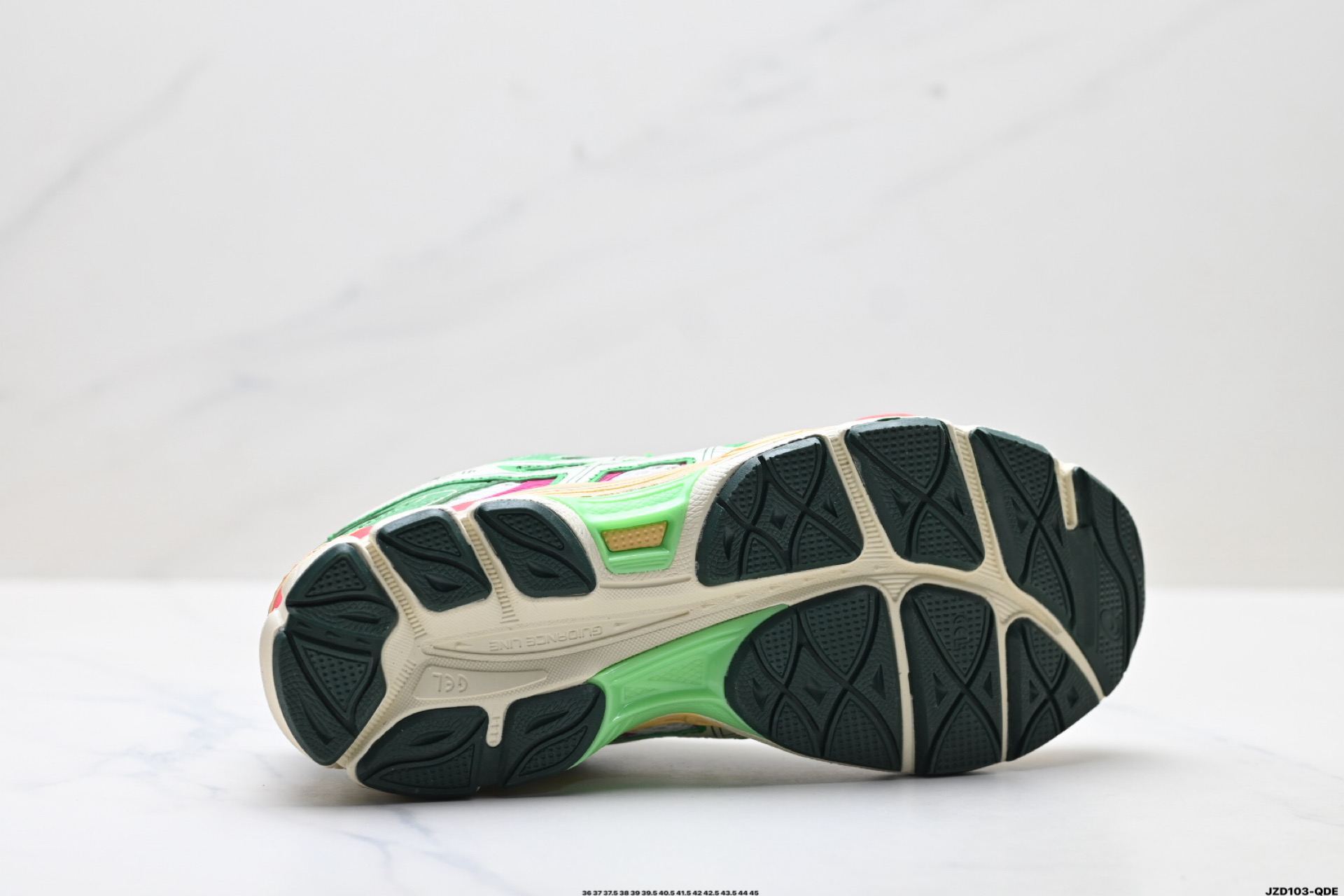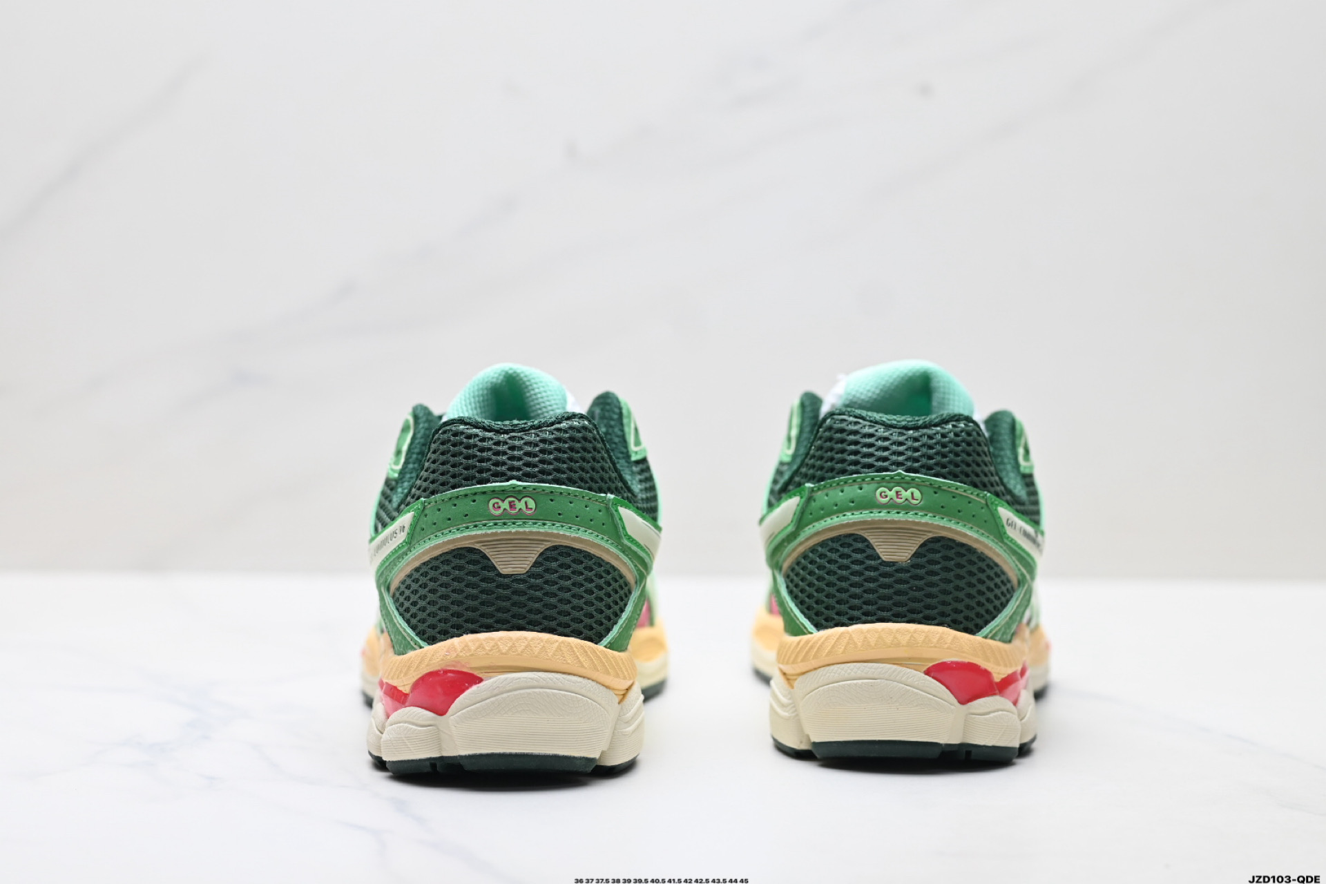 后跟搭载稳定系统科技T GEL提升整体支撑力和结构感 减少对身体带来的冲击负荷 创新中底至轻回弹
