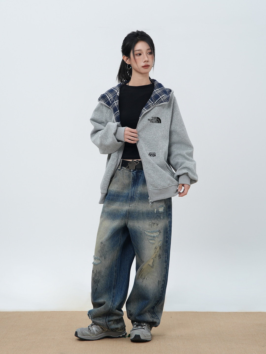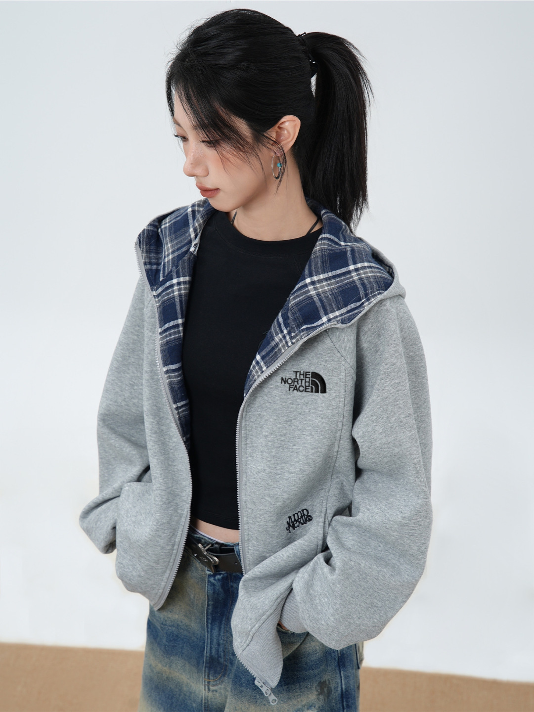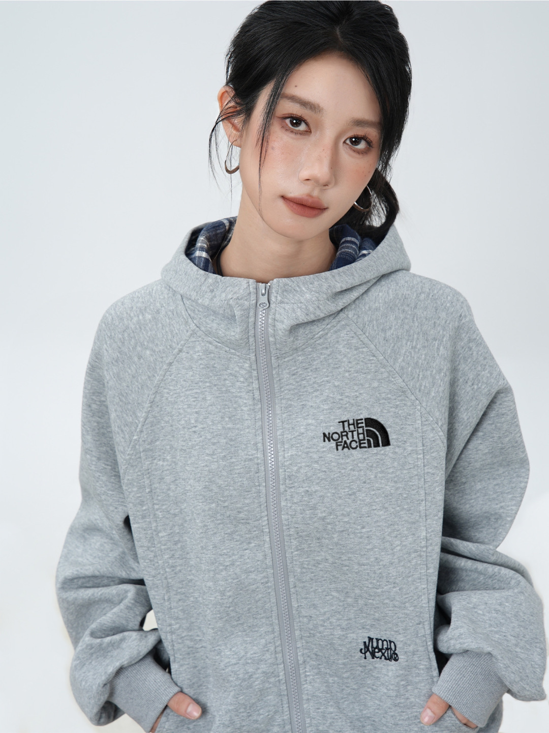 110156341 - TheNorthFace北面格子撞色连帽开衫卫衣高级感宽松休 332127