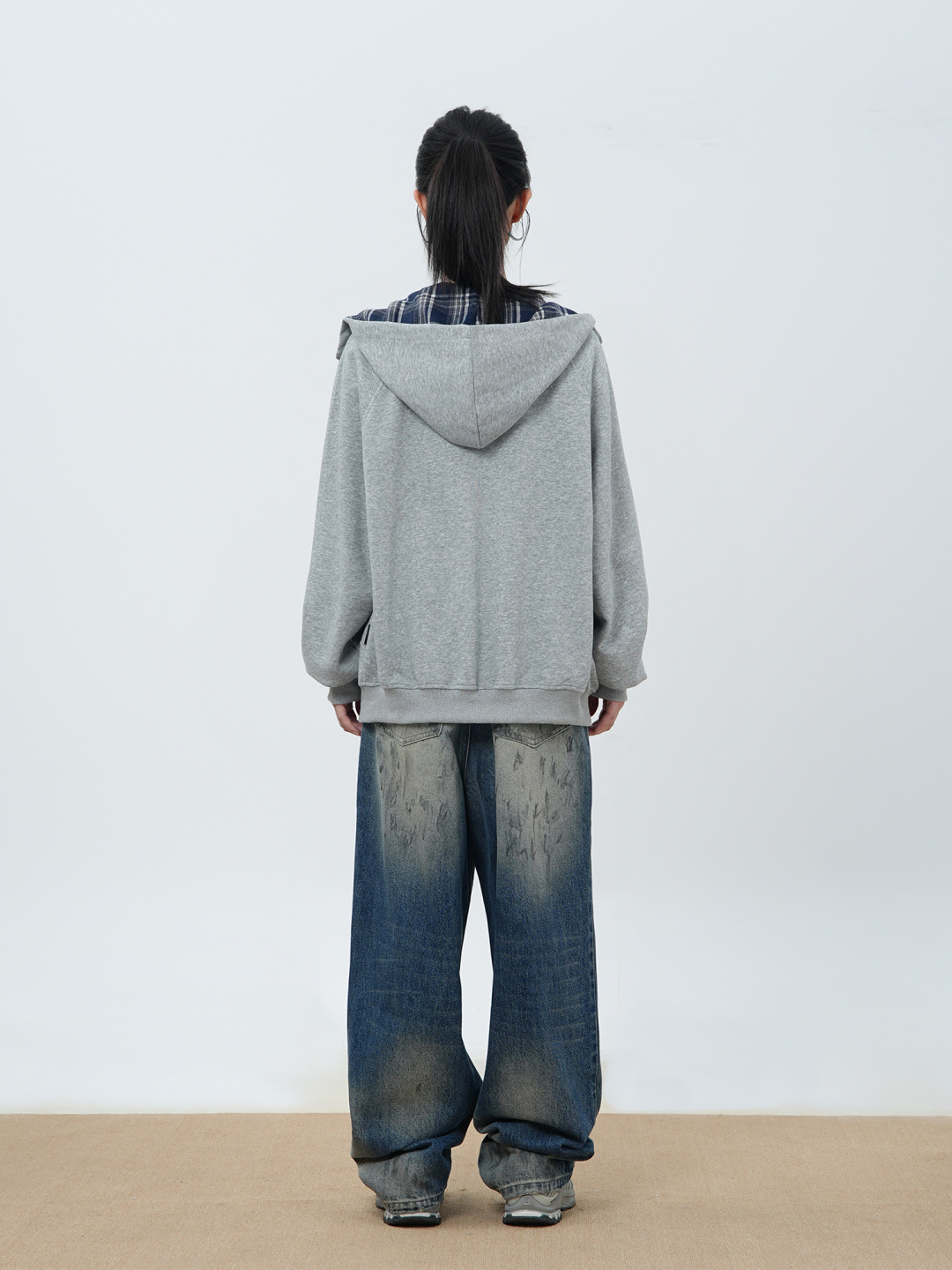 TheNorthFace北面格子撞色连帽开衫卫衣高级感宽松休闲外套潮拼接美式复古落肩拼接卫衣男女同款高街休闲廓形落肩袖重磅设计感外套