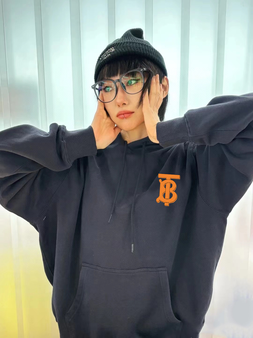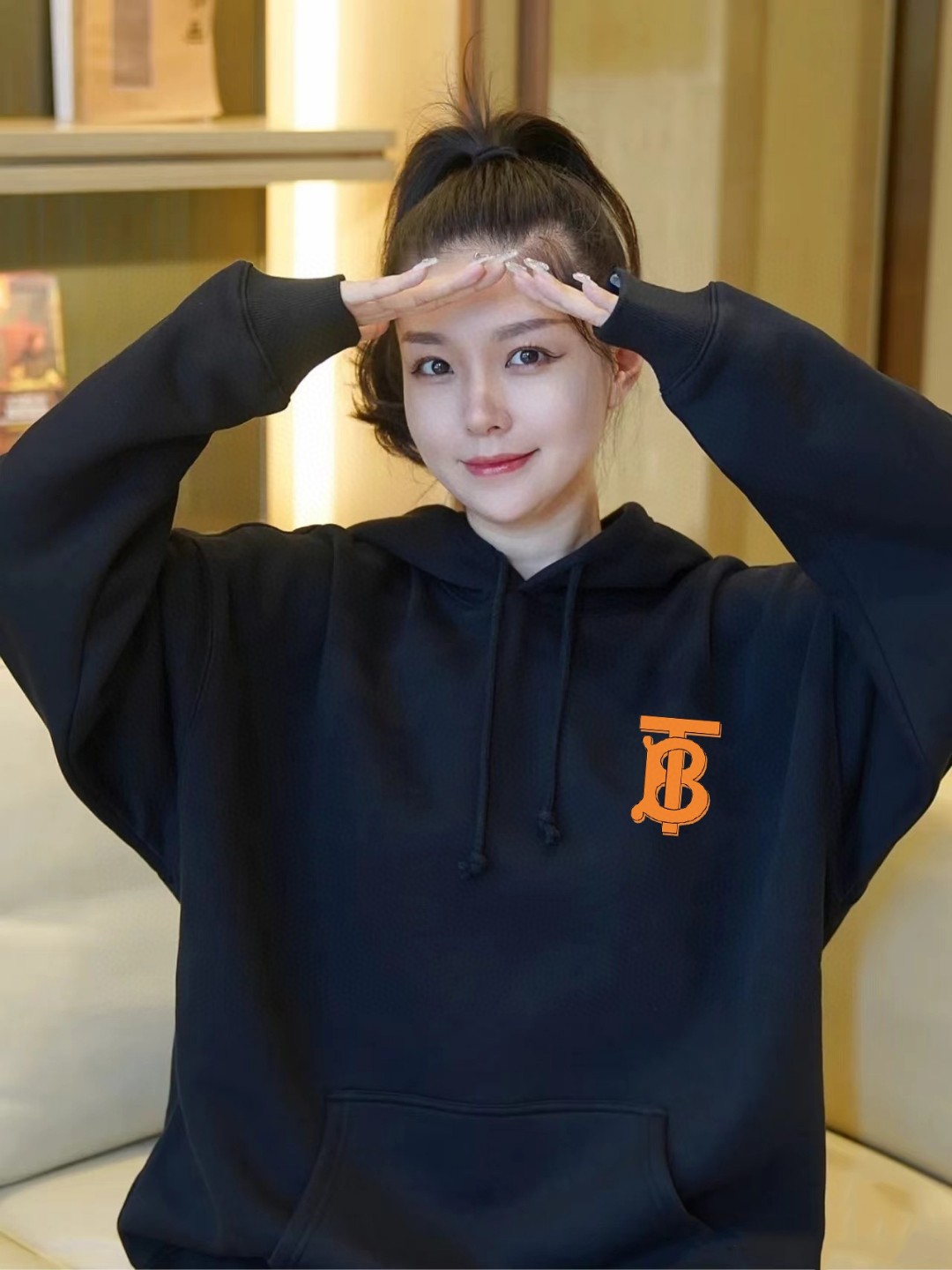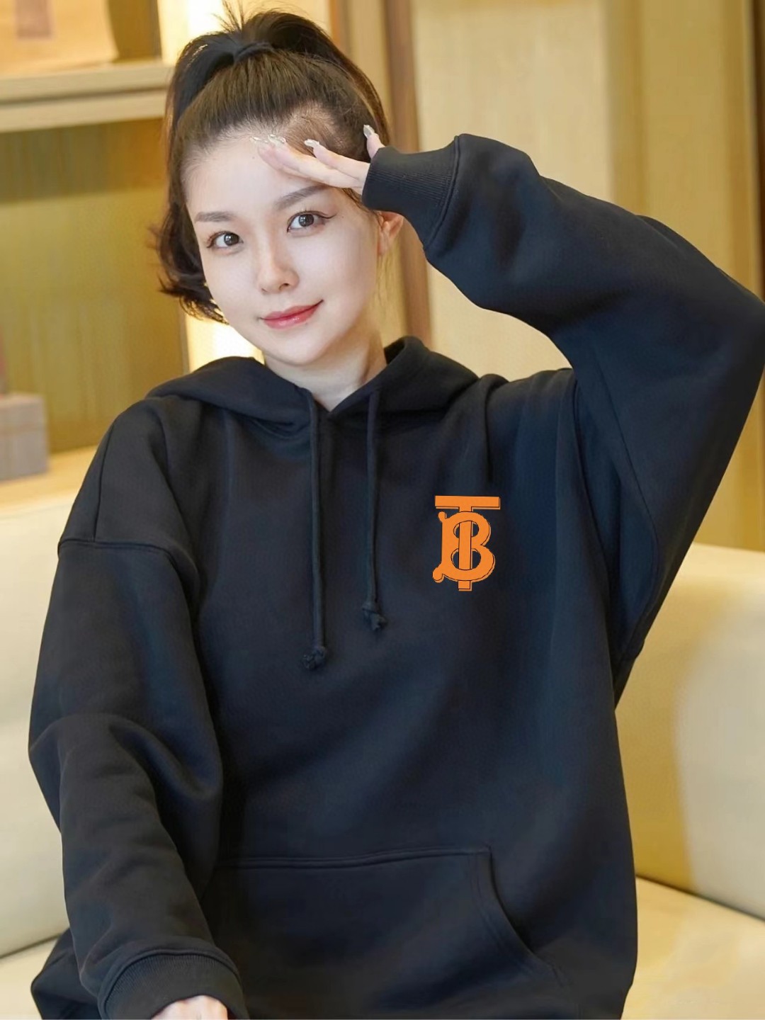 BURBERRY巴宝莉官网同步最新款橘B字母小logo印花男女情侣同款连帽卫衣