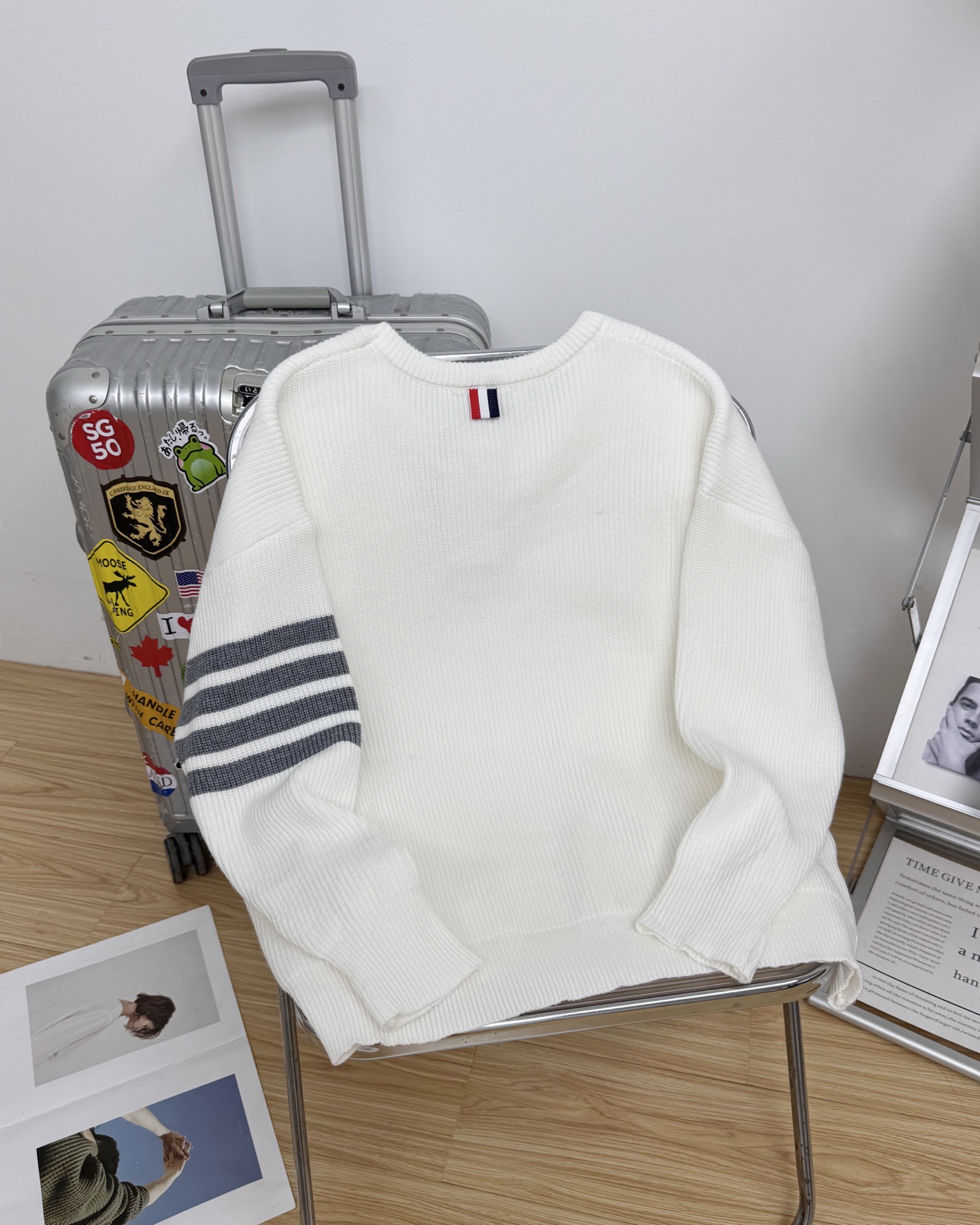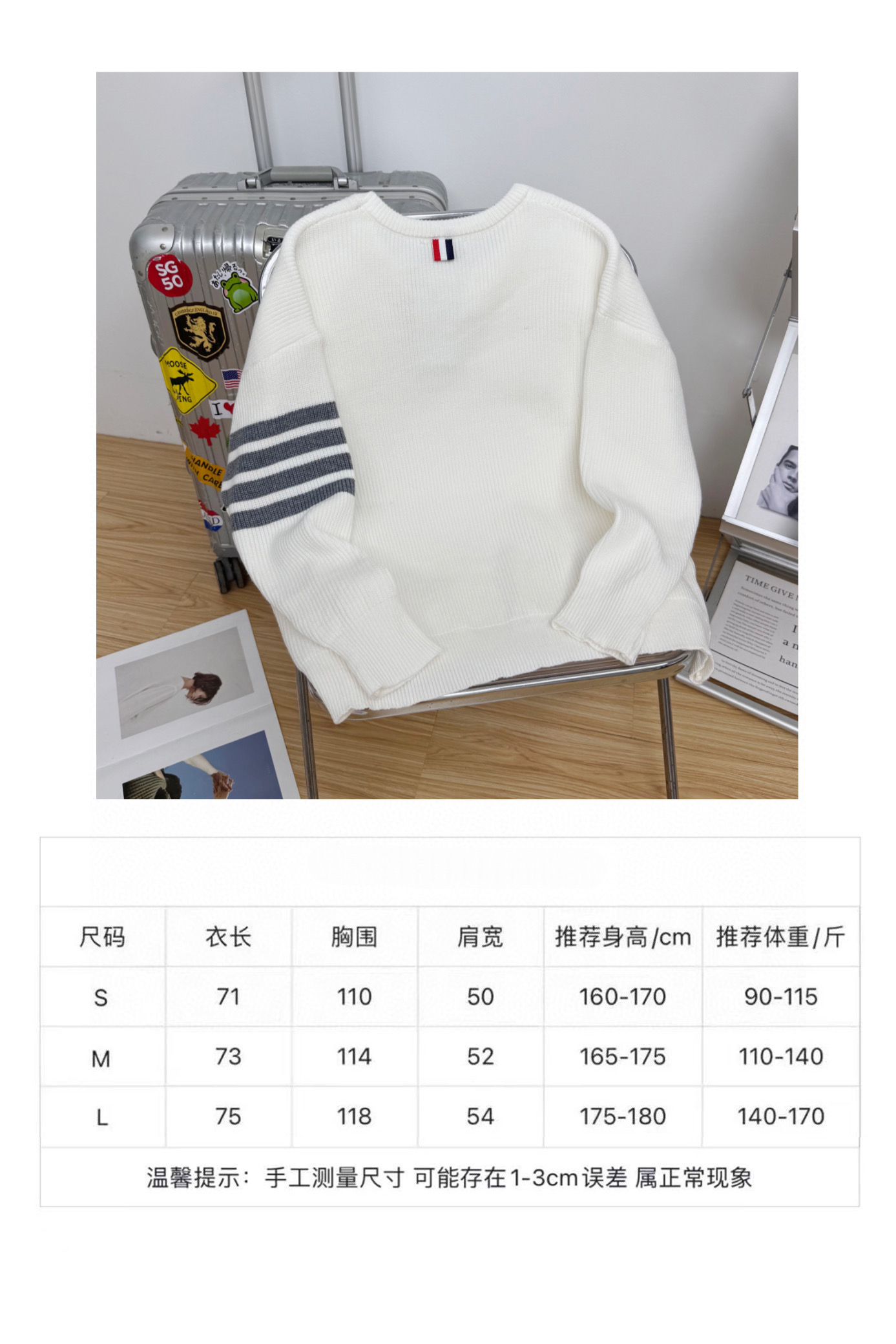 ThomBrowne经典2色织带用砂线针织拼接而成 纱线精选柔软舒适 不扎人 一件衣服超过一斤的克重 妥妥的高品质 1 1定制 真正的还原ZP 所有颜色都超级洋气哦 经典的风格 这个秋天怎么能没有一件TB毛衣呢 男女都可以穿哦 男生上身也炒鸡洋气哦 秋冬必备