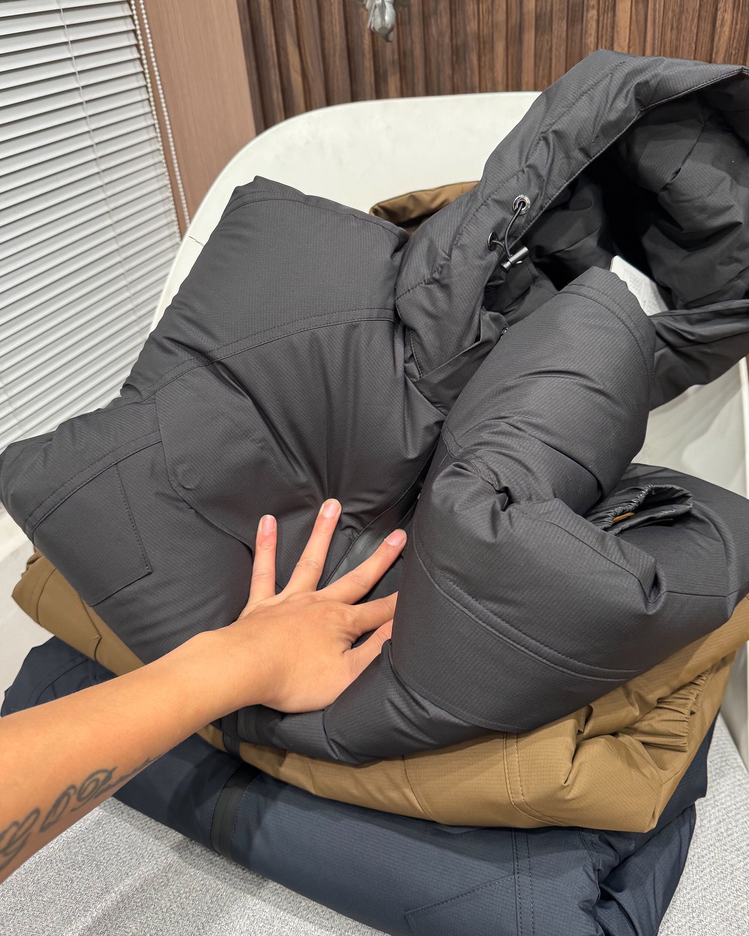 最新型的Gore tex尼龙纤维面料 防水透气效果更显著 区别于市面的PU涂层的面料 内里东丽高光聚脂尼龙布配备 质感及手感毋庸置疑的优秀 防风抗寒保暖效果极佳 锁绒是必须的
