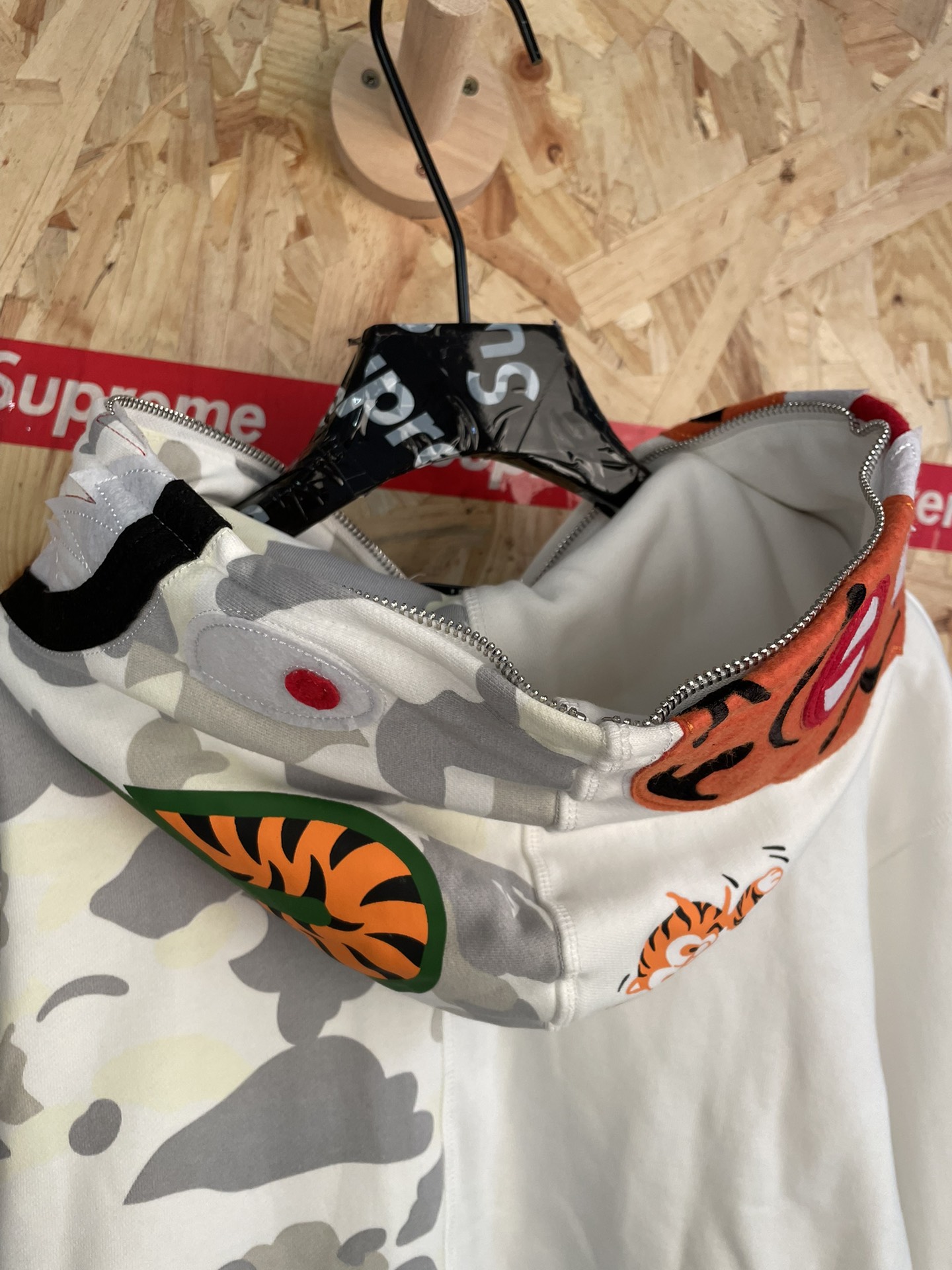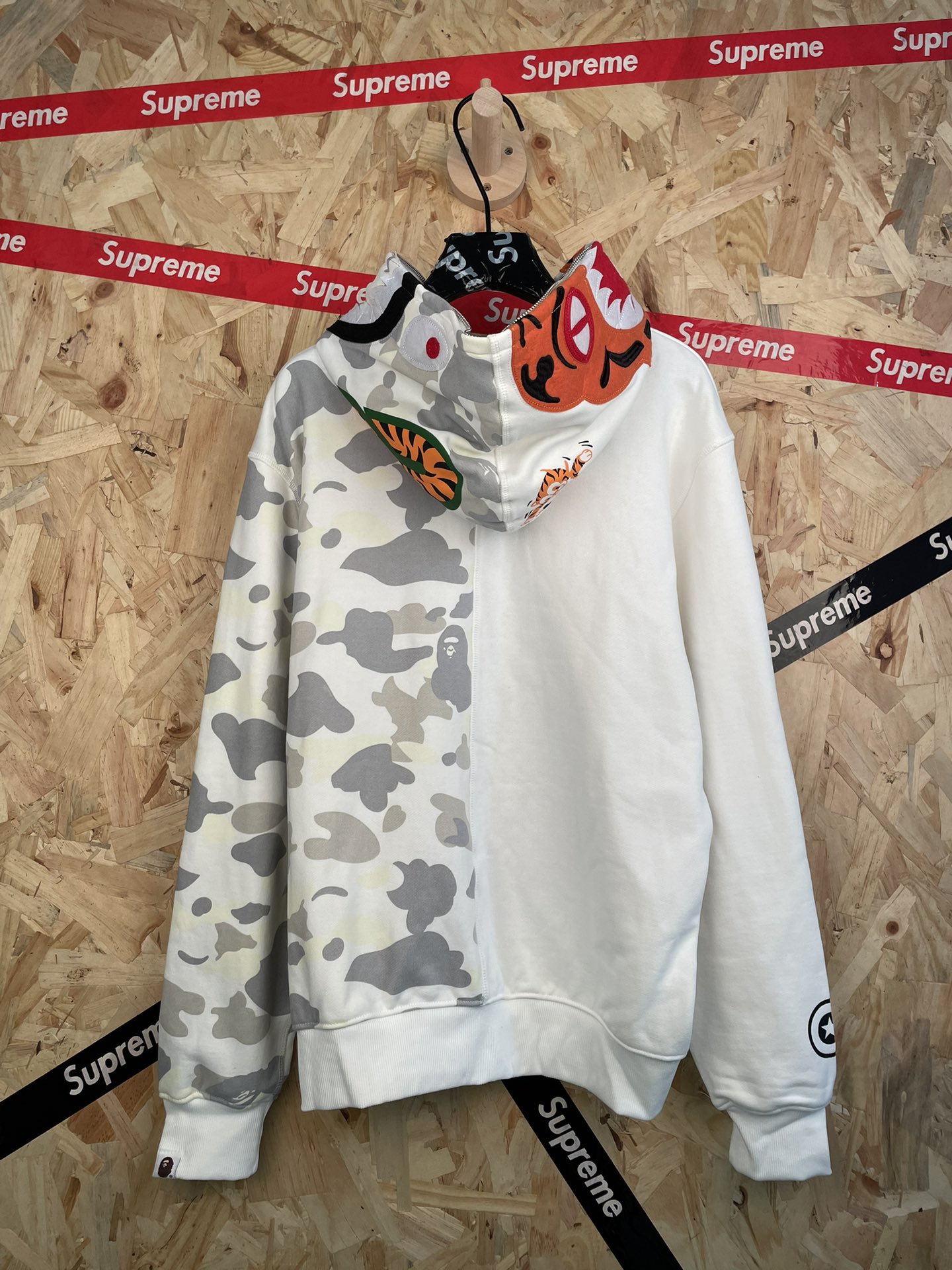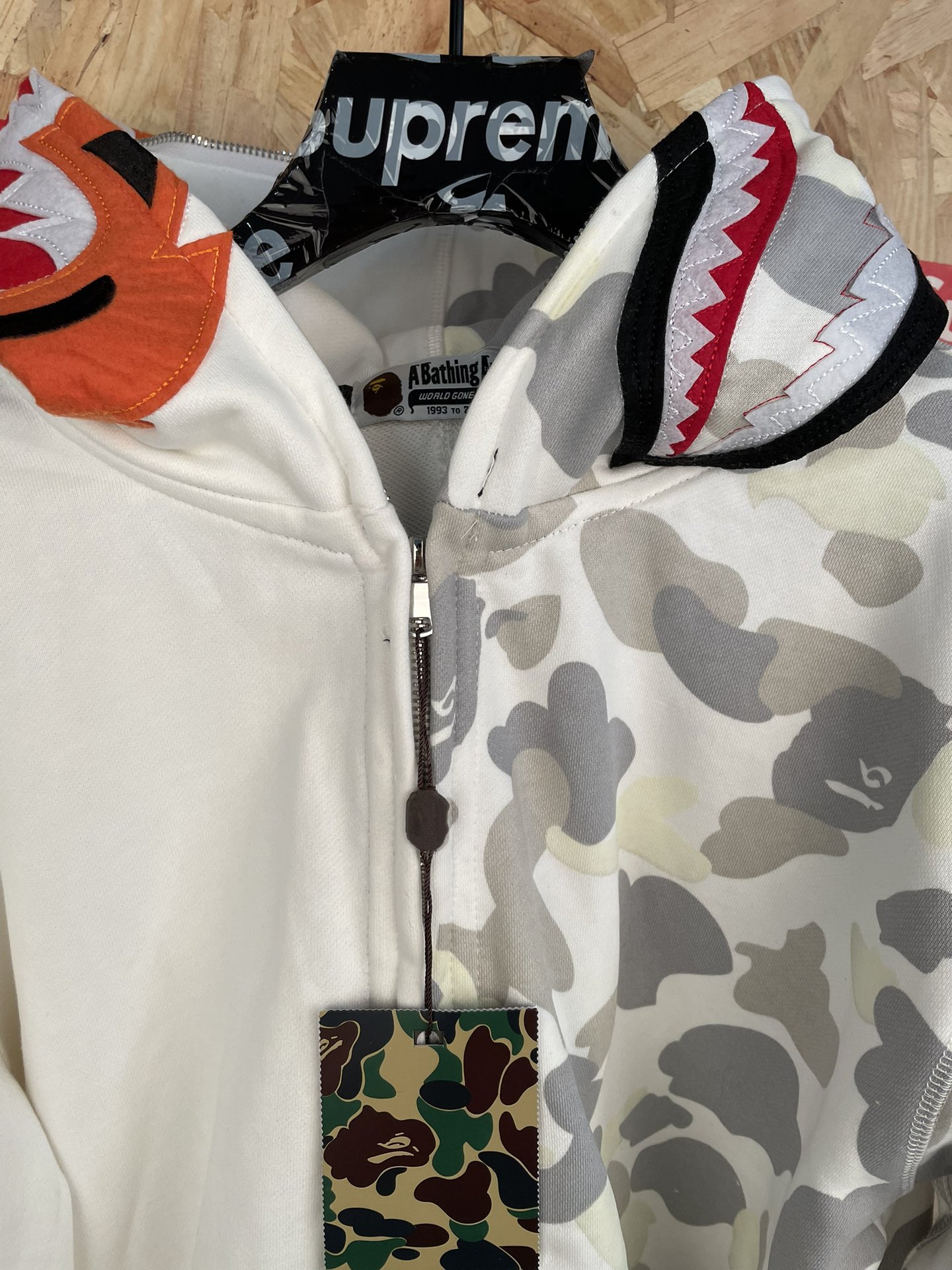 款号 sy48 Ba e美式潮牌鲨鱼单帽拼接荧光连帽拉链外套