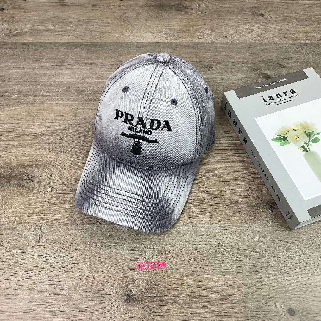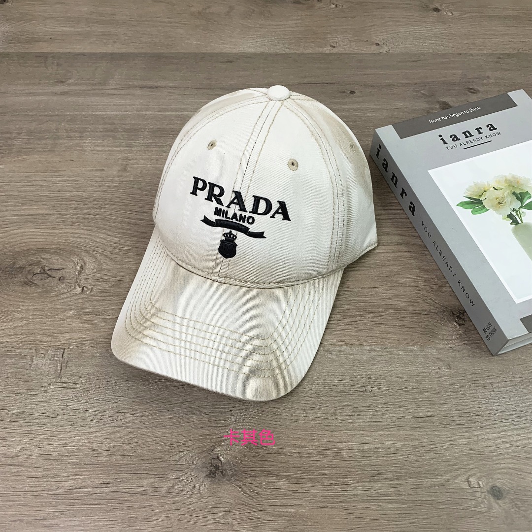 47242324 - 普拉达PRADA印花洗水做旧棒球帽休闲男女鸭舌帽显脸小帽子情