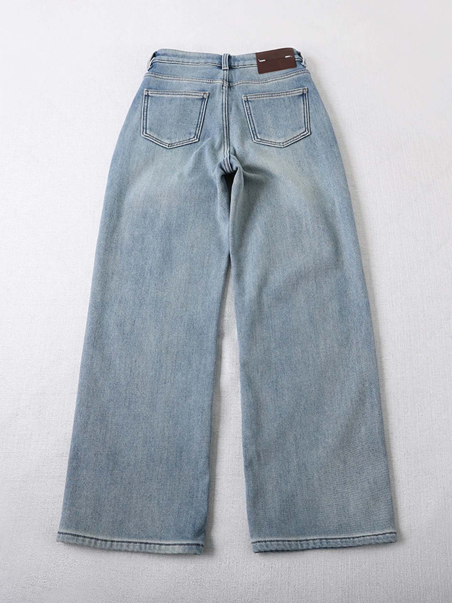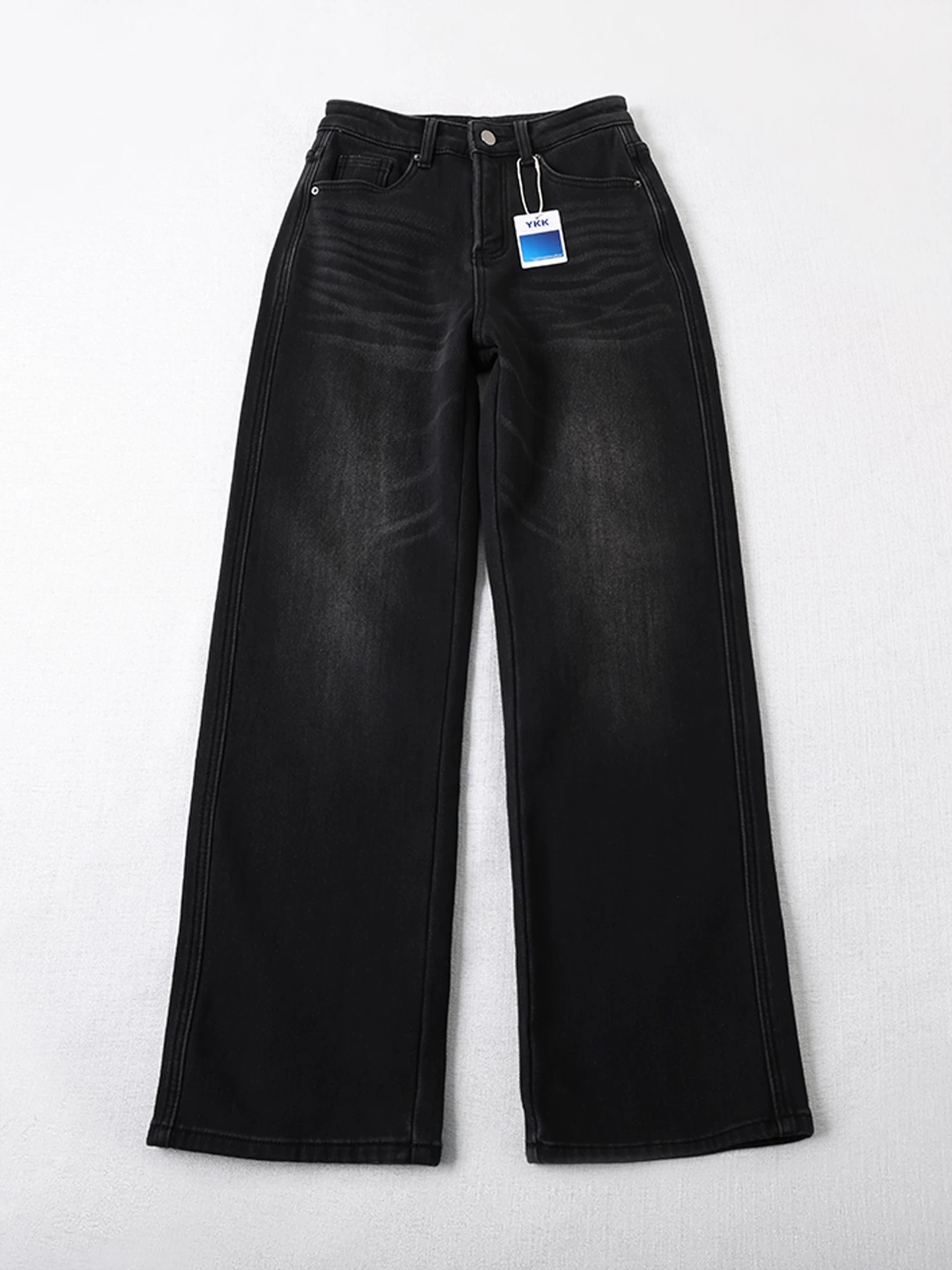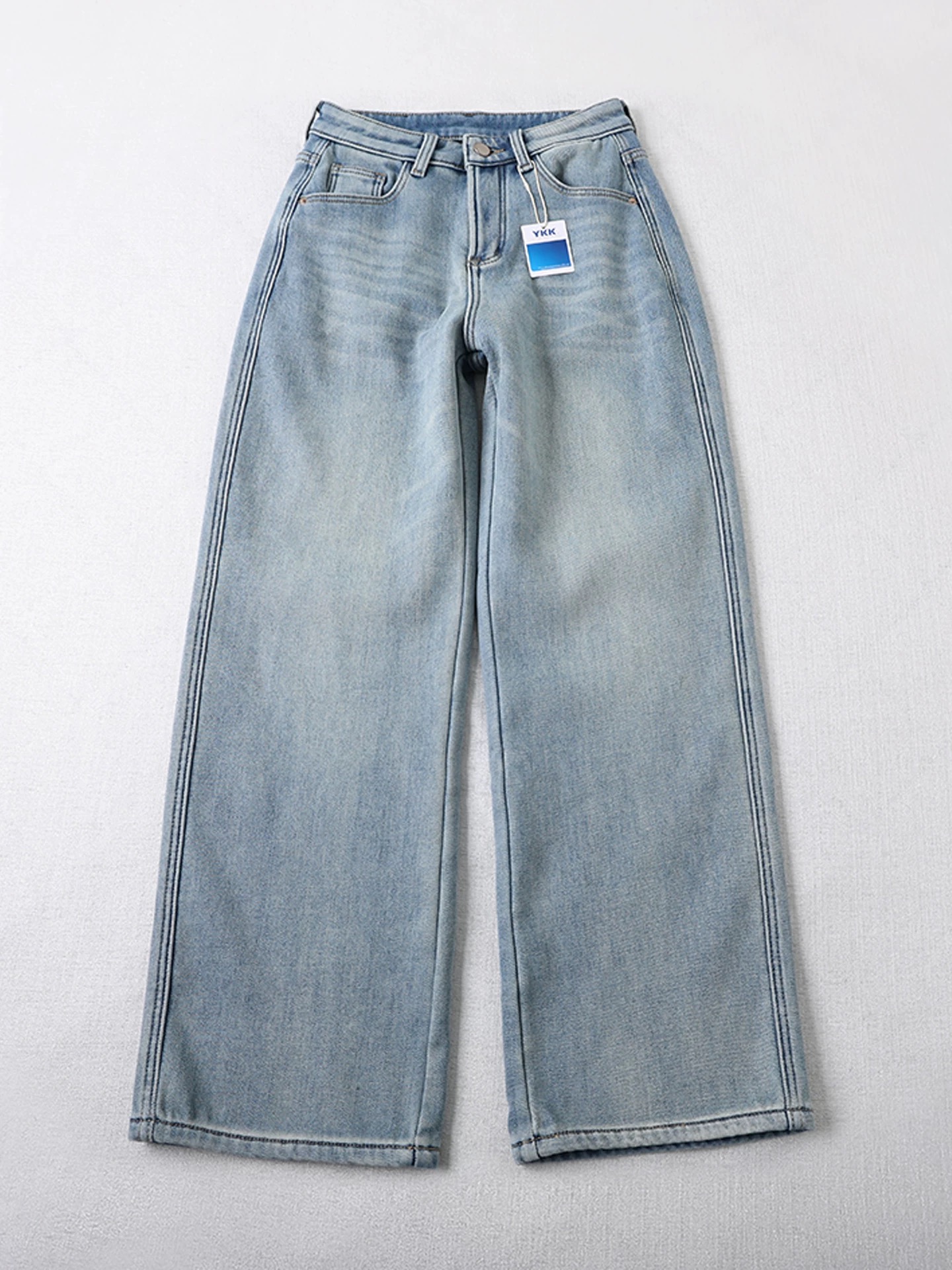 135180979 - 加厚绒 不臃肿 窄版直筒牛仔裤女秋冬新款慵懒百搭宽松阔腿长裤 393615