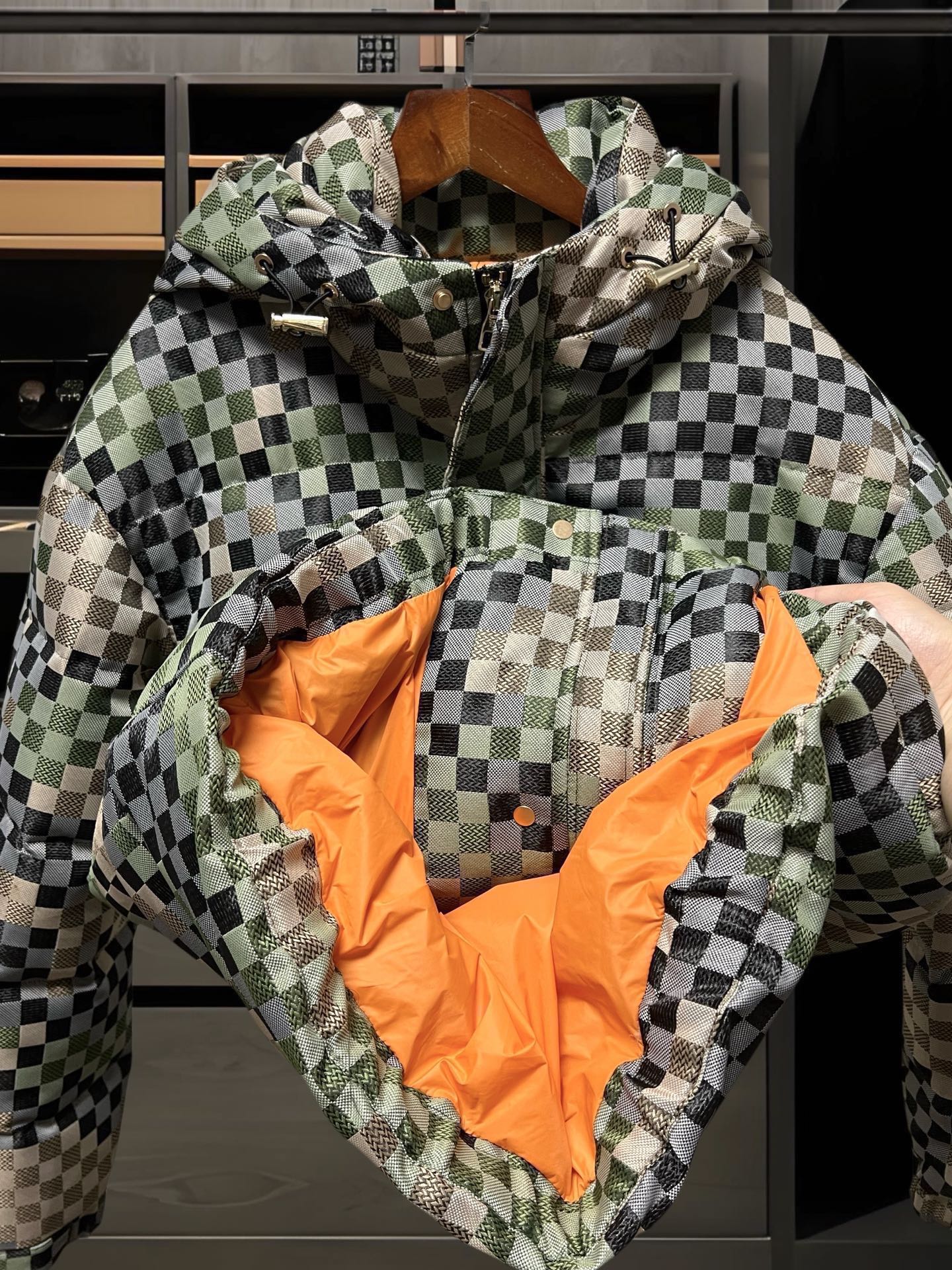 人气爆款 LV 路易斯威登专柜新品迷彩棋牌格御寒保暖加厚白鸭绒羽绒服 恒隆在售万元级 款号 9906
