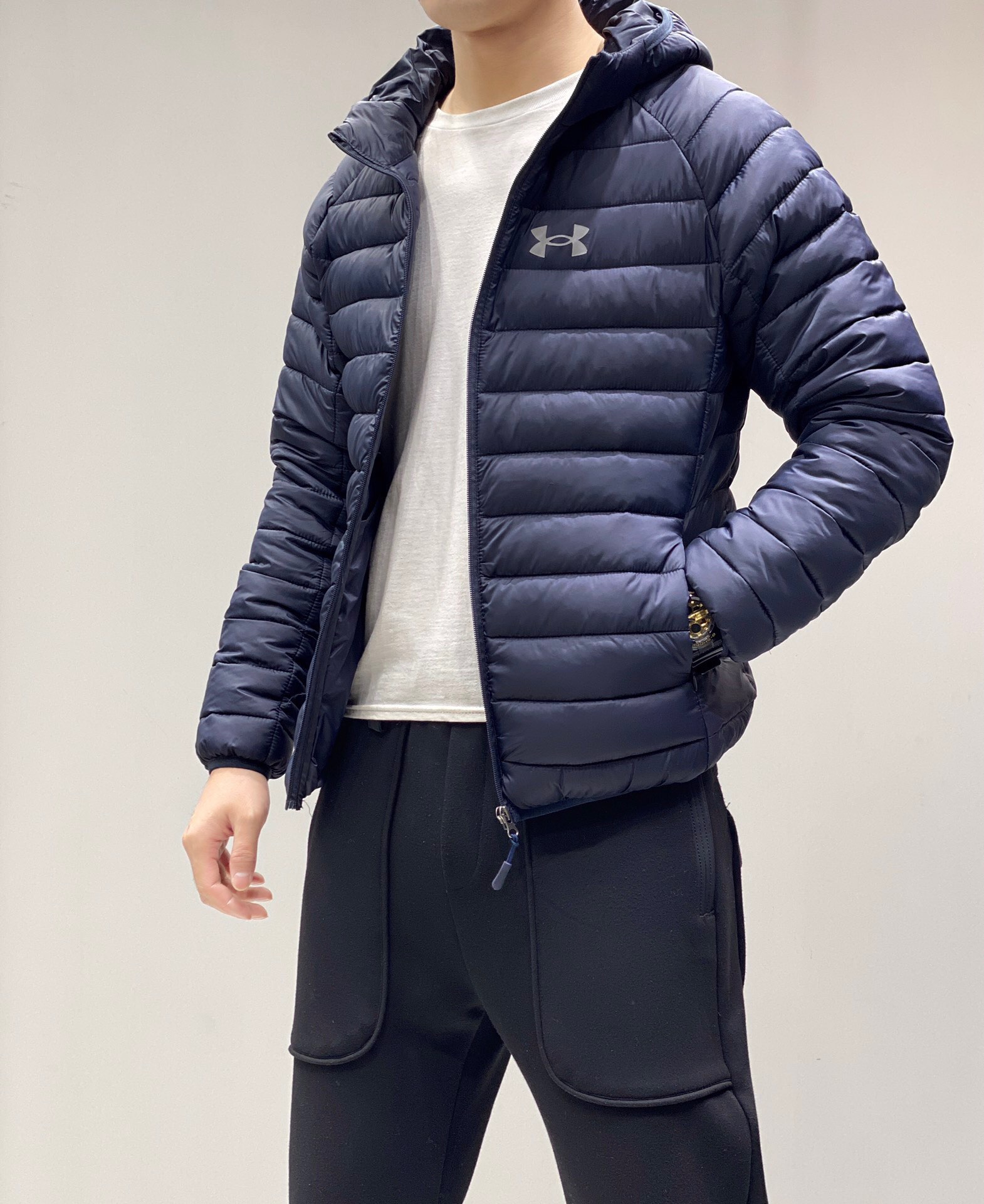 2023冬UA安德玛新款连帽轻薄棉服 这款上身帅炸 上身很男神的一款 小码女生也可以穿 这个冬天你必入的一款棉衣 胸前经典logo印花 3M反光 简单低调 当下最热的元素 性价比超高 轻薄的御寒神器 上身效果简单而高级 不失为此款设计师苦心量身定制的版型 立体高温压胶工艺 水洗不会掉 首先面料采用密度防风防雨面料 填充物是中空棉 保暖效果很好 这种填充物是由不同规格的超细纤维 和新疆棉经过特殊工艺生产制造 新疆棉具有轻薄 手感细腻 柔软 保温好 各种优点 此款最大的亮点还算是内里的保暖层 这款棉服版型真是没得说 细节决定品质 穿上一件 告别寒冬 绝对火爆的高科技经典款 好货不常有 遇到了 就一定要珍惜