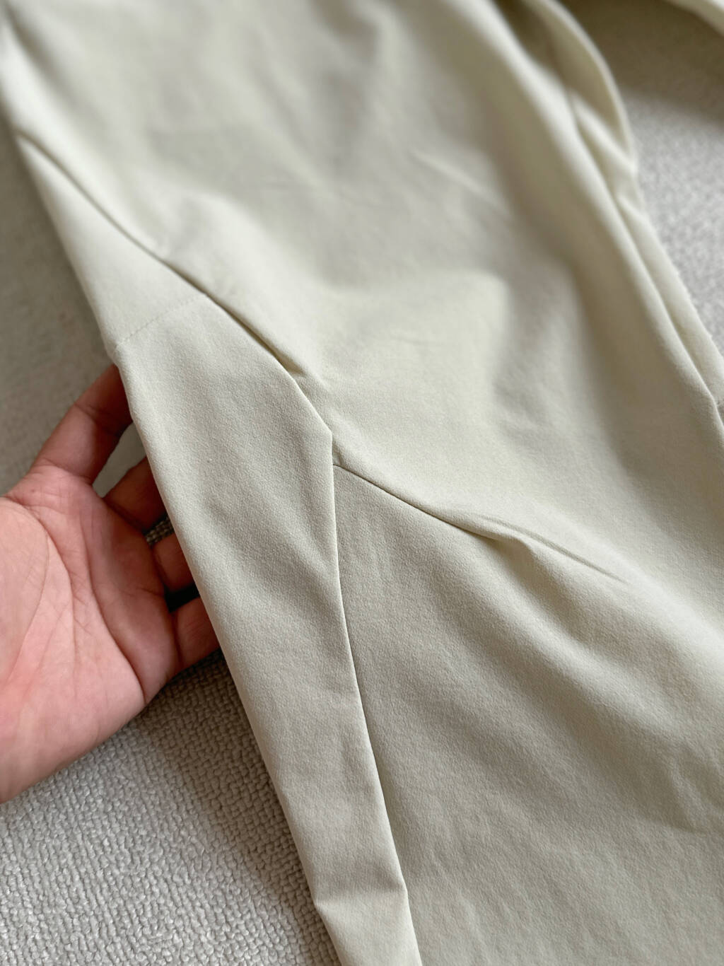 膝盖处的拼接和裤裆插脚布设计