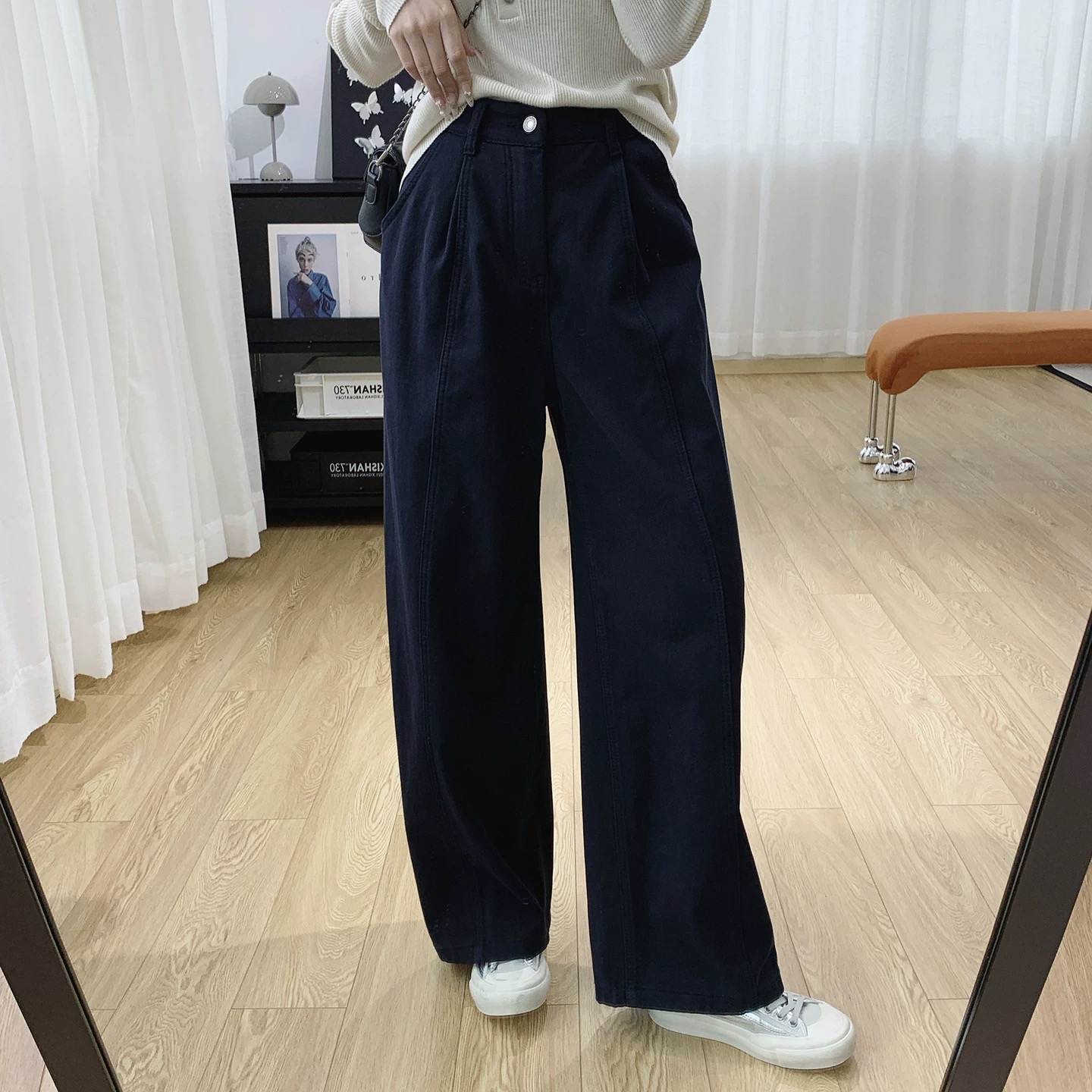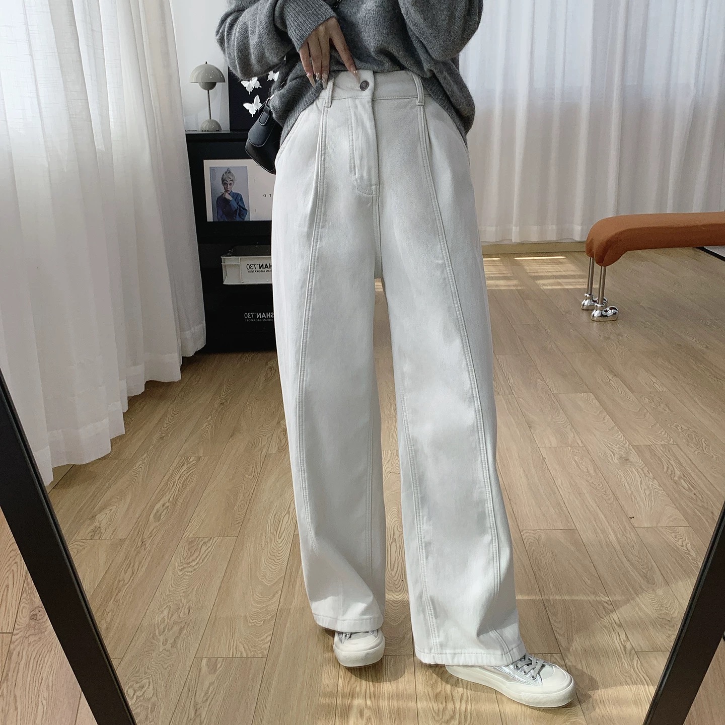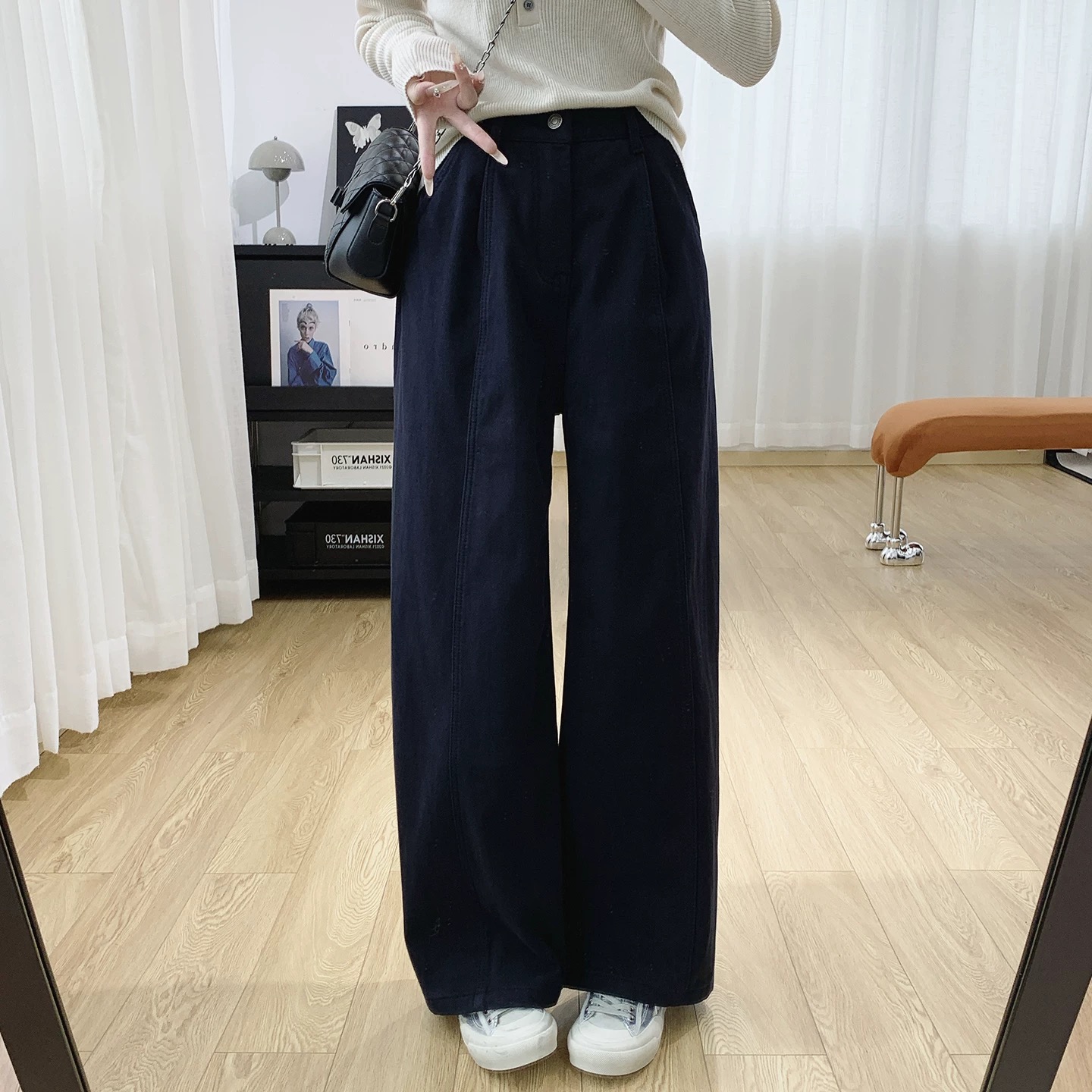 后半松紧腰宽松慵懒松弛感杨桃裤高腰显瘦加绒阔腿牛仔裤女秋冬 新晋神裤 秋冬人手一条BAI穿不厌的微宽松加绒杨桃裤