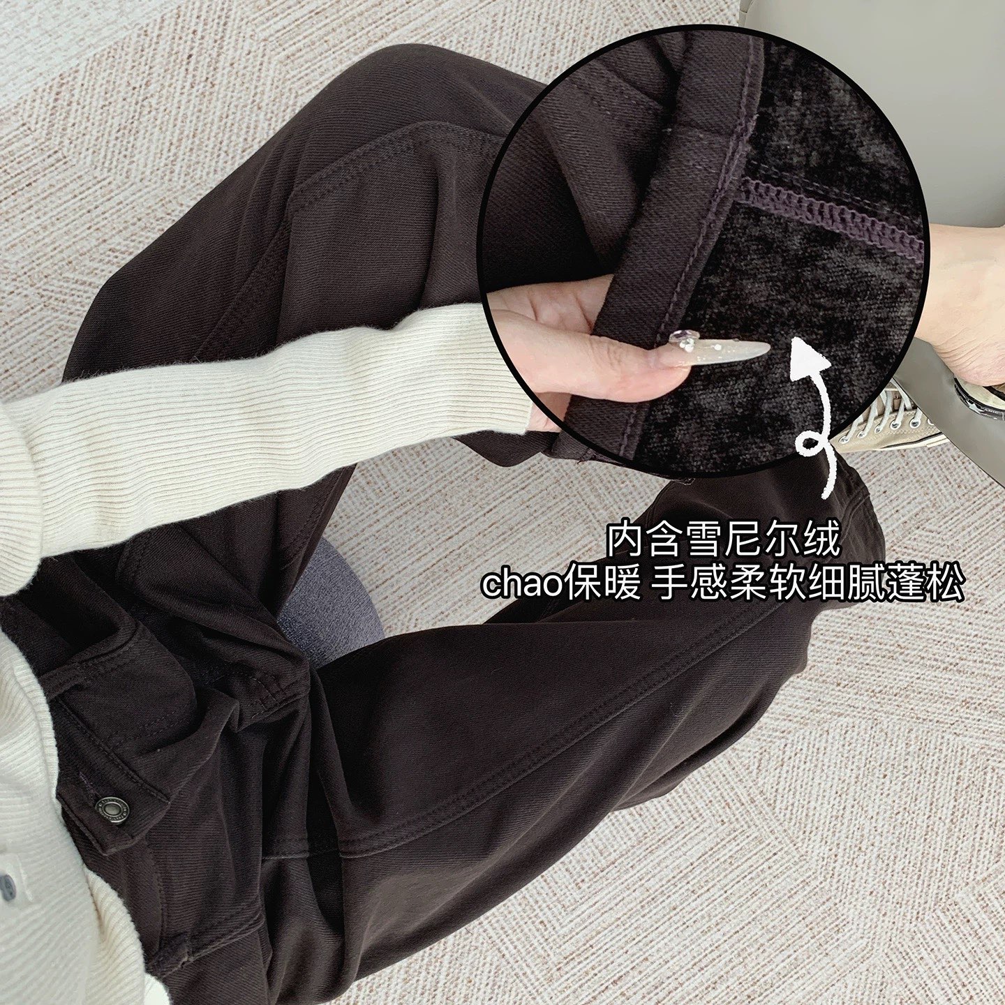 内里雪尼尔绒 绒面丰满手感ji其柔软织物厚实保暖御寒杨桃裤从上之下线条流畅对大腿臀部有很好的修饰作用