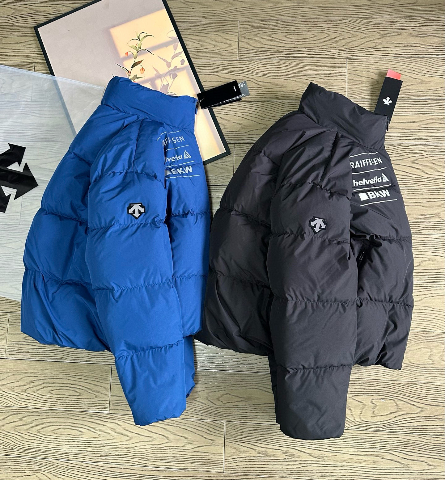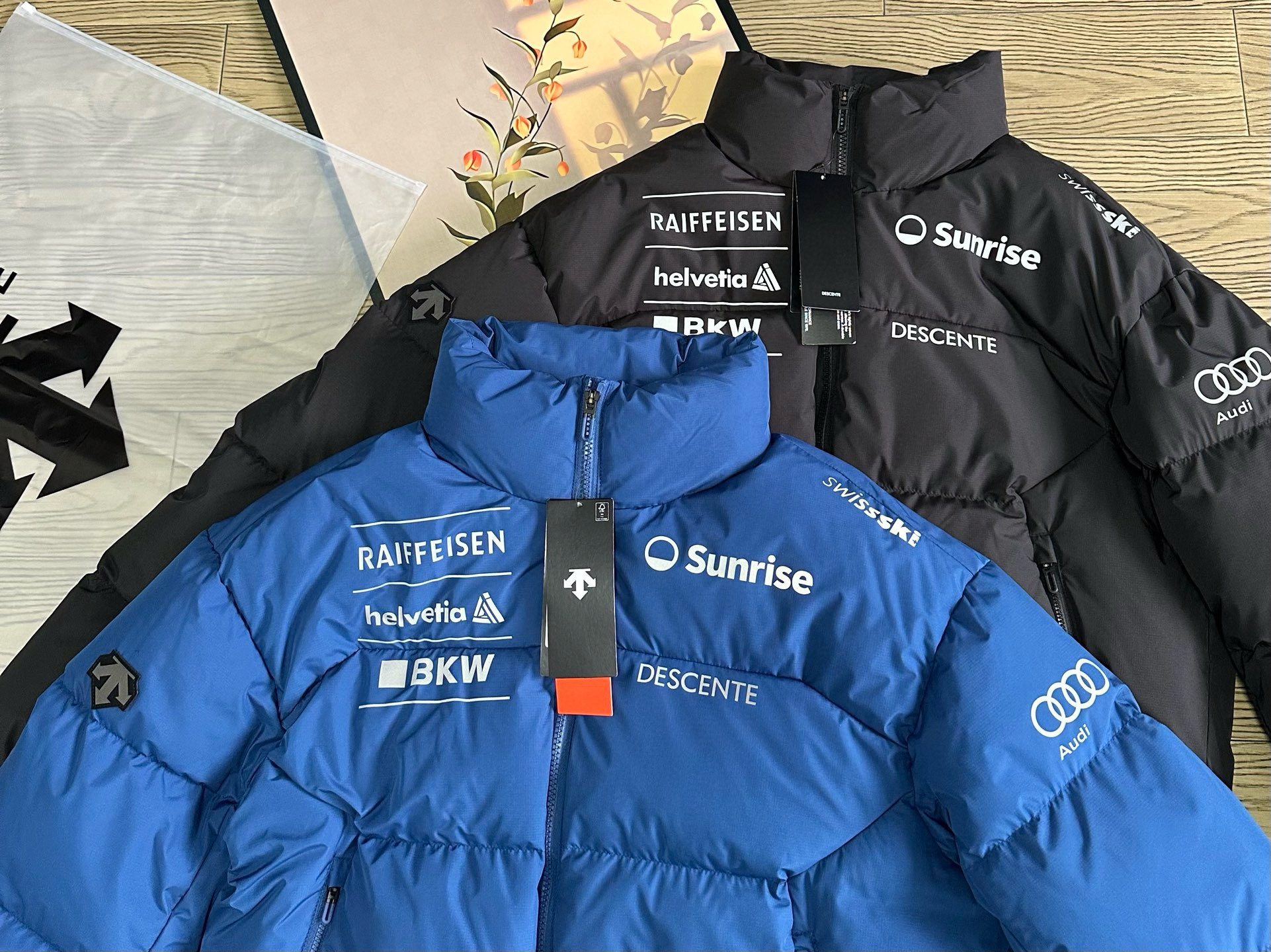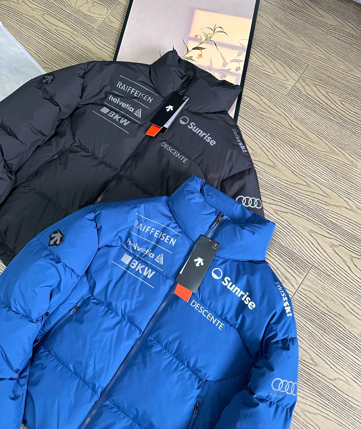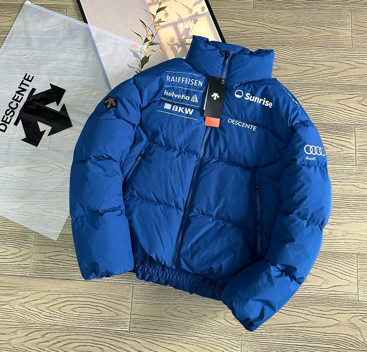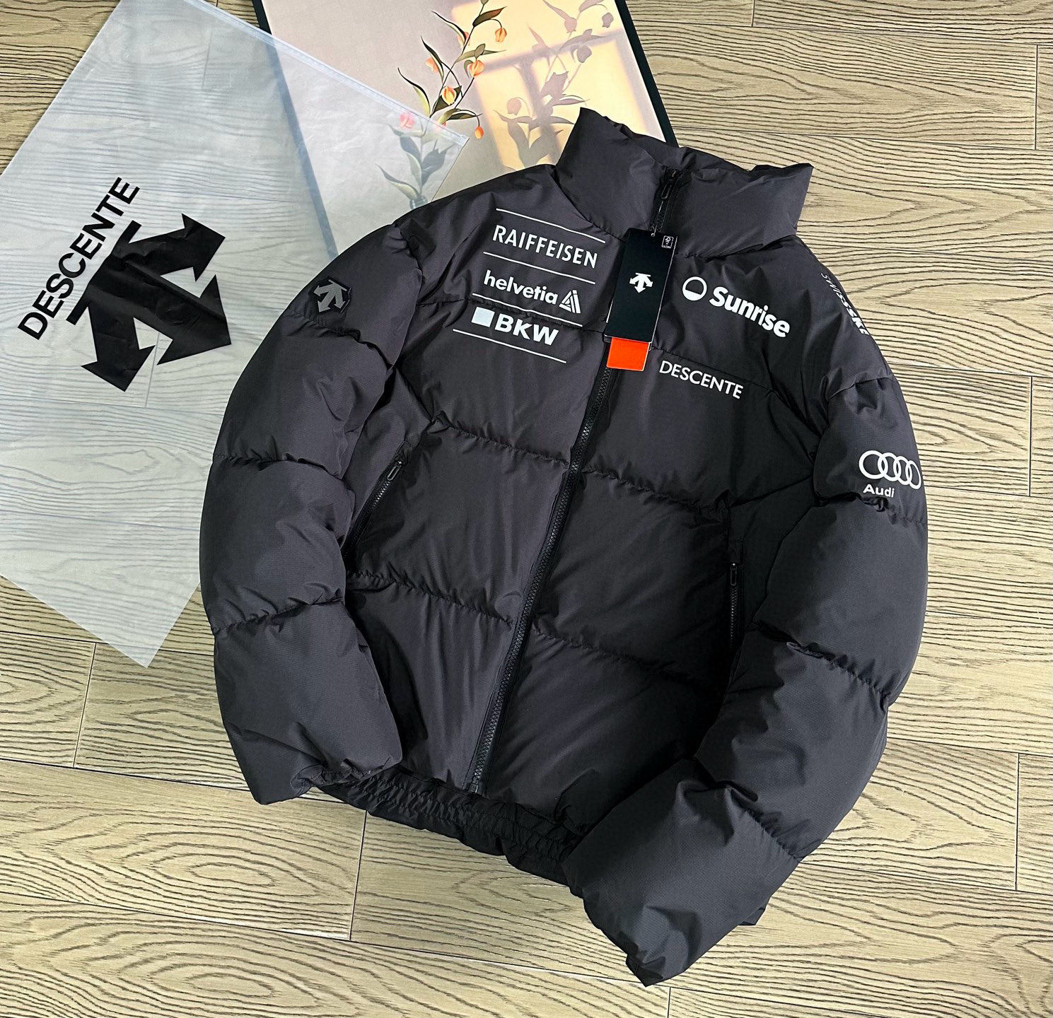 辅料介绍 正品一致YKK拉链 这个是最基础的 迪桑特专属U刻拉链头 开模订制 带Logo 多联水洗带尺码 多联合格证 吊牌带原品 不干胶 后领柔Pu皮标 尺码标带多国尺码 国内需看中国尺码即可 气眼 纽扣 小到可以忽略的东西 全部复刻 只为还原最好的给你们