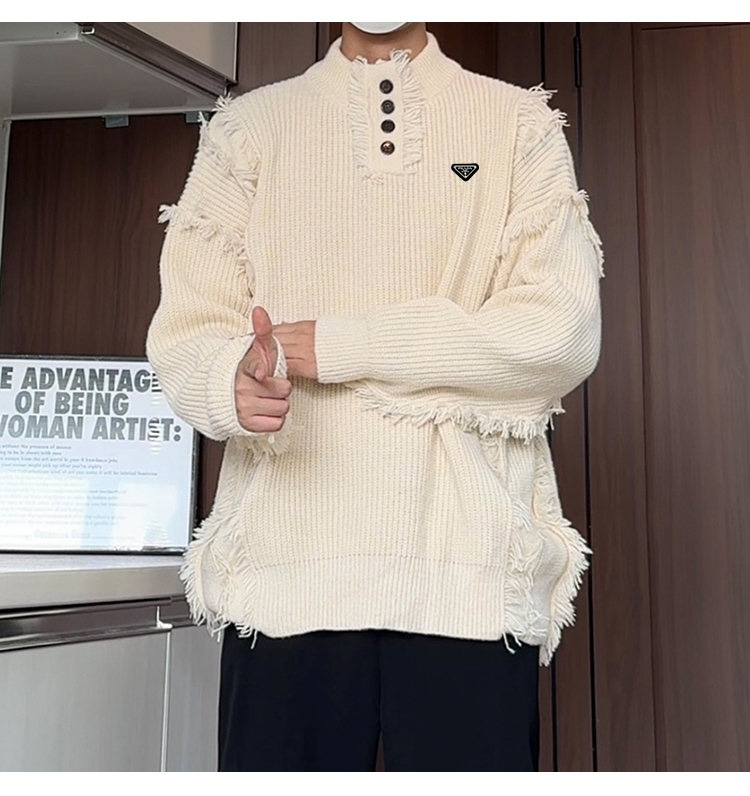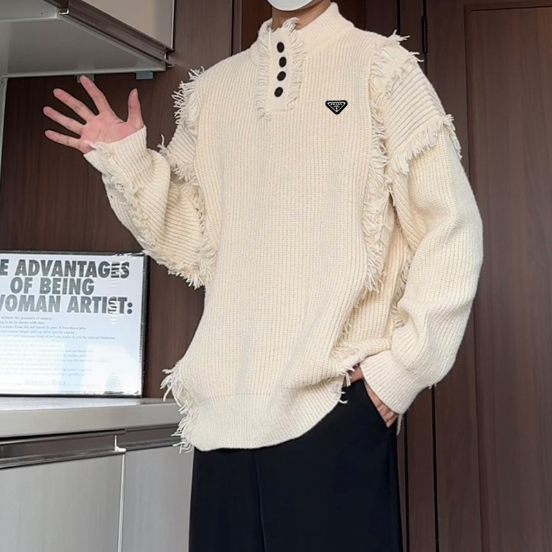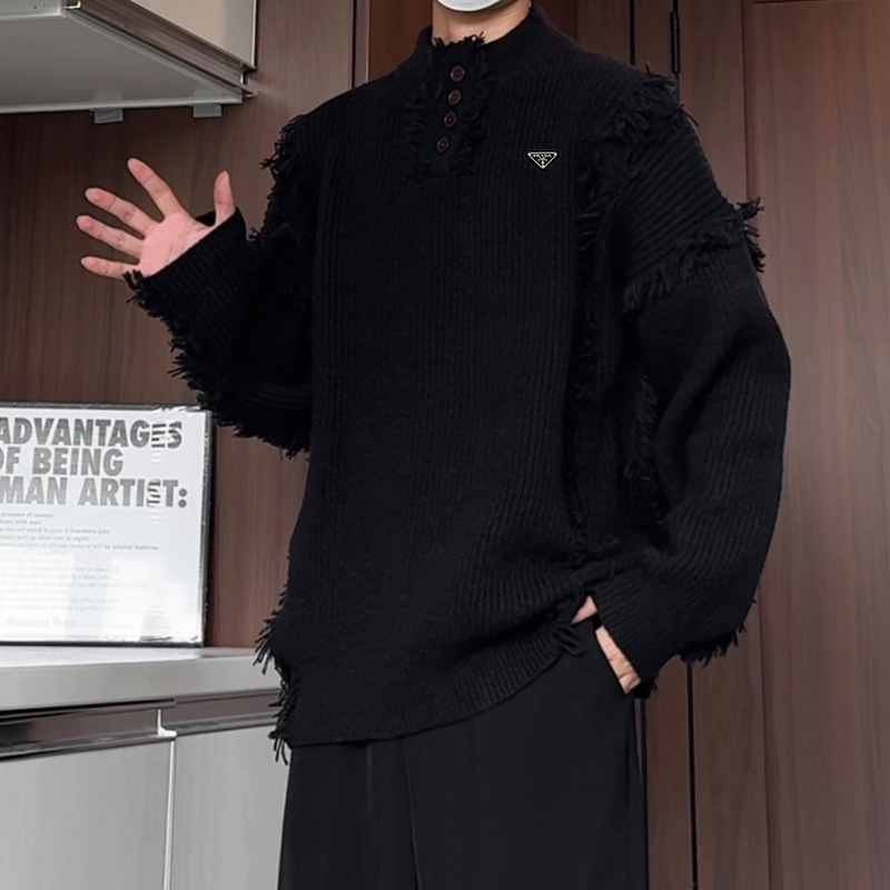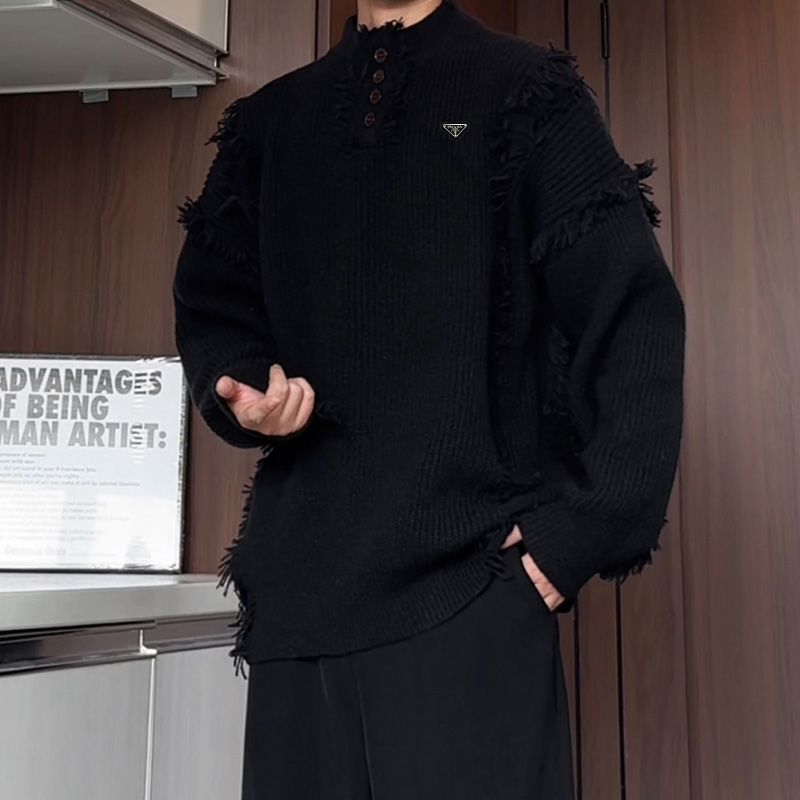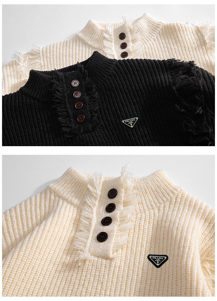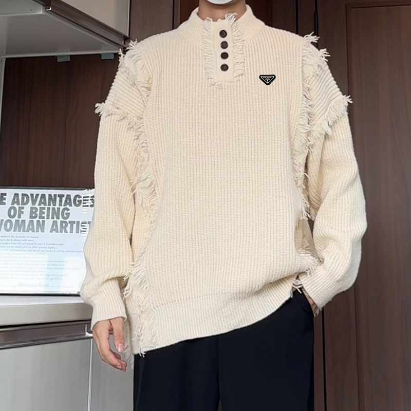 高品质普拉达海外版25ss秋冬设计感新款毛衣男百搭简约潮男宽松针织衫外套 衣服版型宽松 细节完美 面料耐磨耐脏 立体裁剪宽松版型 进口五金标反复水洗不会开裂脱落 男女同款情侣款 颜色 黑色 杏色 尺码 M 5XL