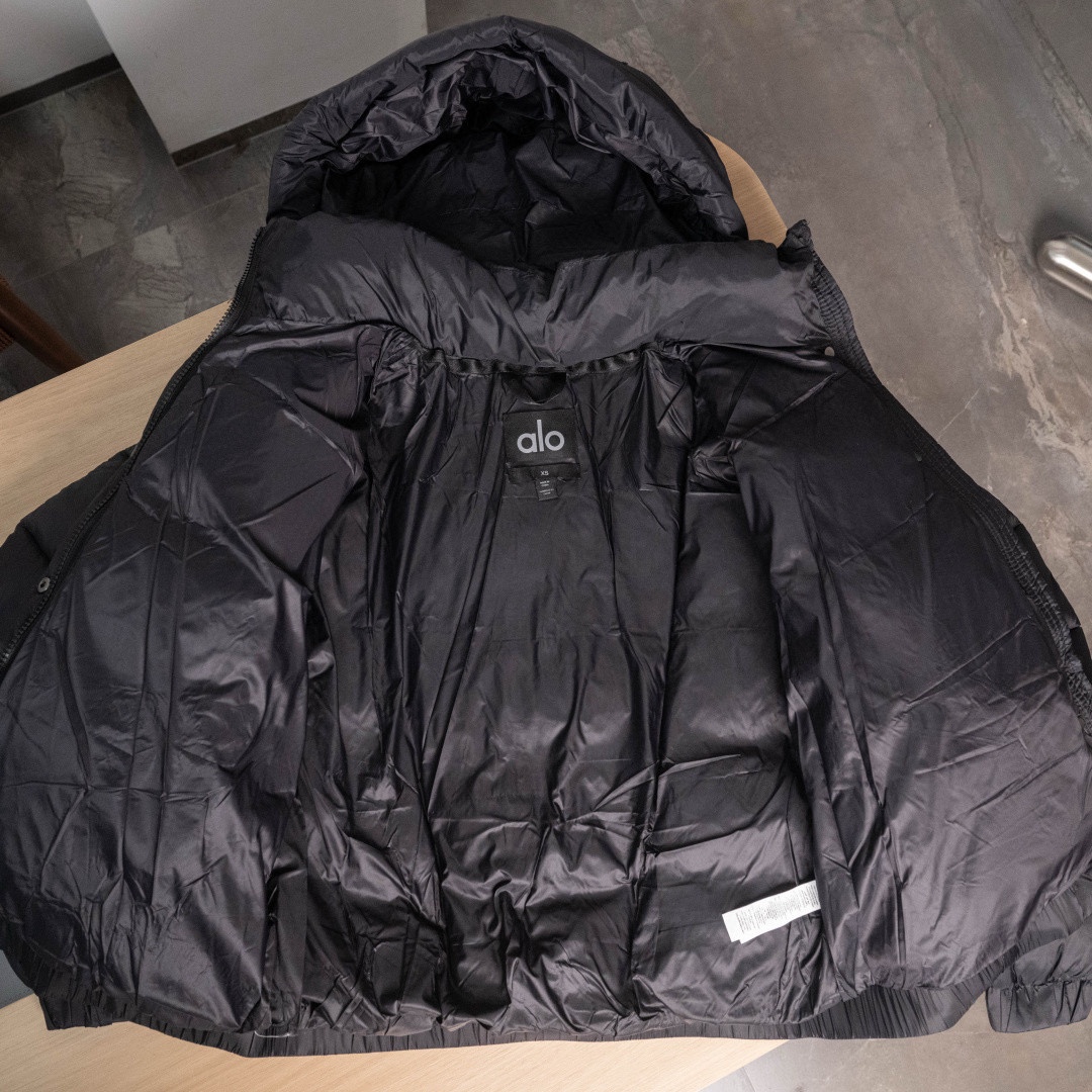 190174743 - 双十二福利特价 𝗔𝗹𝗼 𝘆𝗼𝗴𝗮 条纹可脱卸帽收腰短款羽绒 390717