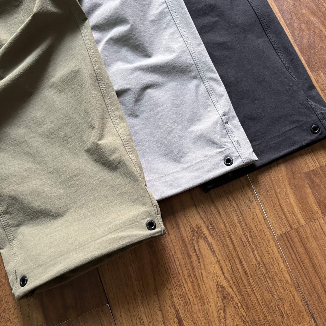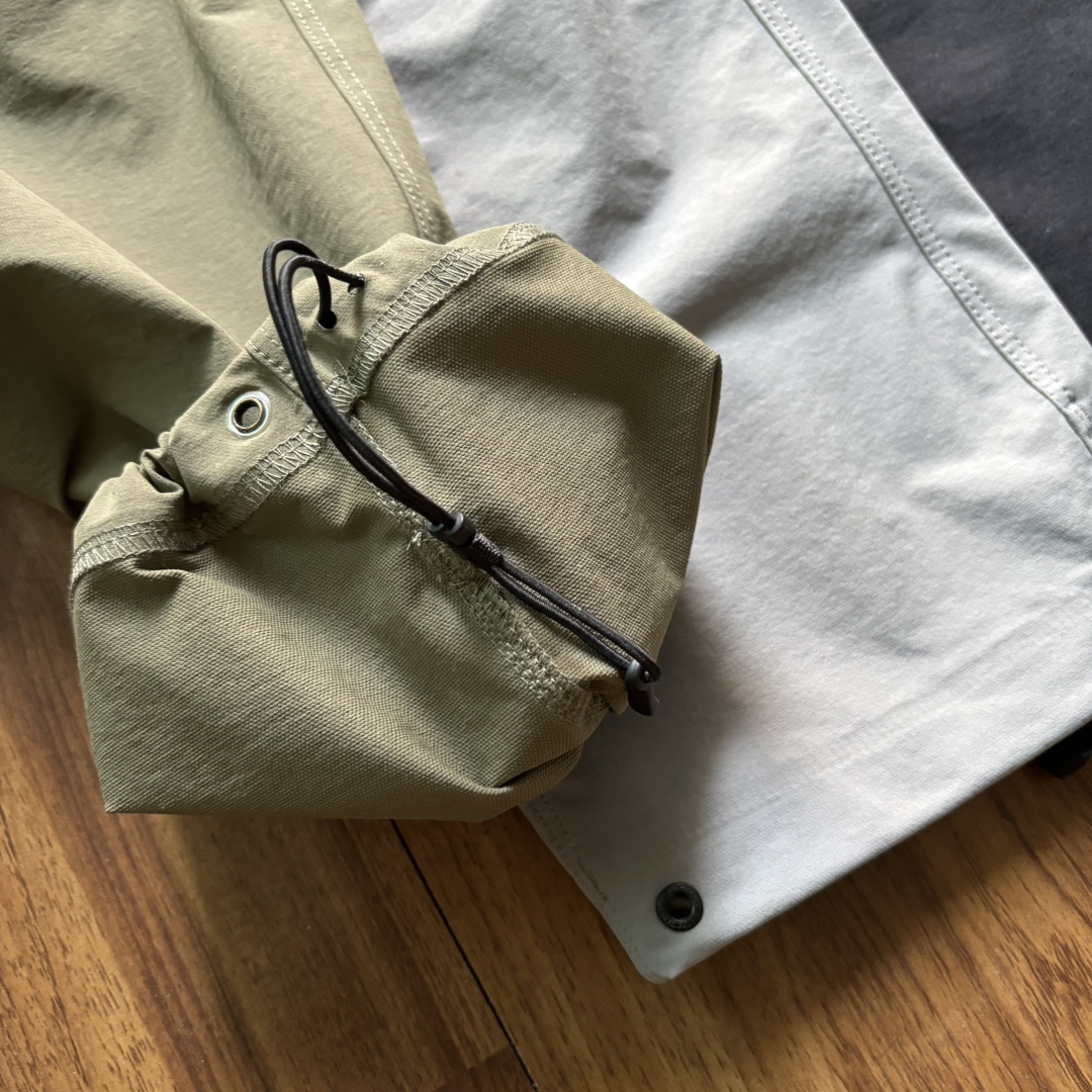 采用客供高密度登山布面料 全身压胶工艺 裤脚可调节抽绳 腰带两用全能 一穿便知