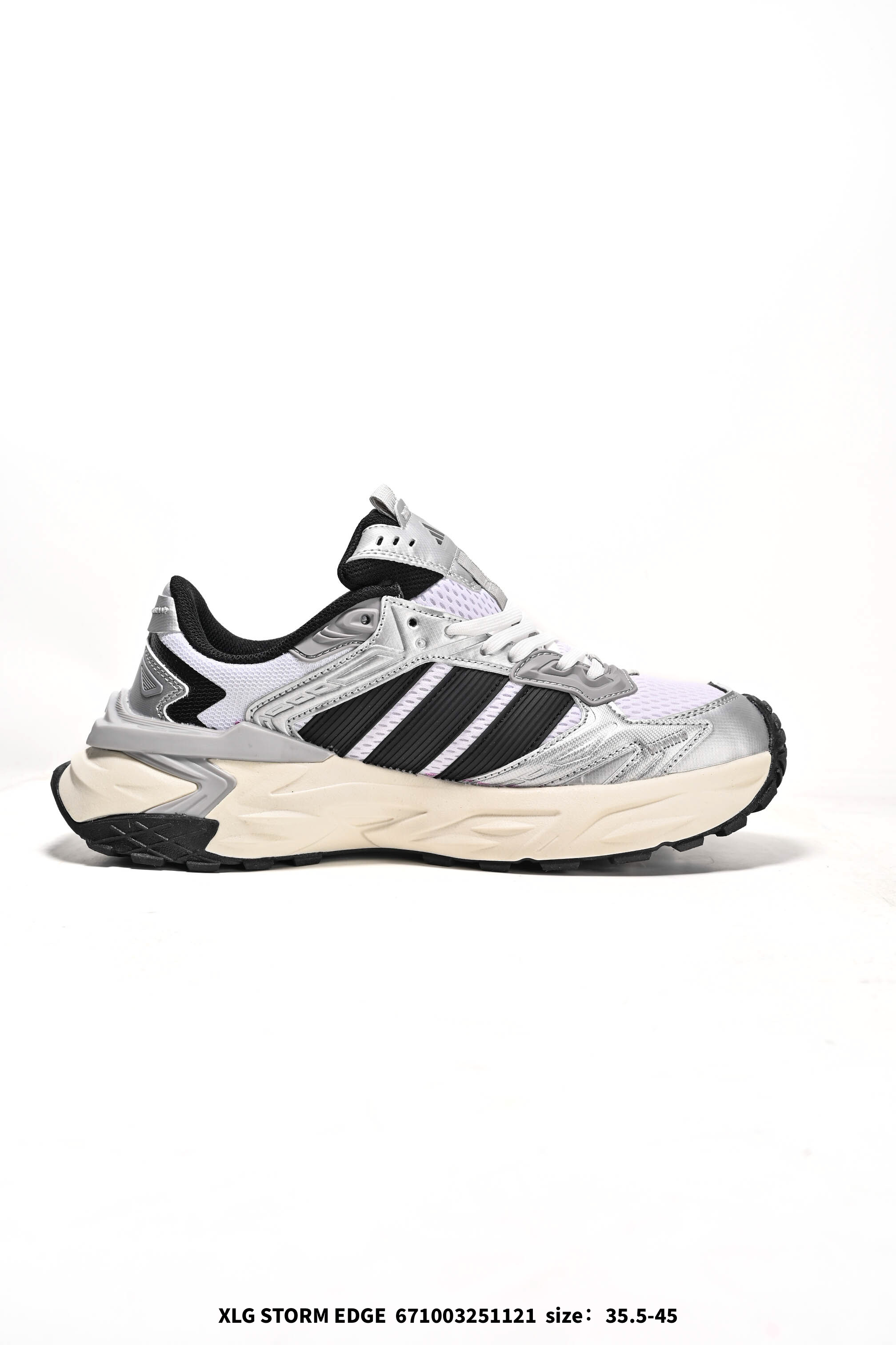 公司级ADIDAS XLG STORM EDGE 机甲风暴 舒适百搭 防滑耐磨 老爹鞋 机甲风暴系列运动跑步鞋 未来美学与科技融合 鞋面用金属质感合成革 搭配高能粒子流重塑的机甲外壳 银闪闪的超有未来感 后跟的异形TPU和RPU裁片构建出凌厉结构 隐藏式机甲尾翼走路时会动态展开 中足的TPU线条像风暴轨迹一样 科技感直接拉满 潮流入秋攻略 好物分享复古板鞋 秋冬鞋柜大焕新 更新你秋日鞋柜 人人都是球鞋博主