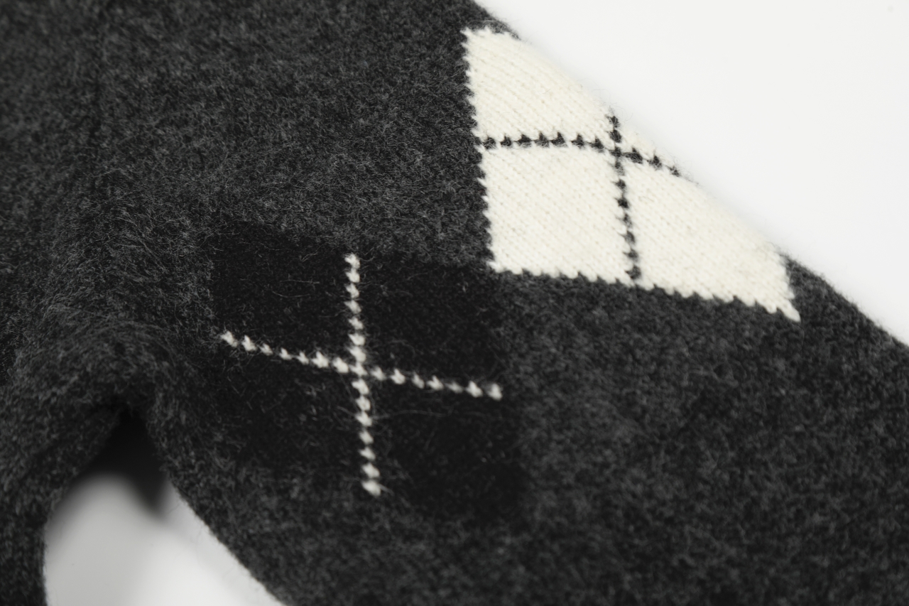110171296 - 韩国Nothing written新款复古撞色菱形格纹针织圆