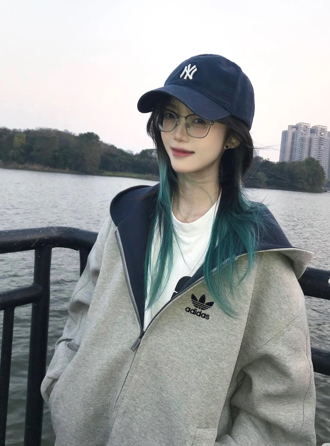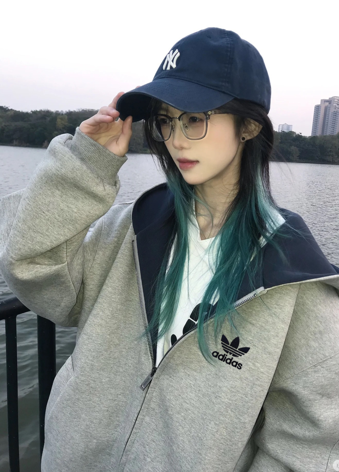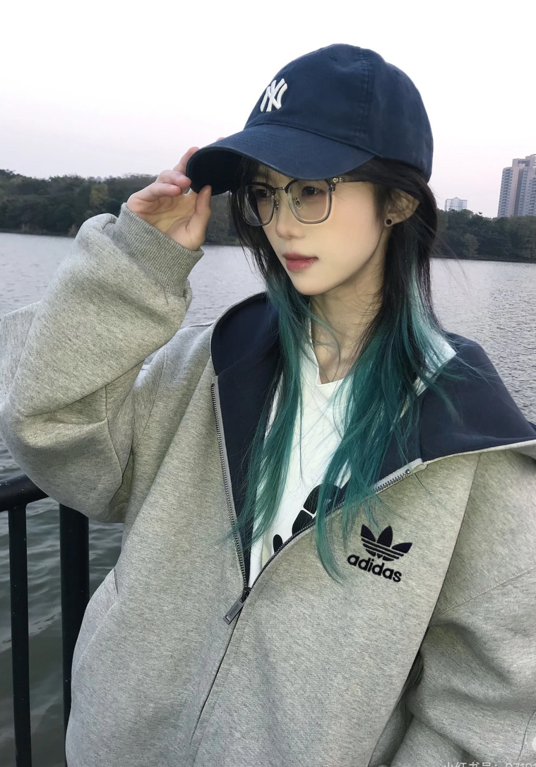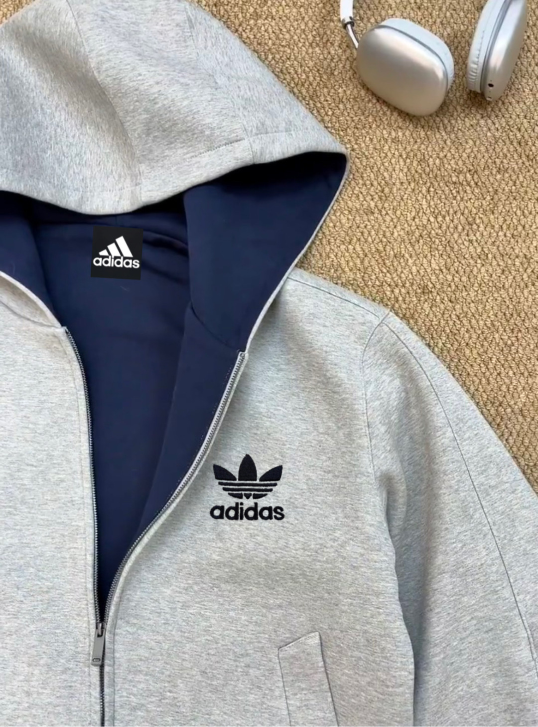 阿迪达斯Adidas重磅灰色内青外灰拼色帽子美式落肩拼接卫衣男女同款连帽高街休闲连帽廓形落肩袖重磅设计感外套