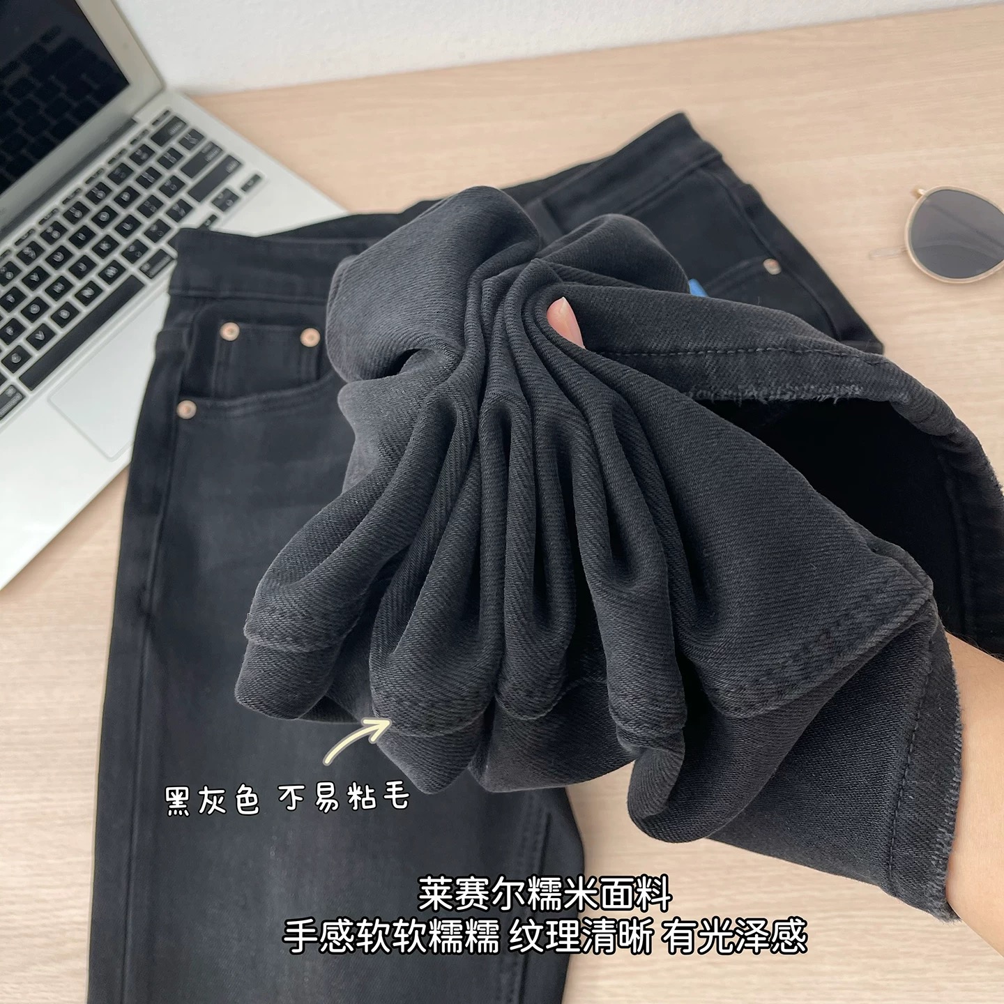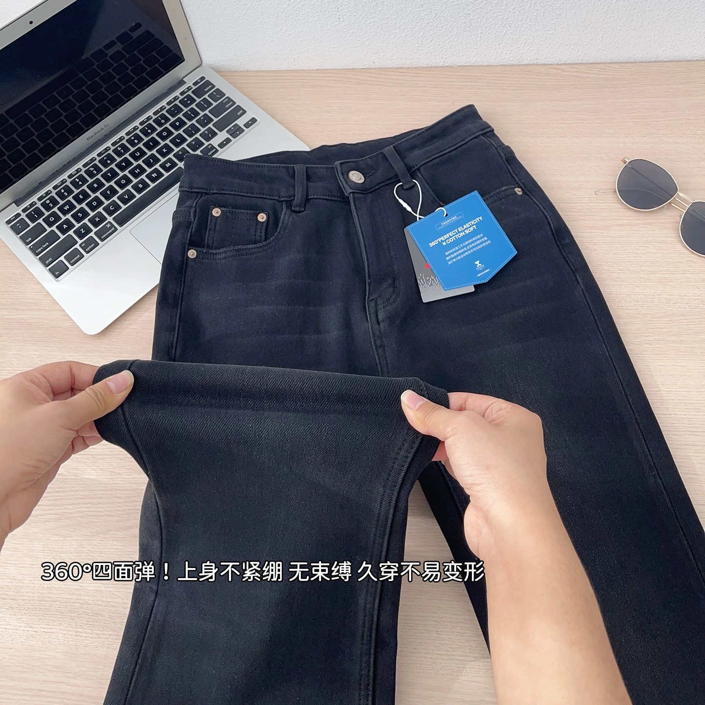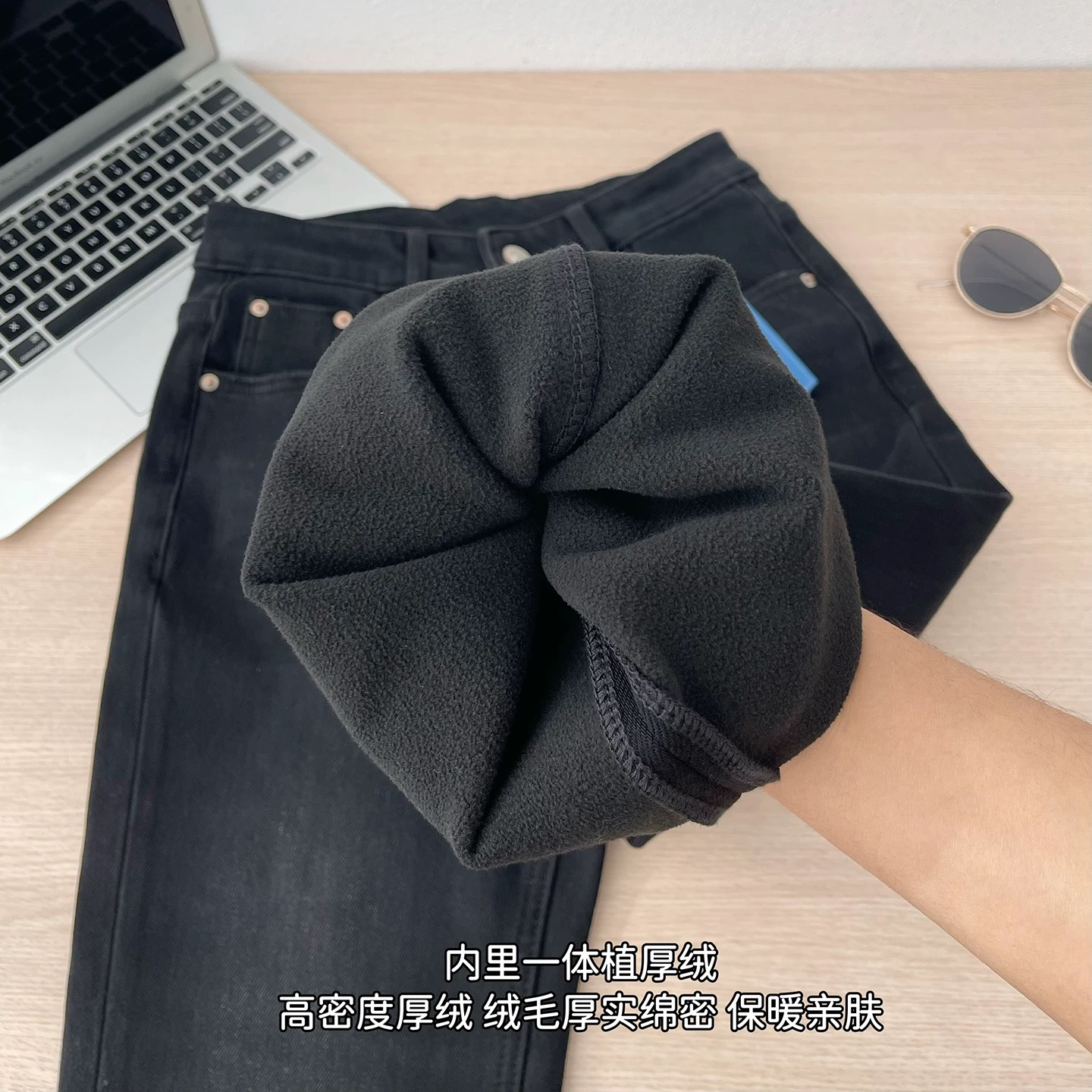 这款微喇牛仔裤bi眼入 chao好看的面料是莱赛尔四面弹的 弹力了而且手感软软糯糯的 上身别提多舒服了内里是一体植厚绒 保暖显瘦不臃肿