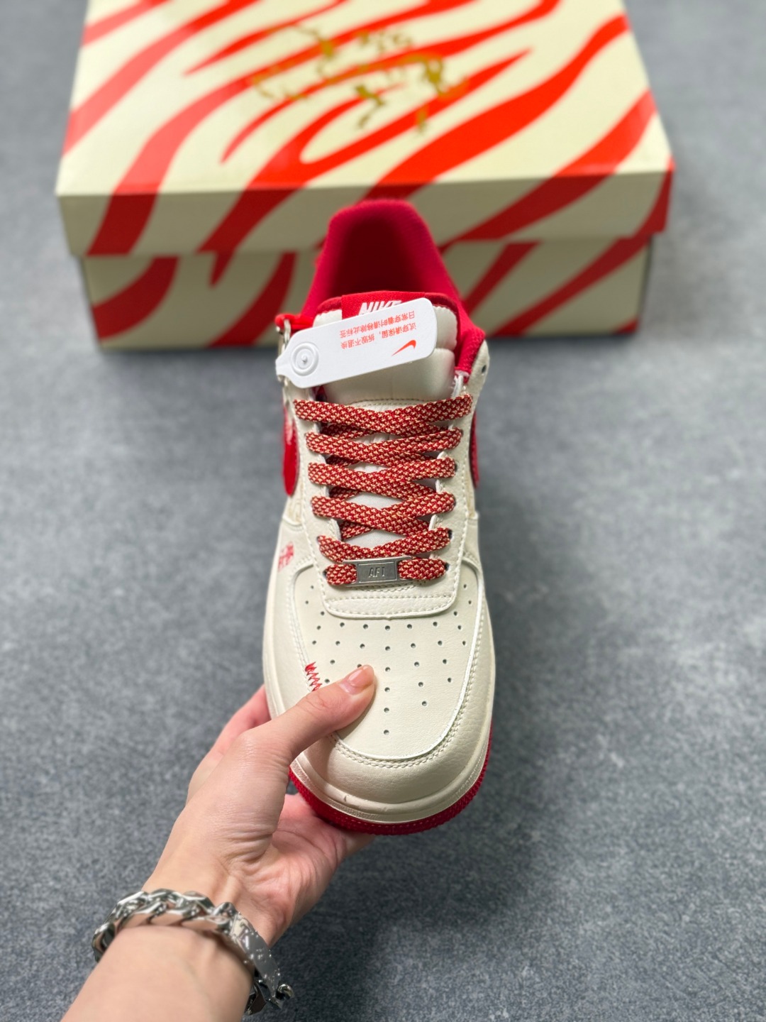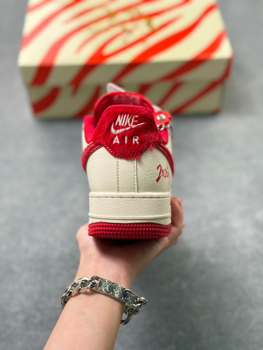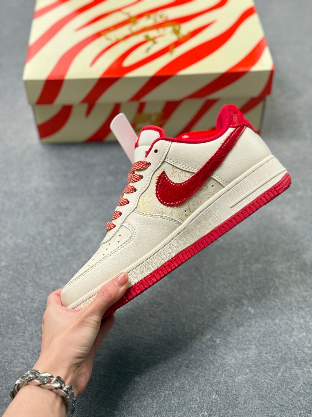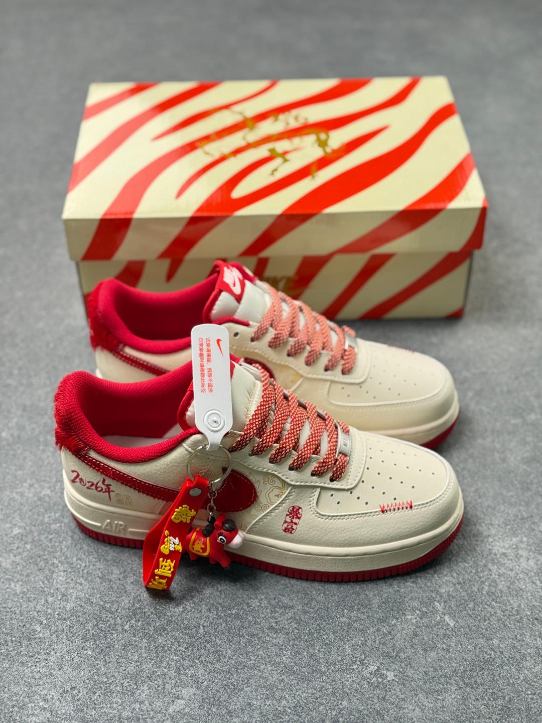 2026马年限定 Nike Air Force 1 Low 空军一号 爆款高端定制 米白配酒红 雅致又高级 祥云纹 暴富 字样搭配绒面勾 细节里满满的年味