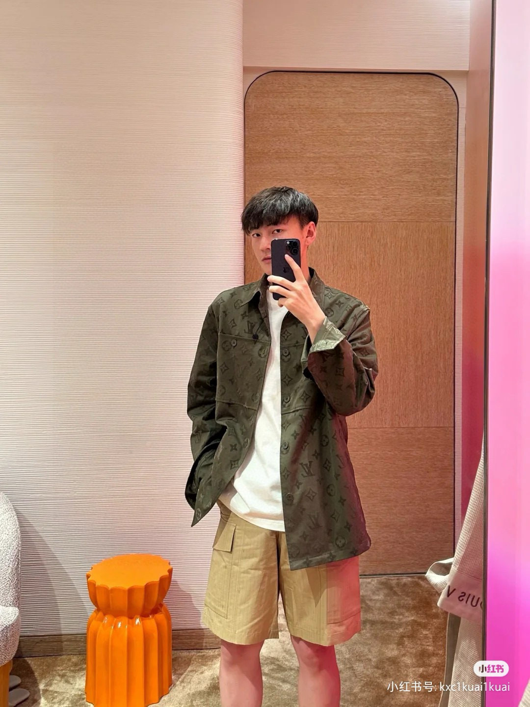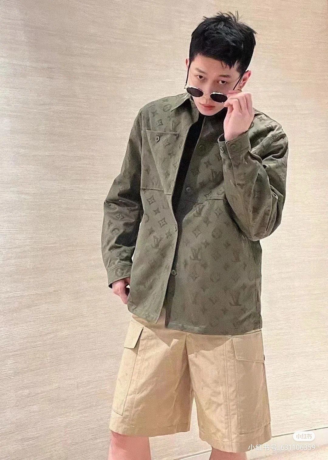 路易威登Louis Vuitton 植绒压花字母暗纹棉质衬衫式帆布工装外套 LV新款满身经典monogram夹克 布匹做植绒工艺 手工丝网胶浆 粘合剂打底 静电气压喷绒机 搭配牛仔裤增添休闲时尚 或配黑色铅笔裙展现优雅 将袖口卷起 展现随性时尚 配经典手表提升品质感 这款衬衫凸显LV独特魅力 容易搭配各风格 打造出与众不同造型 尽展时尚品味 选择LV满身经典monogram植绒压花棉质夹克式长袖衬衫