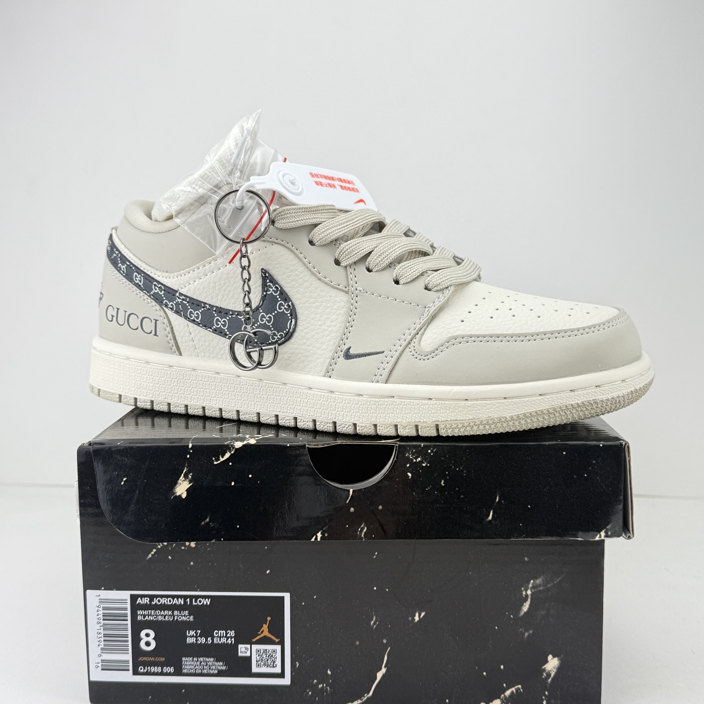 AJ1 x GUCCI定制 米白配老花 主打奢潮融合与稀缺性