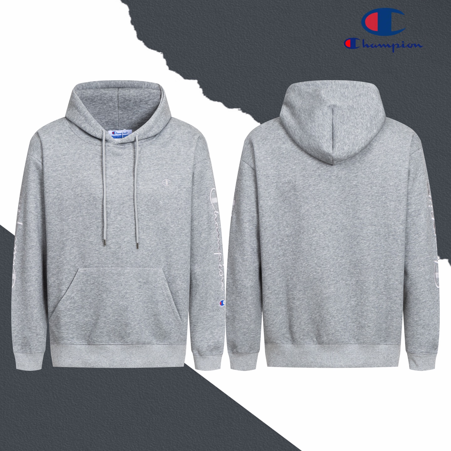 款号 SL367 Champion冠军小标手臂刺绣标识连帽卫衣 面料采用420空气层高克重双股双纱针织面料洗一辈子都不会变形的 男女同款 官网细节一致 全套包装 三标齐全 防潮纸 区别市场通货 随意对比 OS版型 最大可穿200斤上身舒服有型 颜色 灰 尺码 S XL