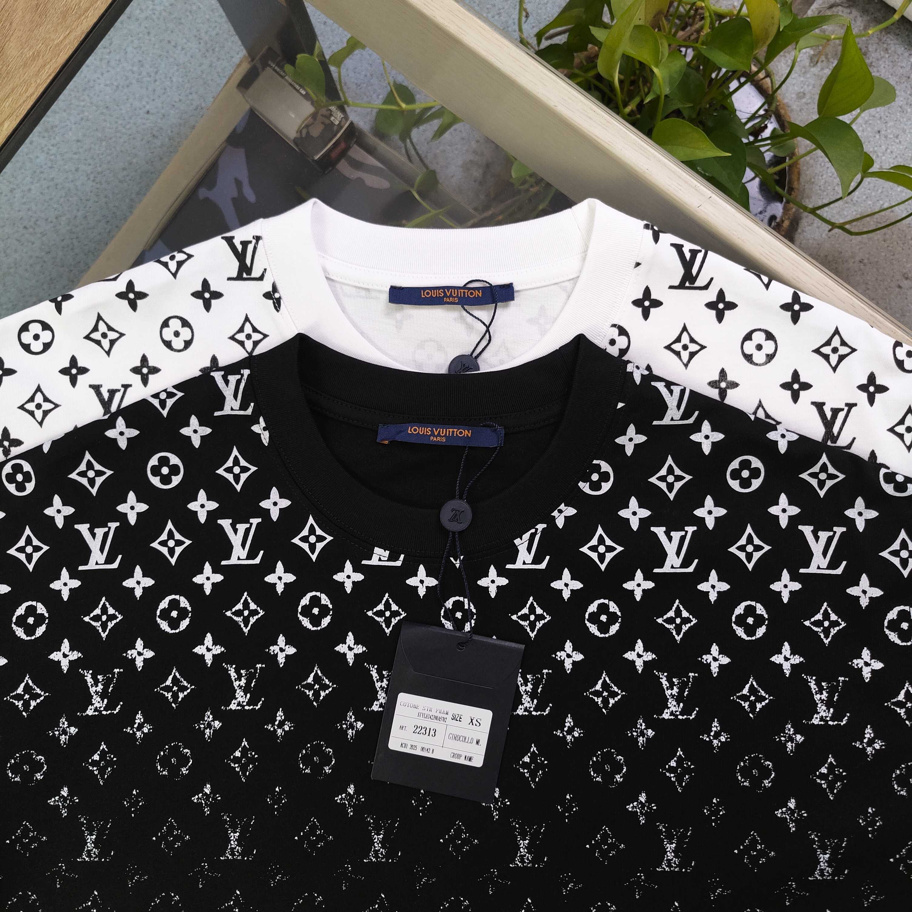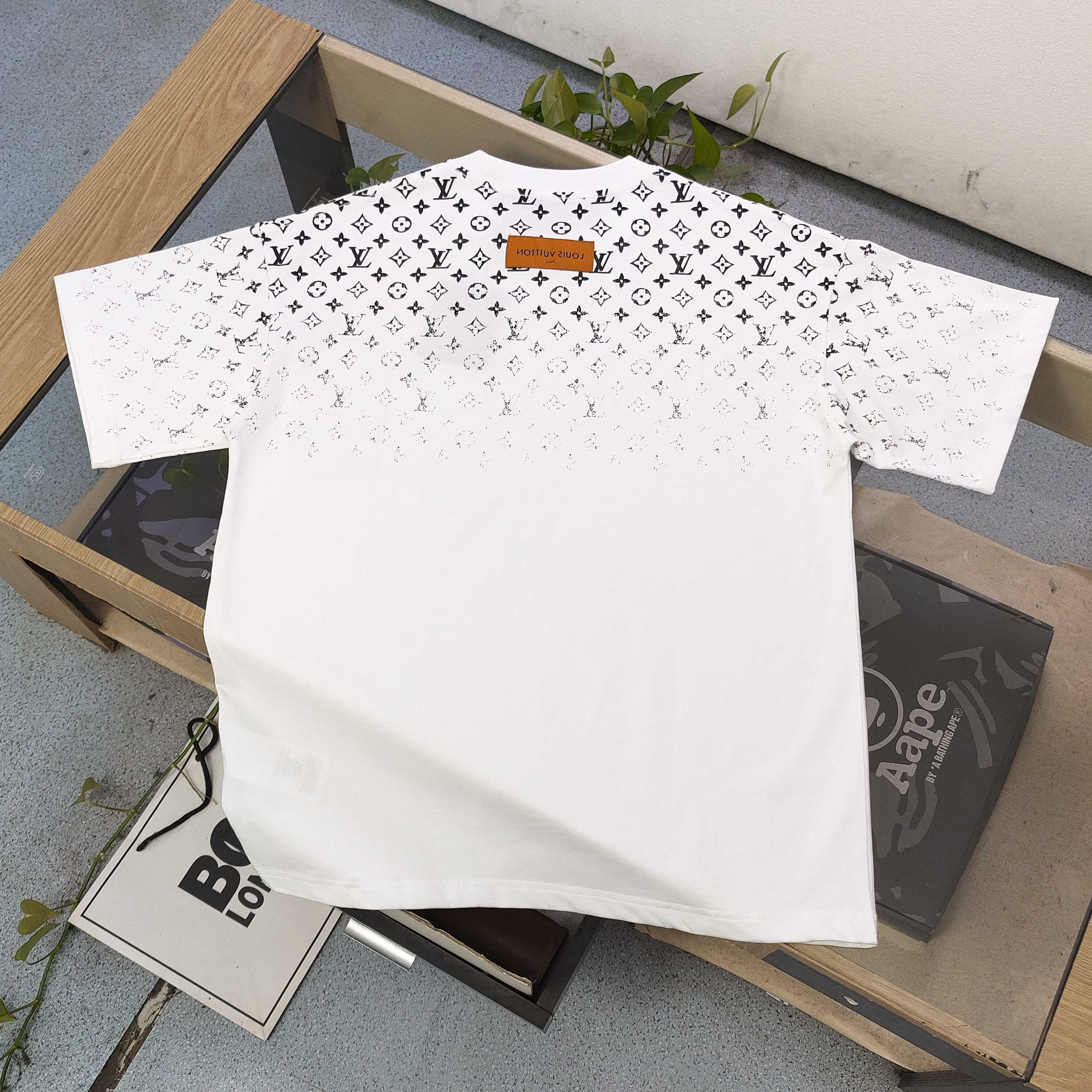 2025新款Louis Vuitton路易威登LV渐变logo图案印花休闲情侣宽松短袖T恤 独一无二的活性环保面料染色 32支双纱精梳纯棉爽滑手感 纯棉不起球不起毛 面料采用270克重的纯棉双纱爽滑面料 质量保证 定制面料 定制定染 欢迎对比质量 男女同款