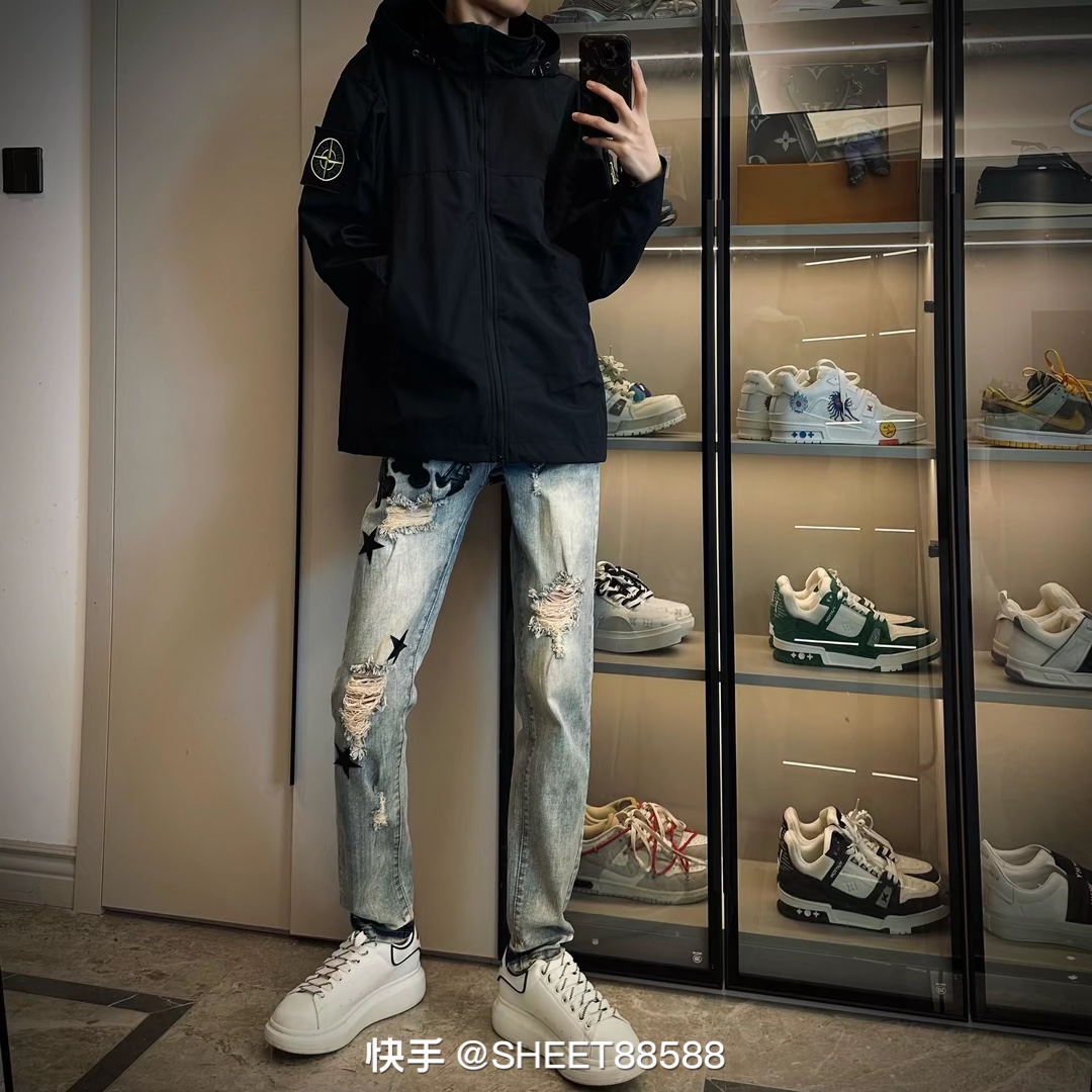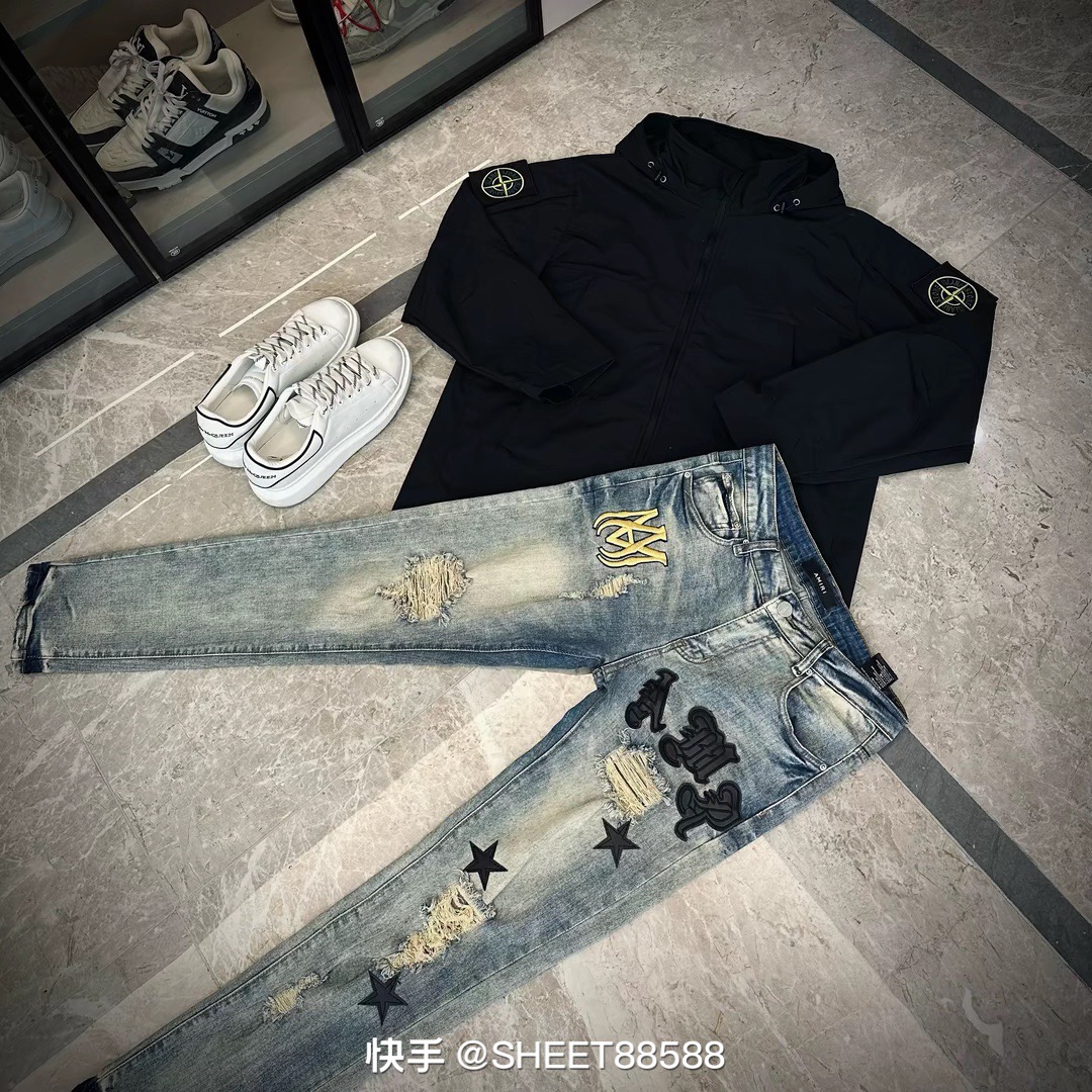 牛仔裤AM 刺绣logo 黑色小皮标 28 36 码数