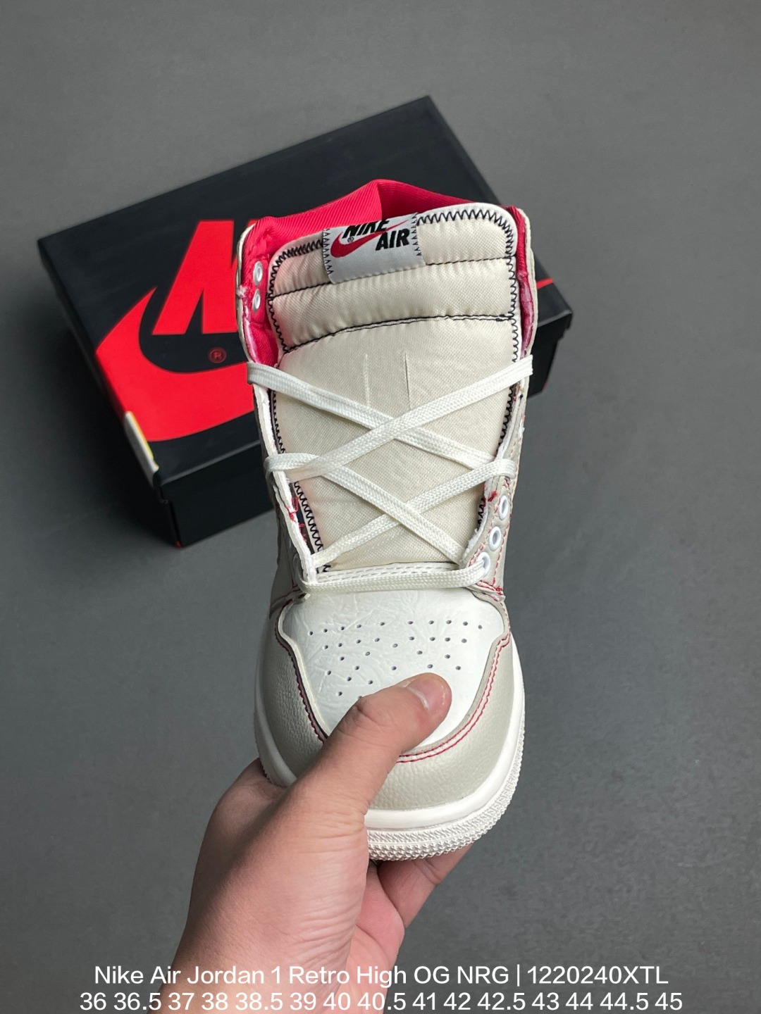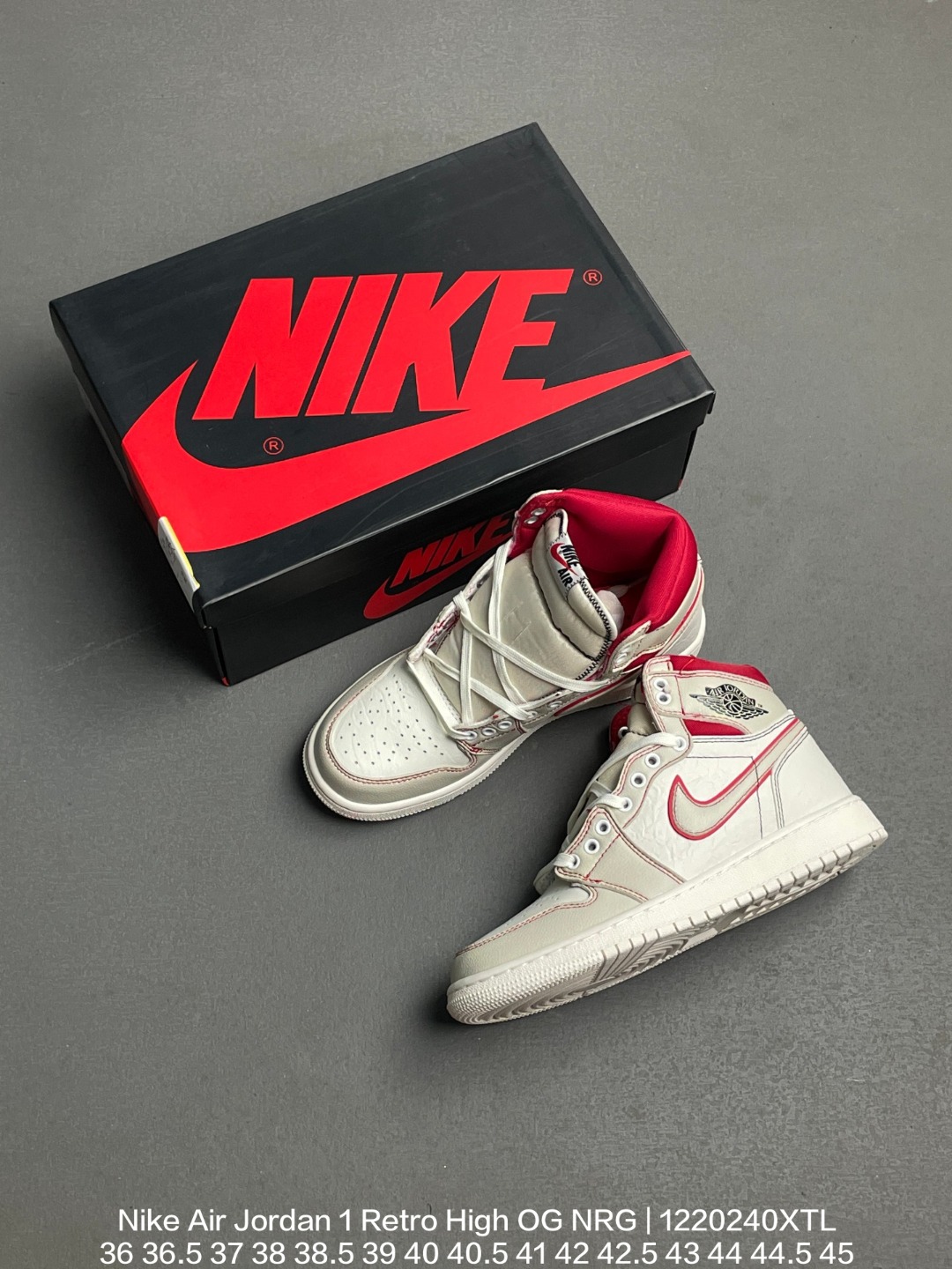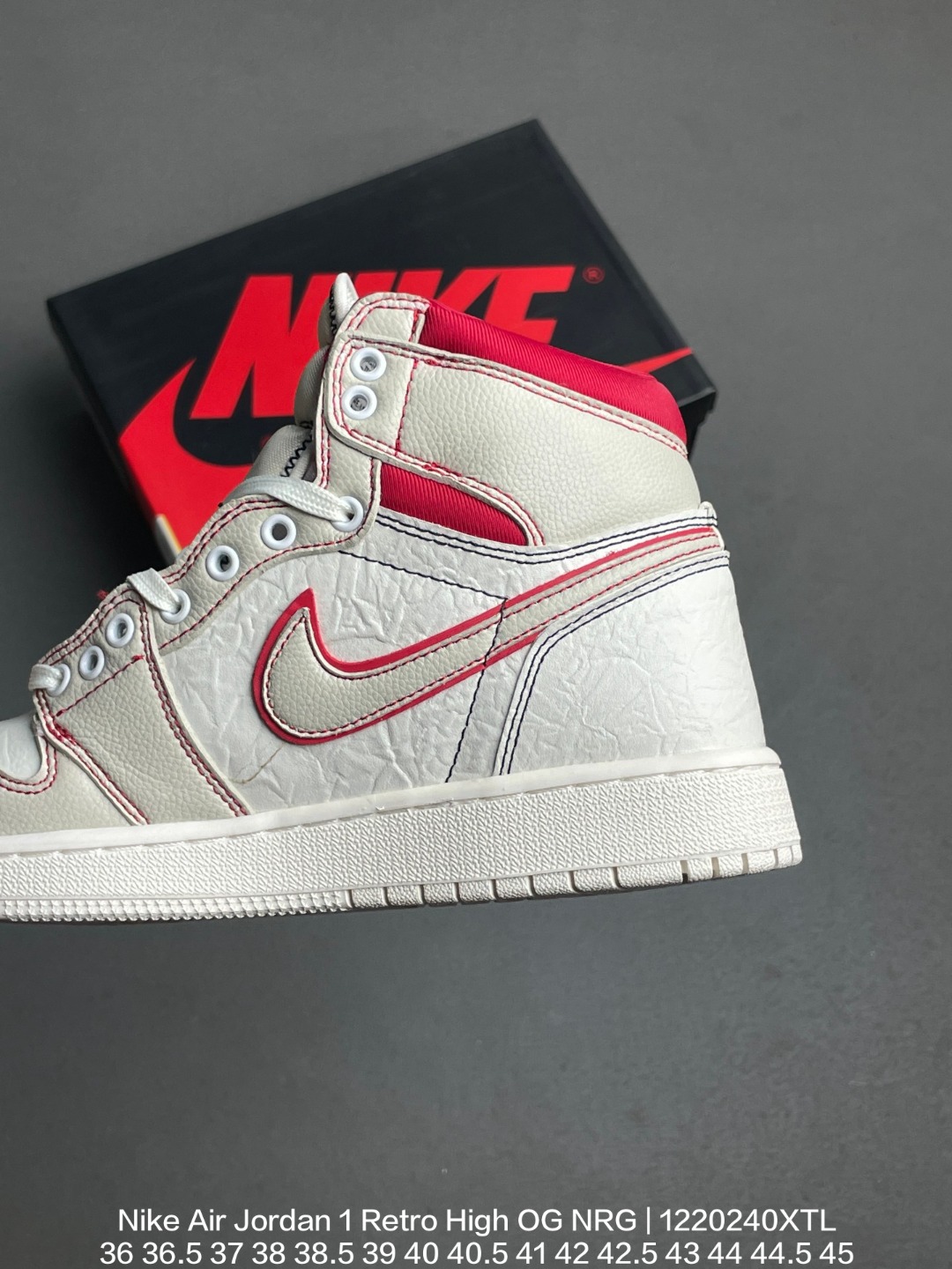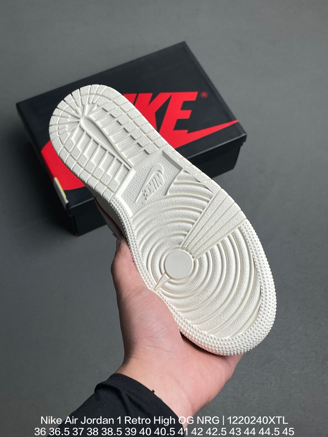 Jordan 乔丹 原楦原底数据开发版型 采用荔枝纹二层皮革鞋面 原数据开发模具大底耐克Nike Air Jordan 1 Retro High OG NRG乔丹一代AJ1经典高帮文化百搭休闲运动篮球鞋