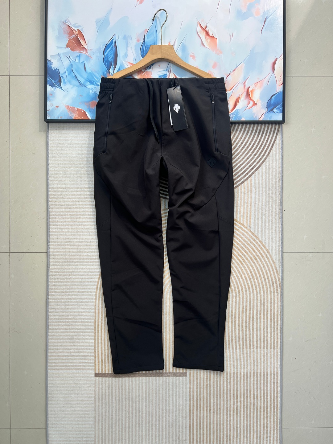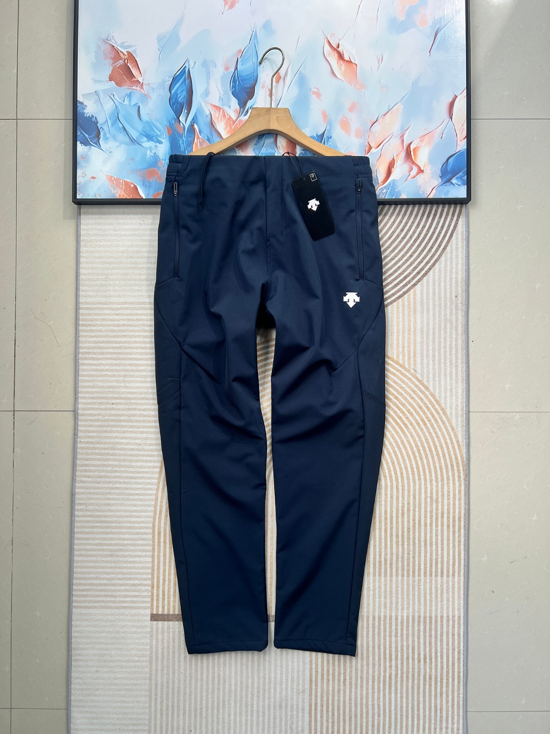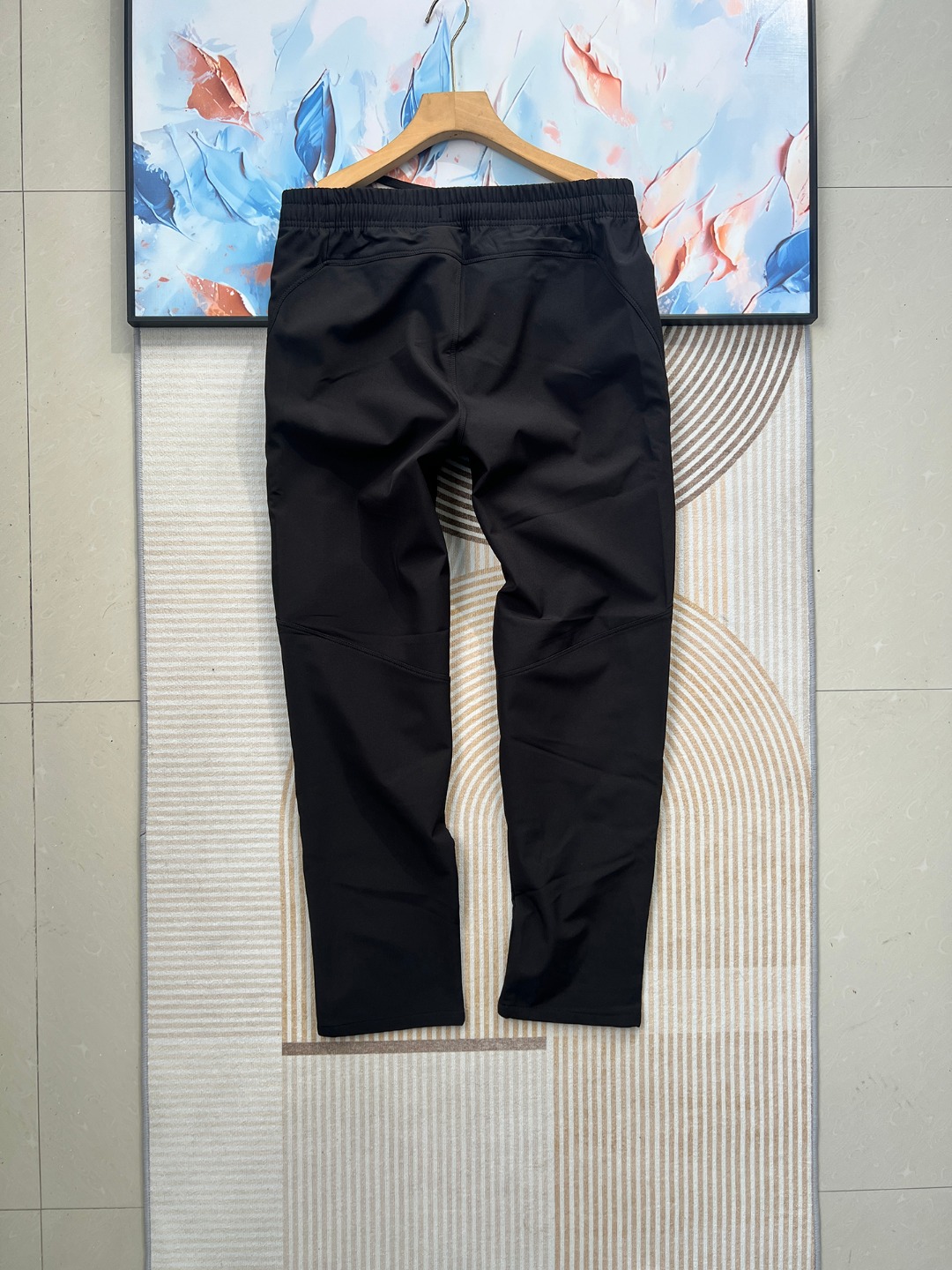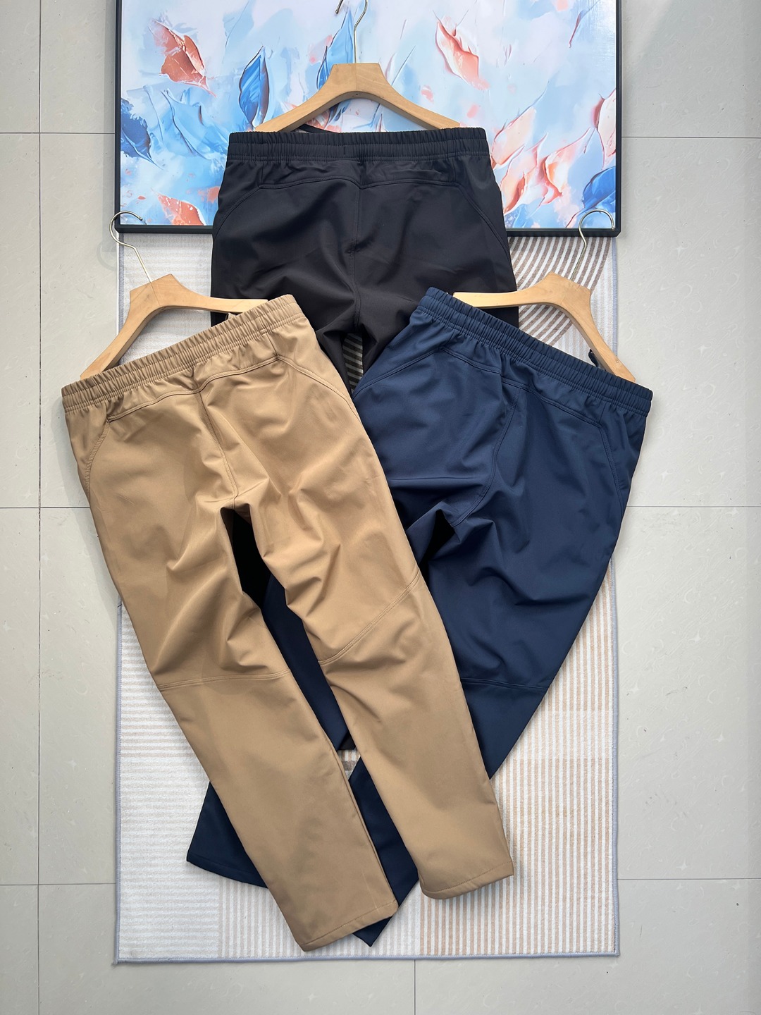 款式设计 前口平腰隐藏式松紧绳工艺 自由调节裤头舒适度 车线工艺 走线平整