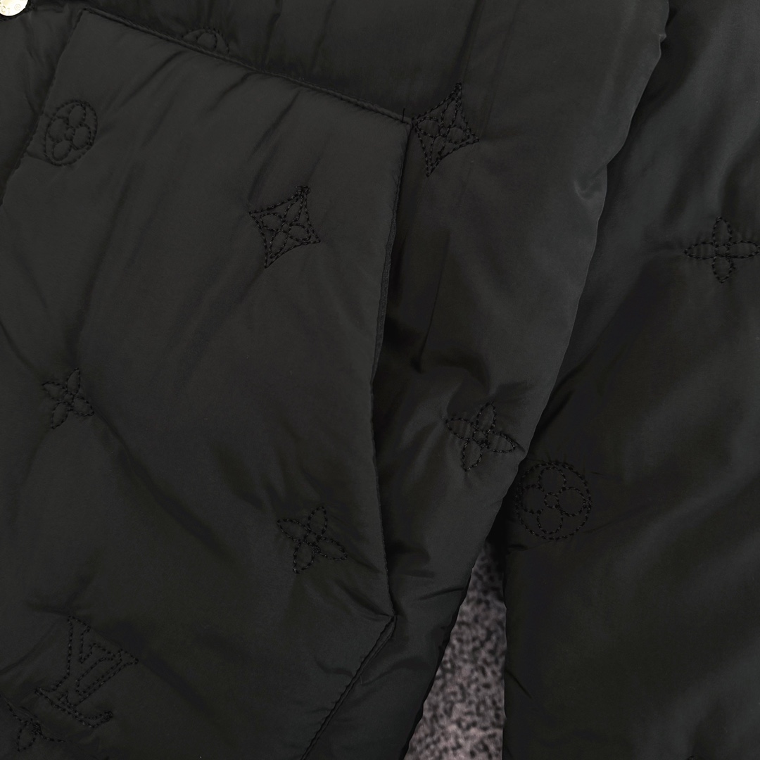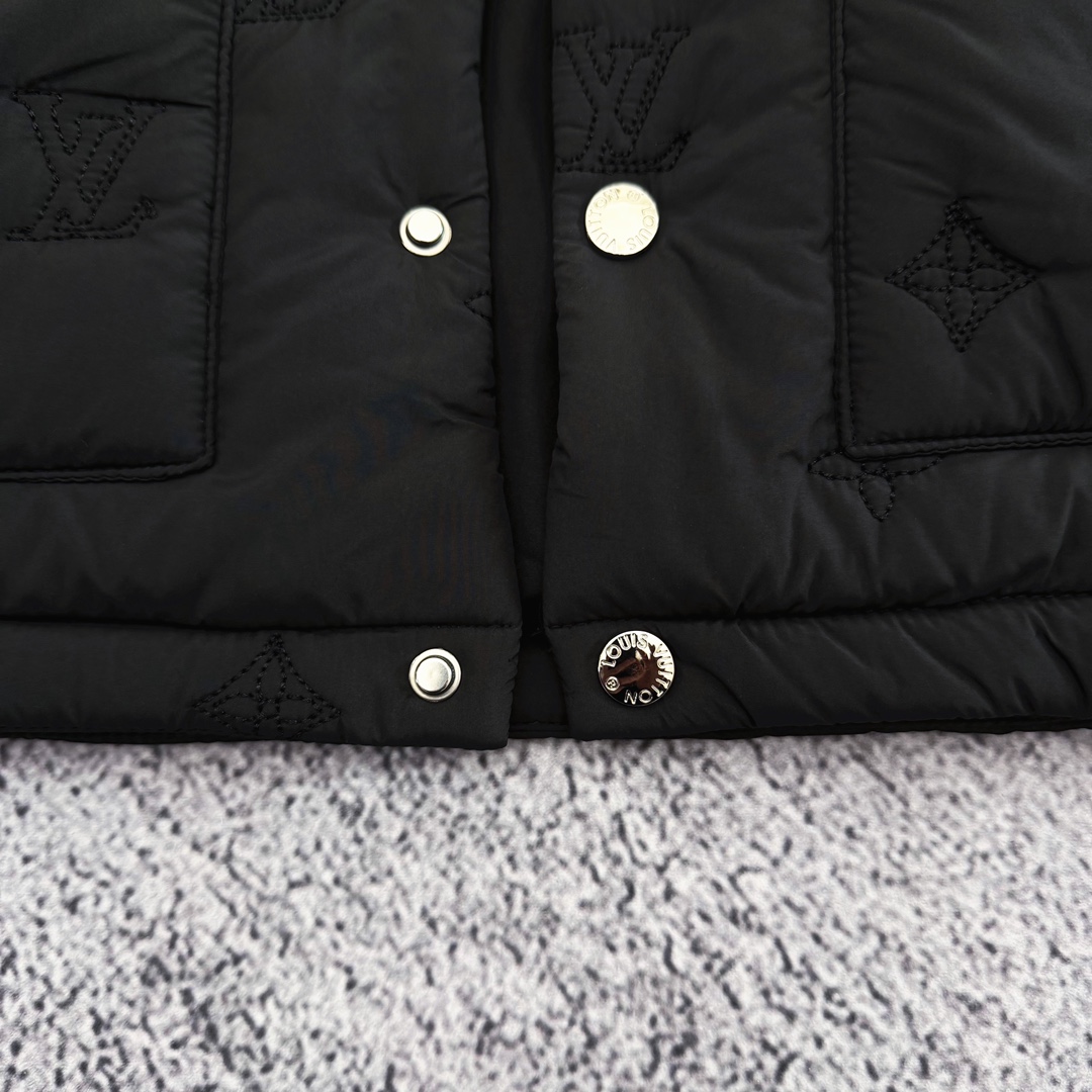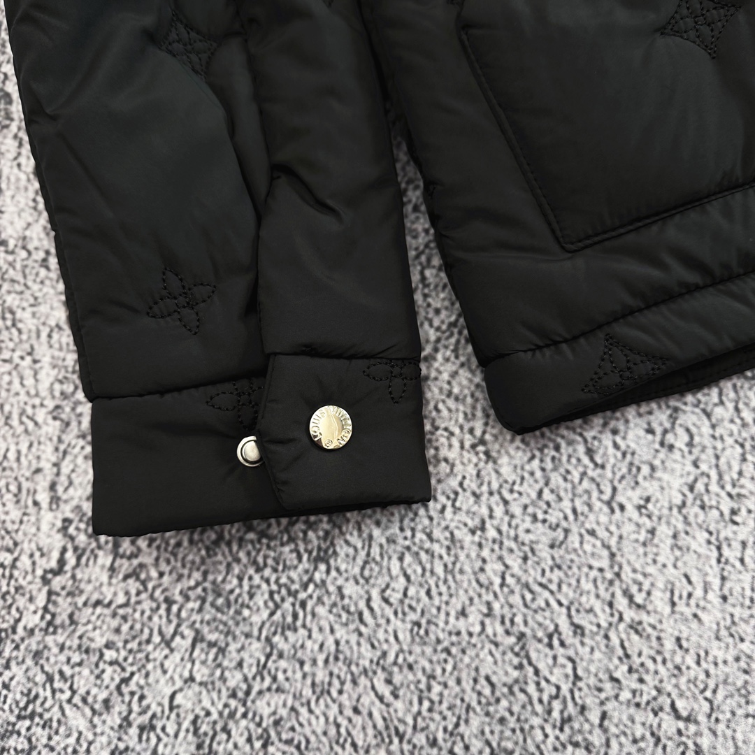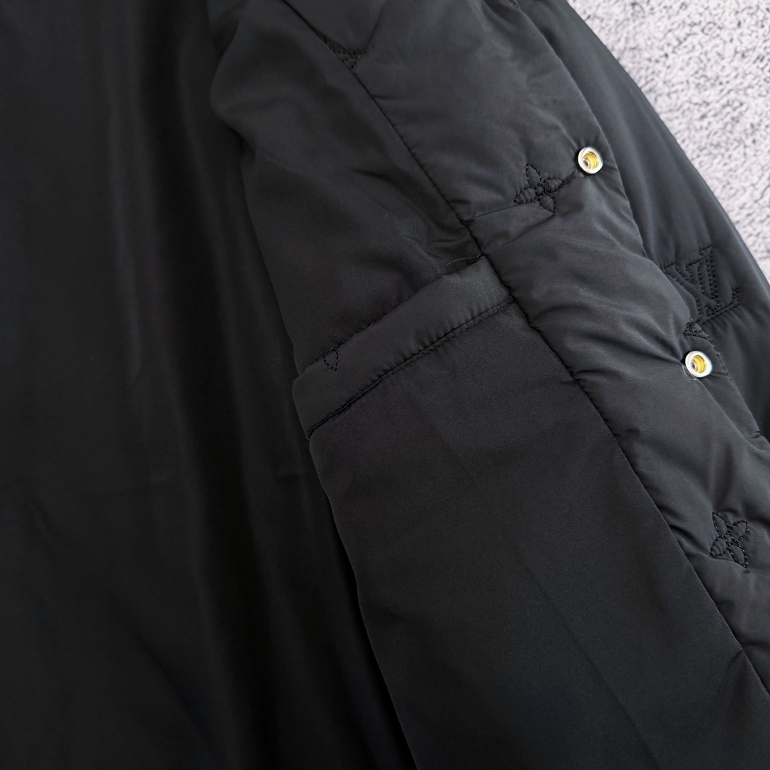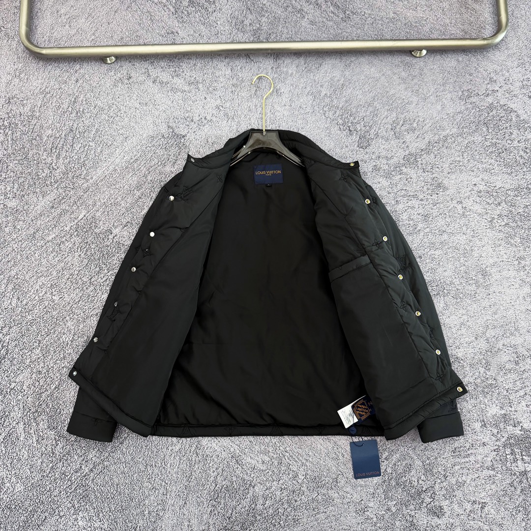 严选好货 路易威登Louis Vuitton新款男士翻领棉服外套 经典时尚款 客供轻量化科技防泼水面料 内里绗棉 保暖舒适 复古按扣门襟设计 全身重工logo刺绣 按扣防风袖口 原版五金辅料 做工细节都非常不错 上身效果一级棒 喜欢的兄弟不要错过 颜色 黑色 尺码 M一3XL