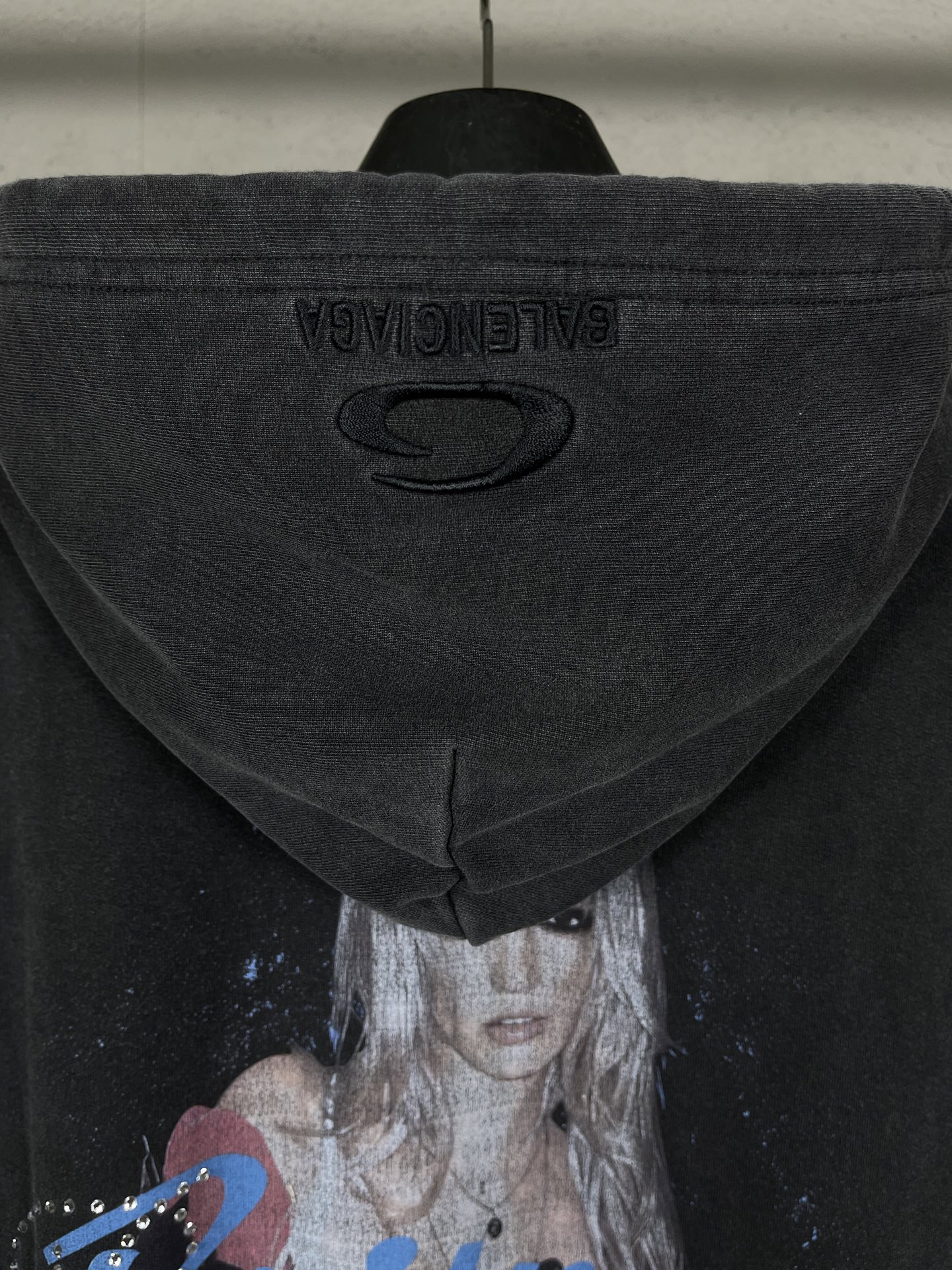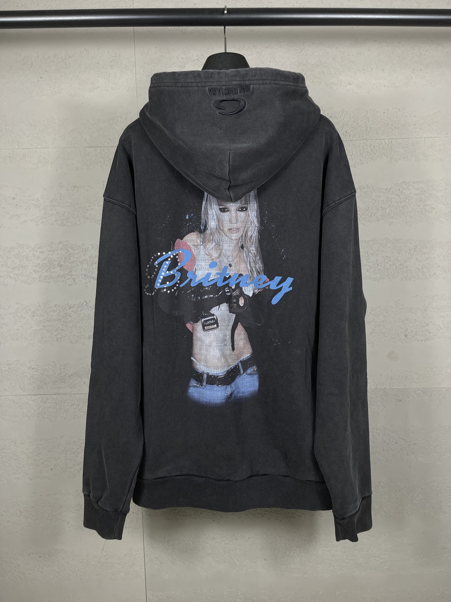 实拍图 顶级版本 官网品质 BALENCI GA 26新款 Balenciaga 布兰妮人像限量版音乐合作系列 前后片直喷印花 烫钻 帽子绣花 成衣洗水 拉链连帽开衫卫衣