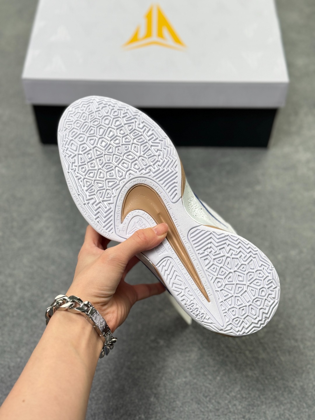 防滑性能好 鞋底抓地设计从拖拉机轮胎汲取灵感 多向牵引图案提供了强劲抓地力 无论是室内外球场 都能让球员在急停 变向时不易打滑