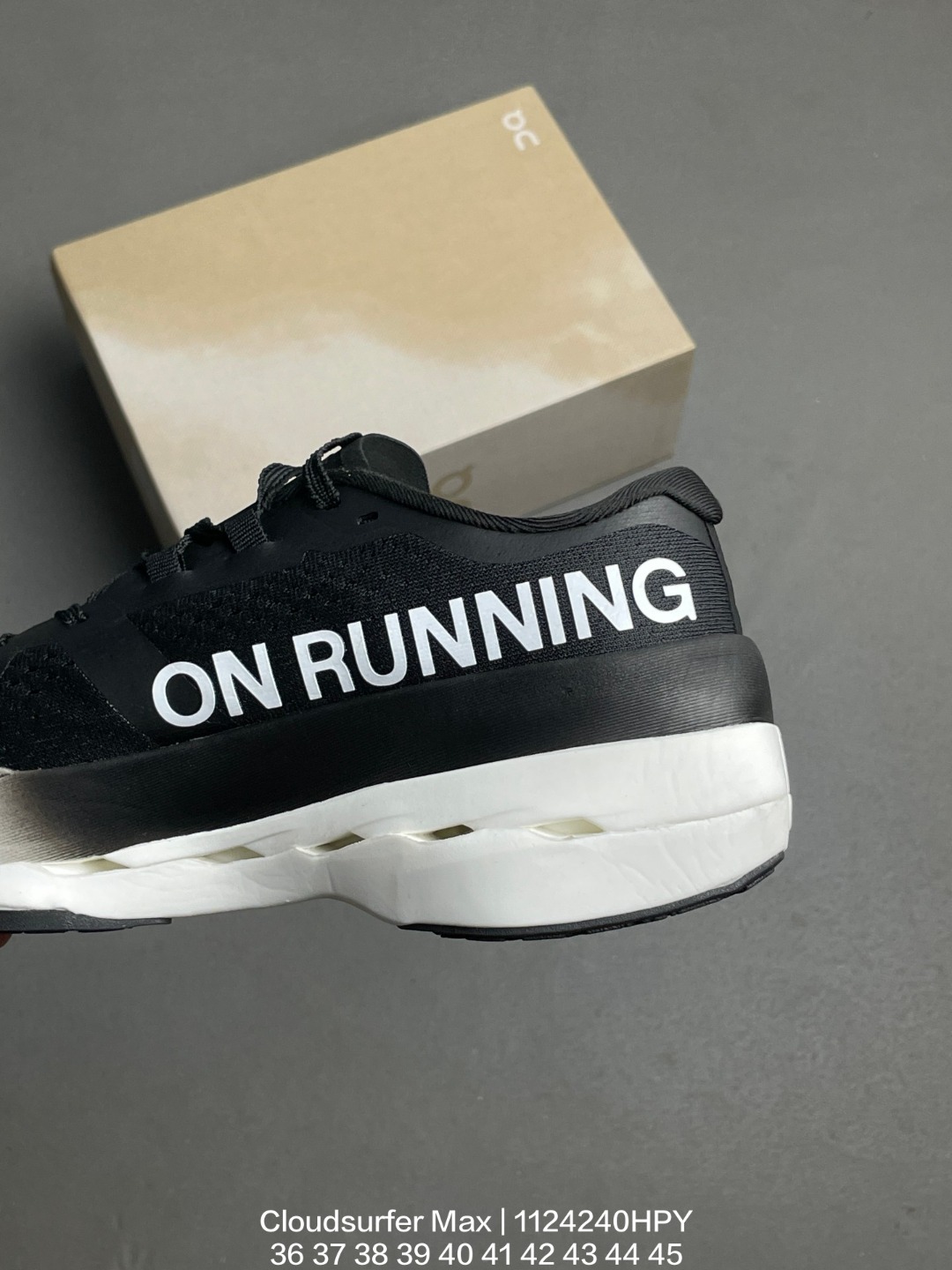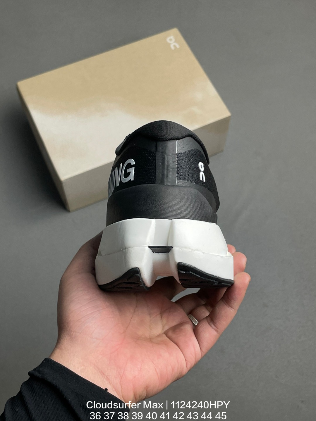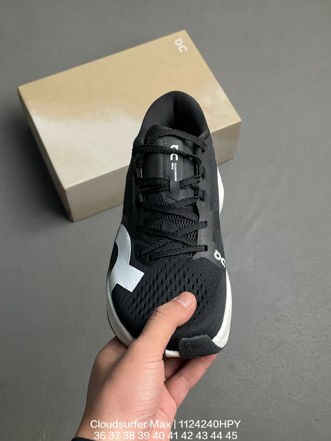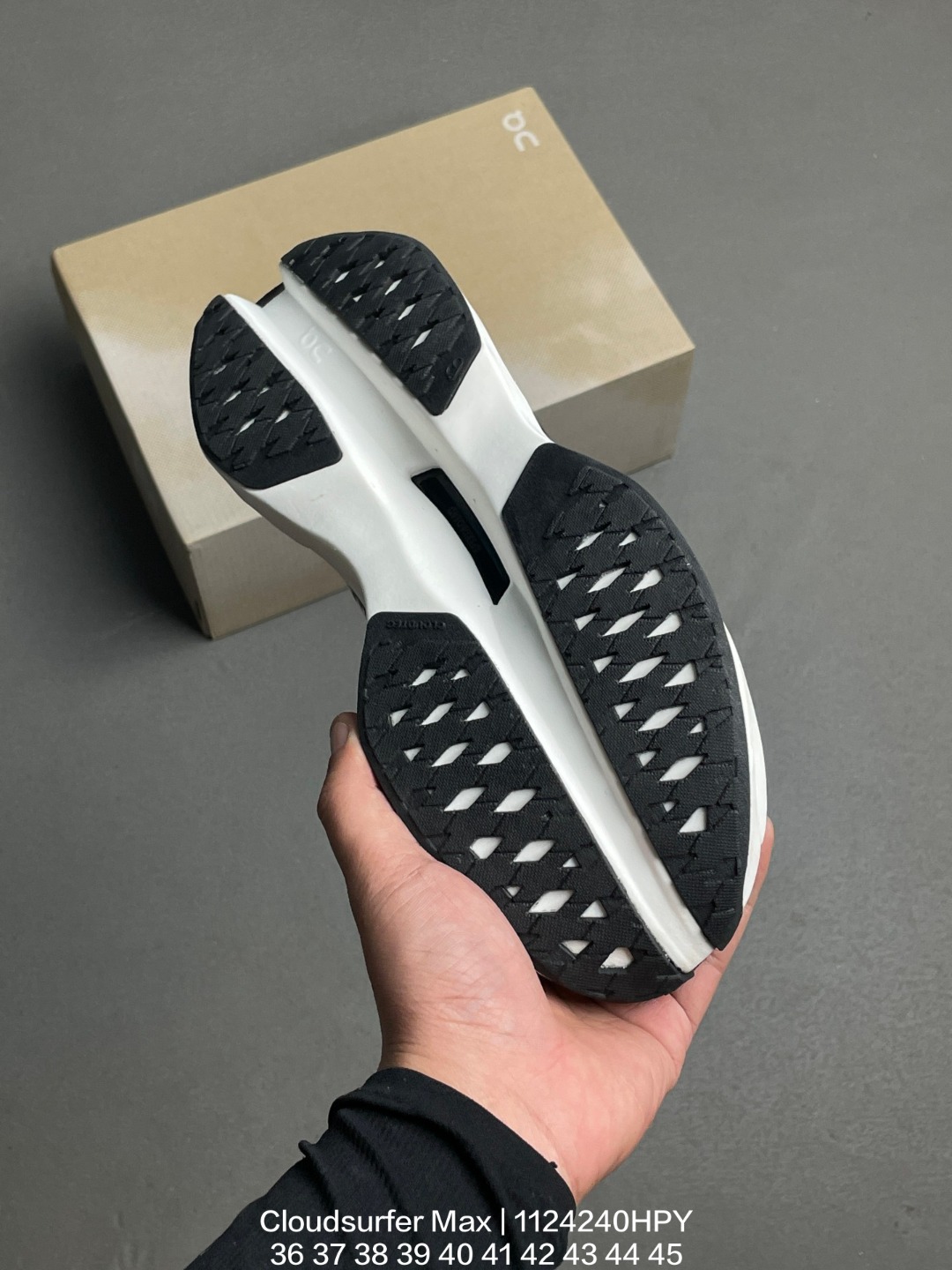 Cloudsurfer Max鞋身外观的设计灵感源于 On 昂跑的专业竞赛鞋 鞋面采用工程编织材料打造 提供无缝贴合的穿着体验 轻盈透气的鞋面贴合脚部 确保舒适的穿着感与稳定的锁定效果 鞋底经过升级的橡胶垫片在干湿条件下均提供高抓地力和耐用性